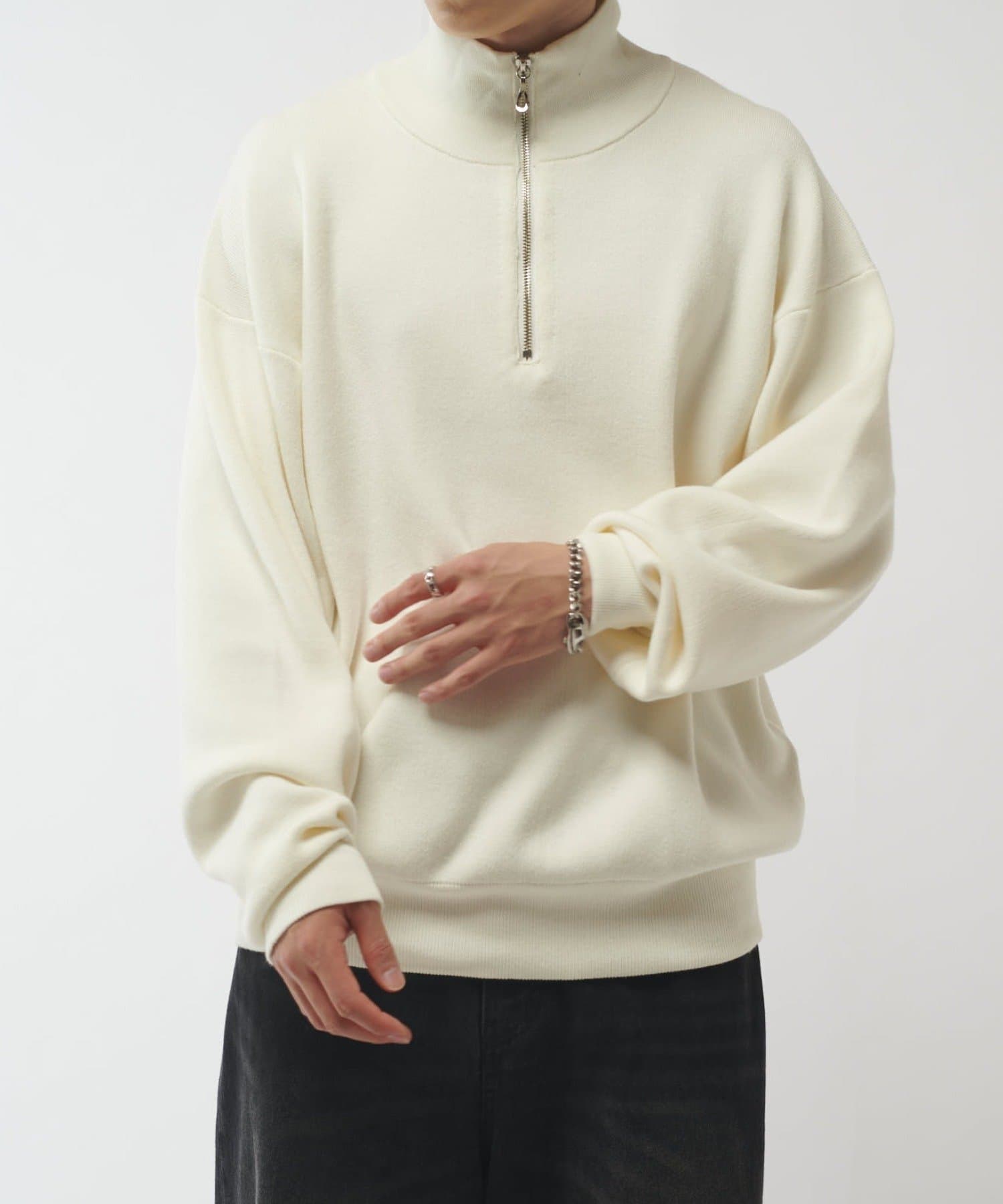 さらっとした心地よい着心地のハーフジップニット。