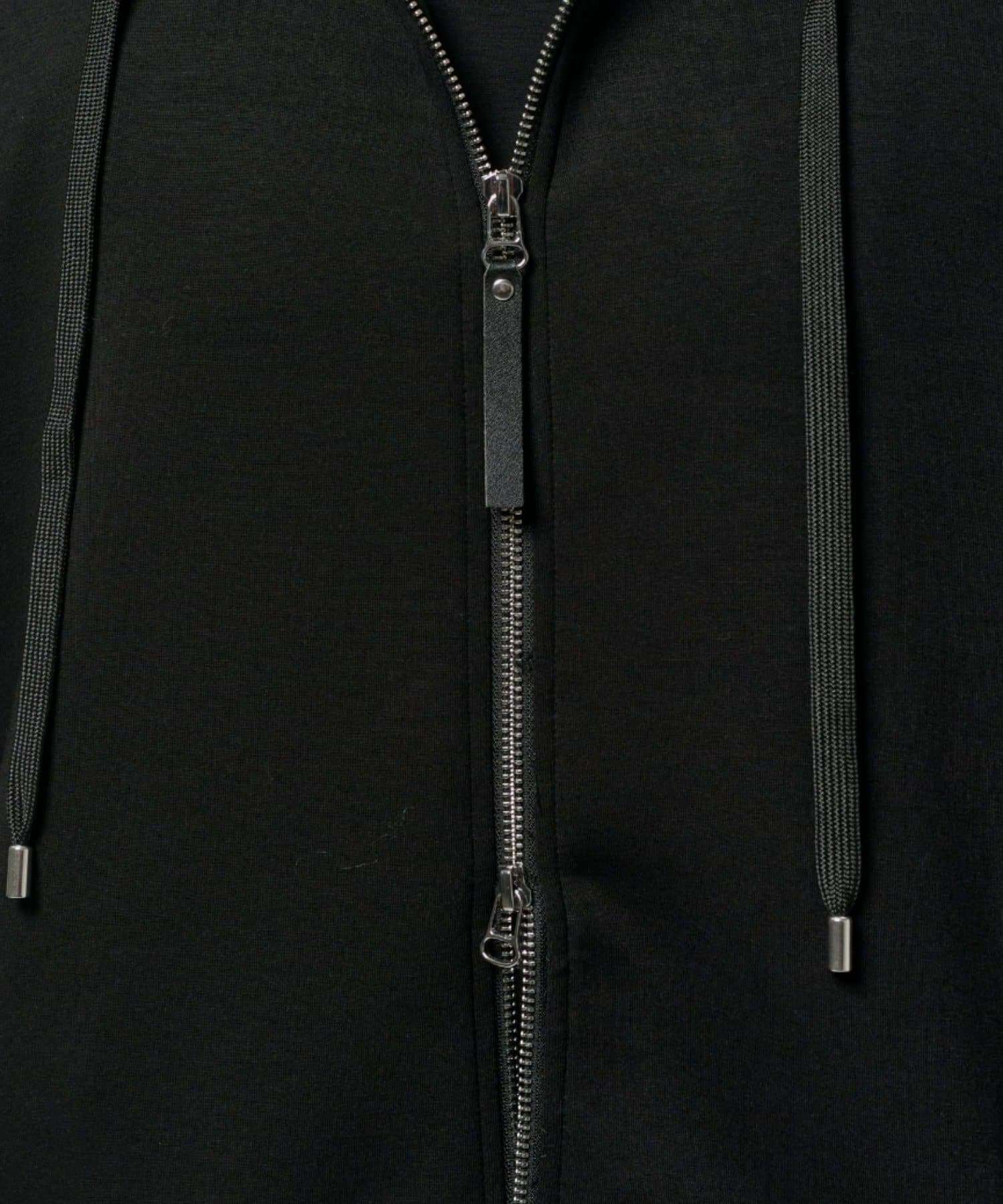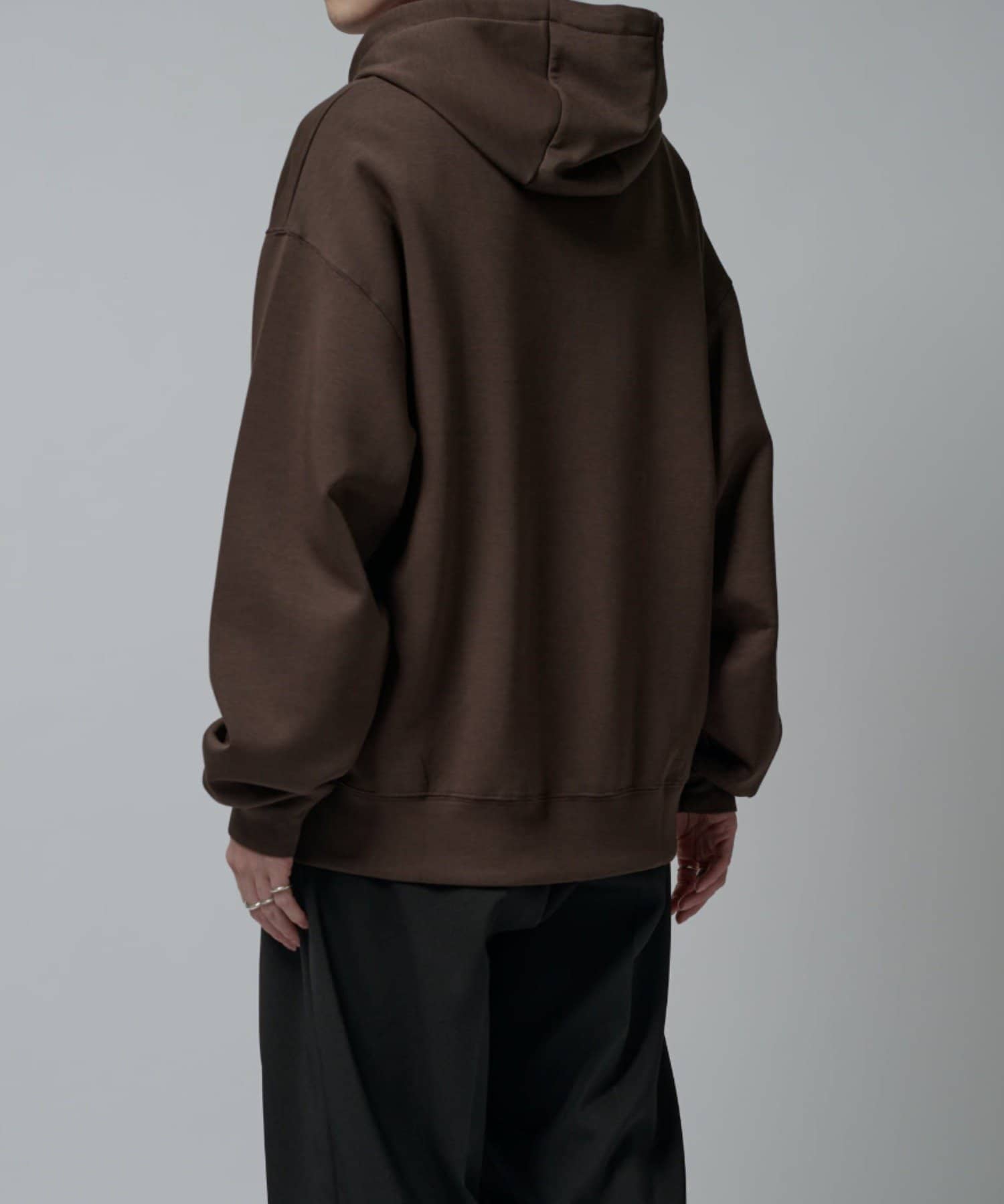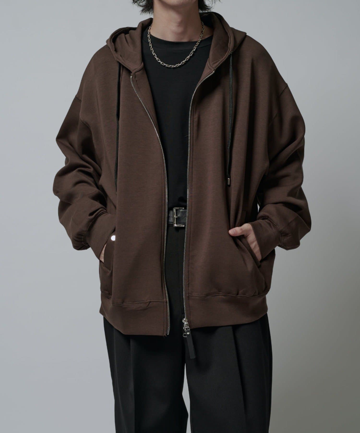柔らかい肌触りの少しモチっとした素材感のジップパーカー。