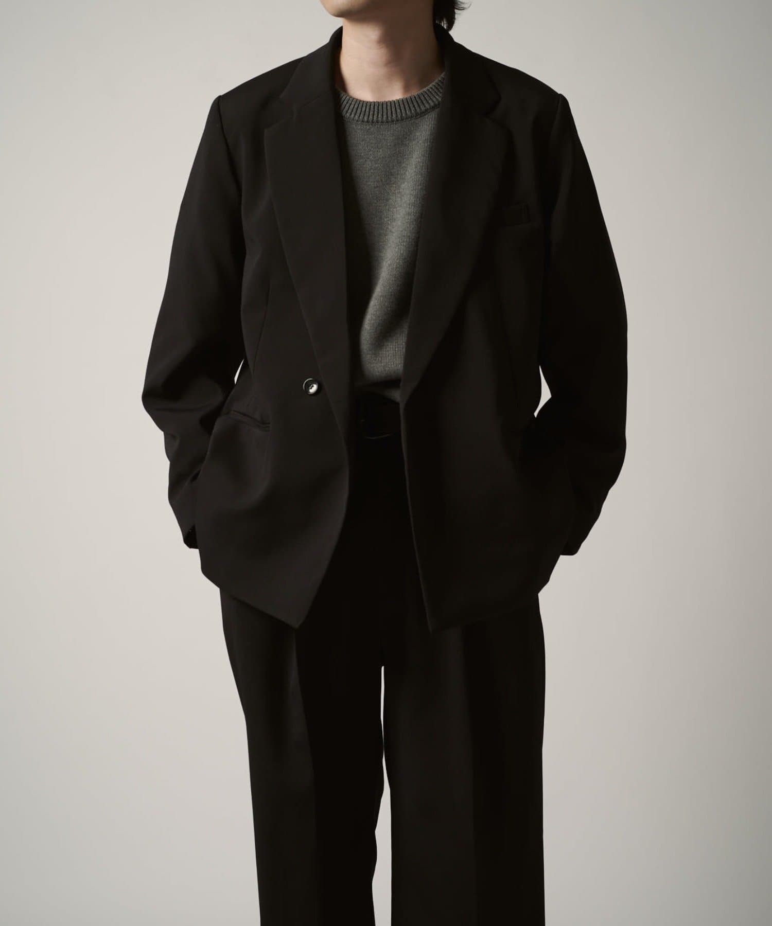 上品な素材感とシルエットに拘ったダブルクロス素材のセミシングルジャケット。