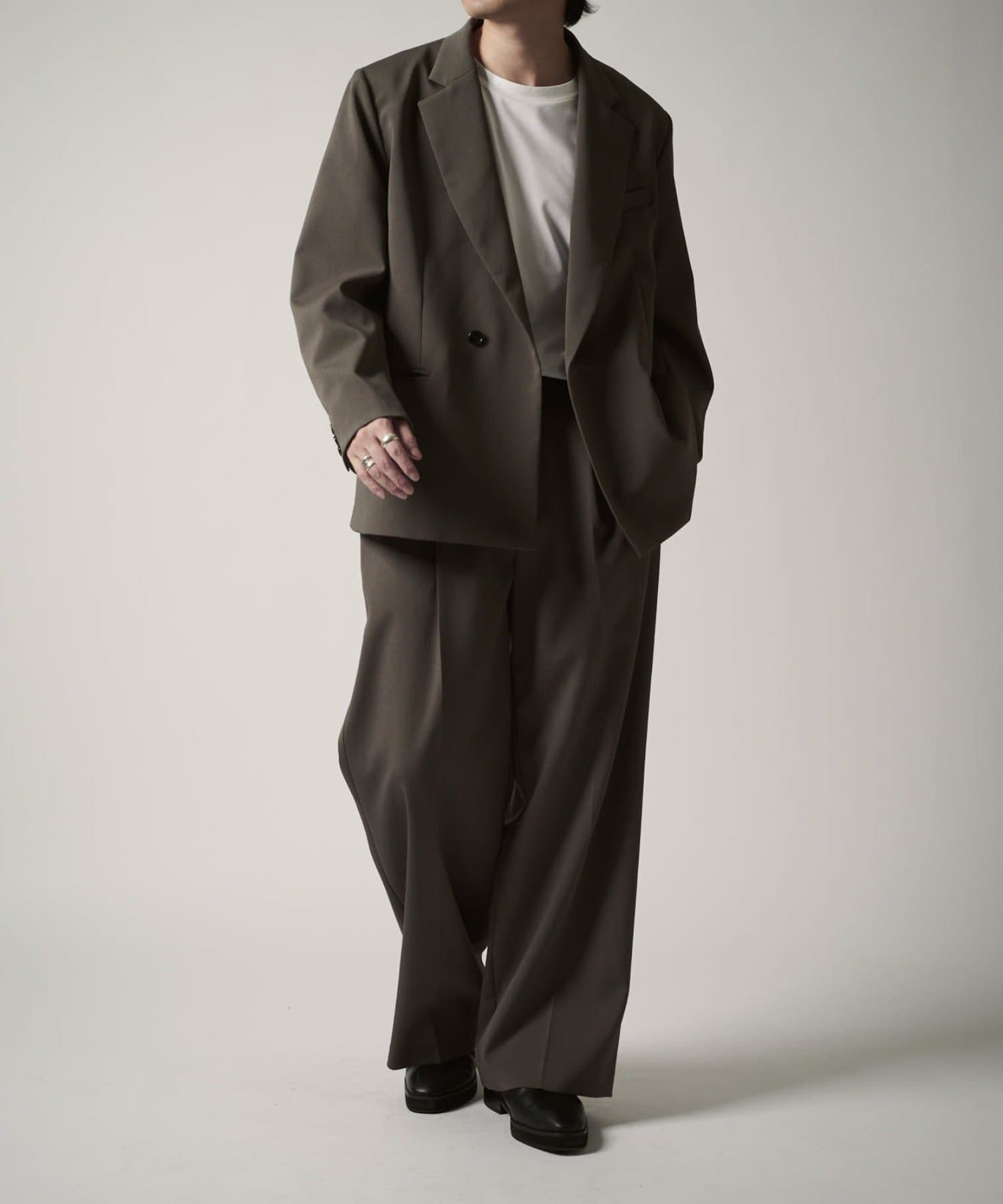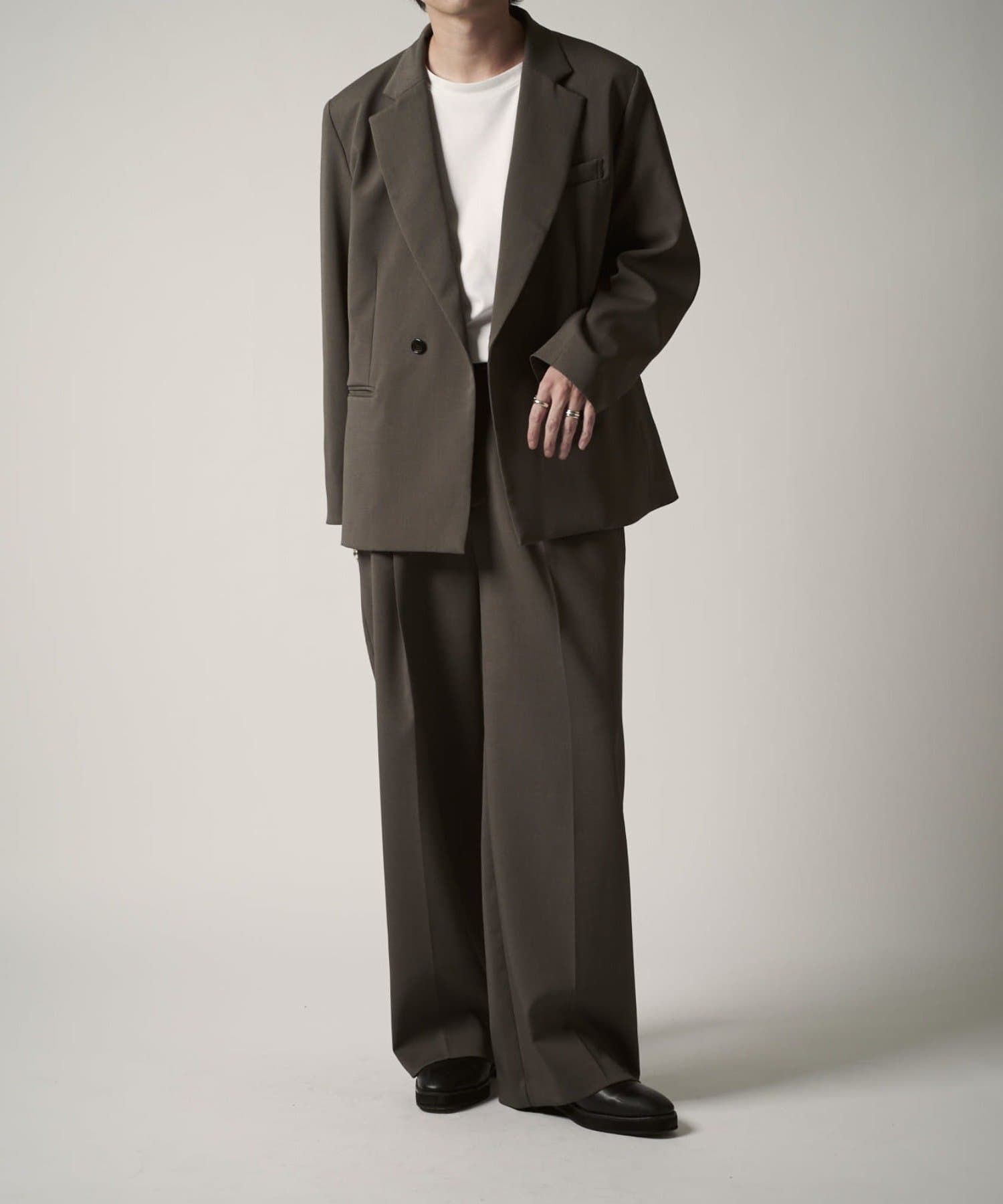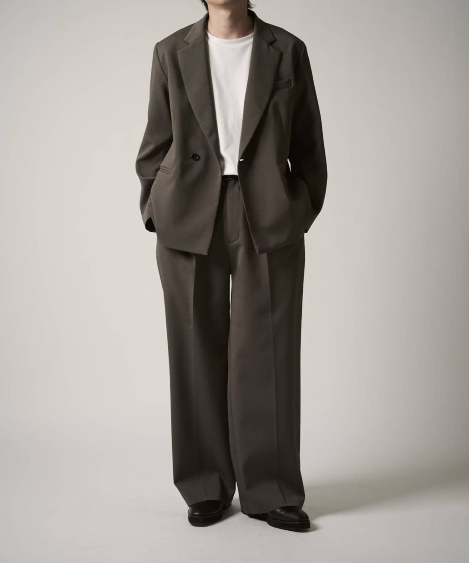 同素材のパンツを2型展開しております。ワイドシルエットのパンツと、やや細めのストレートシルエット。