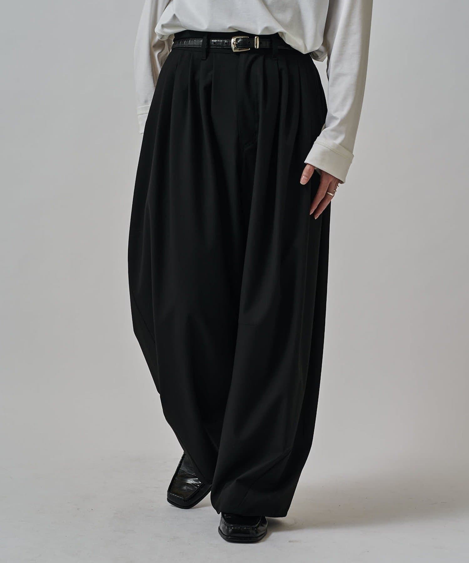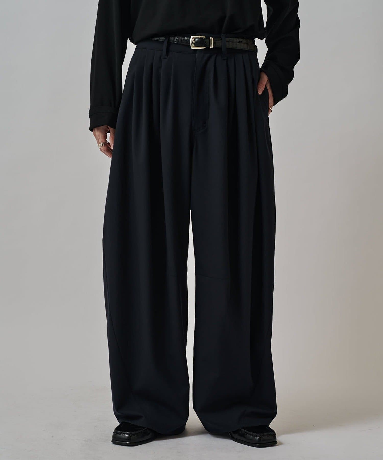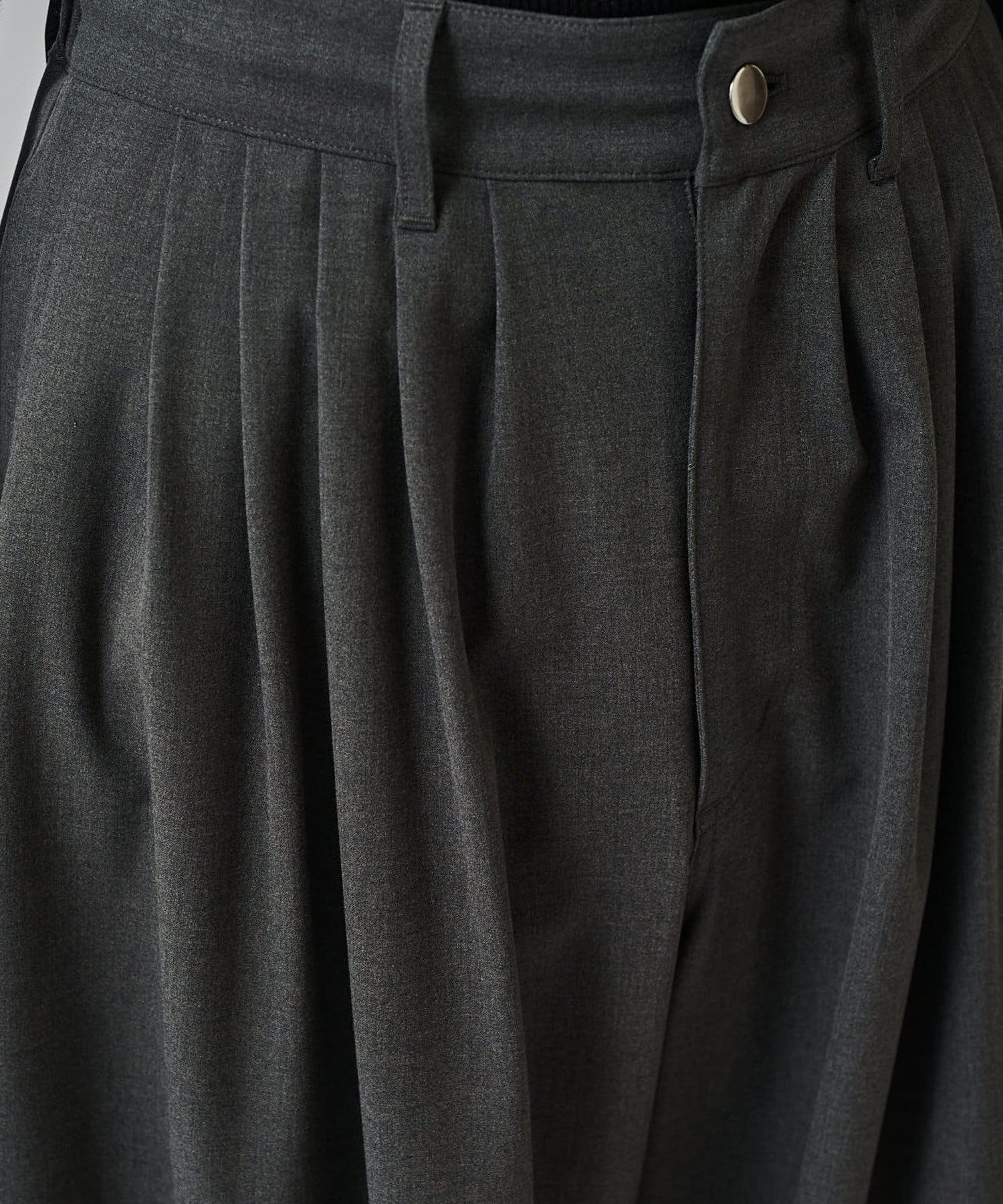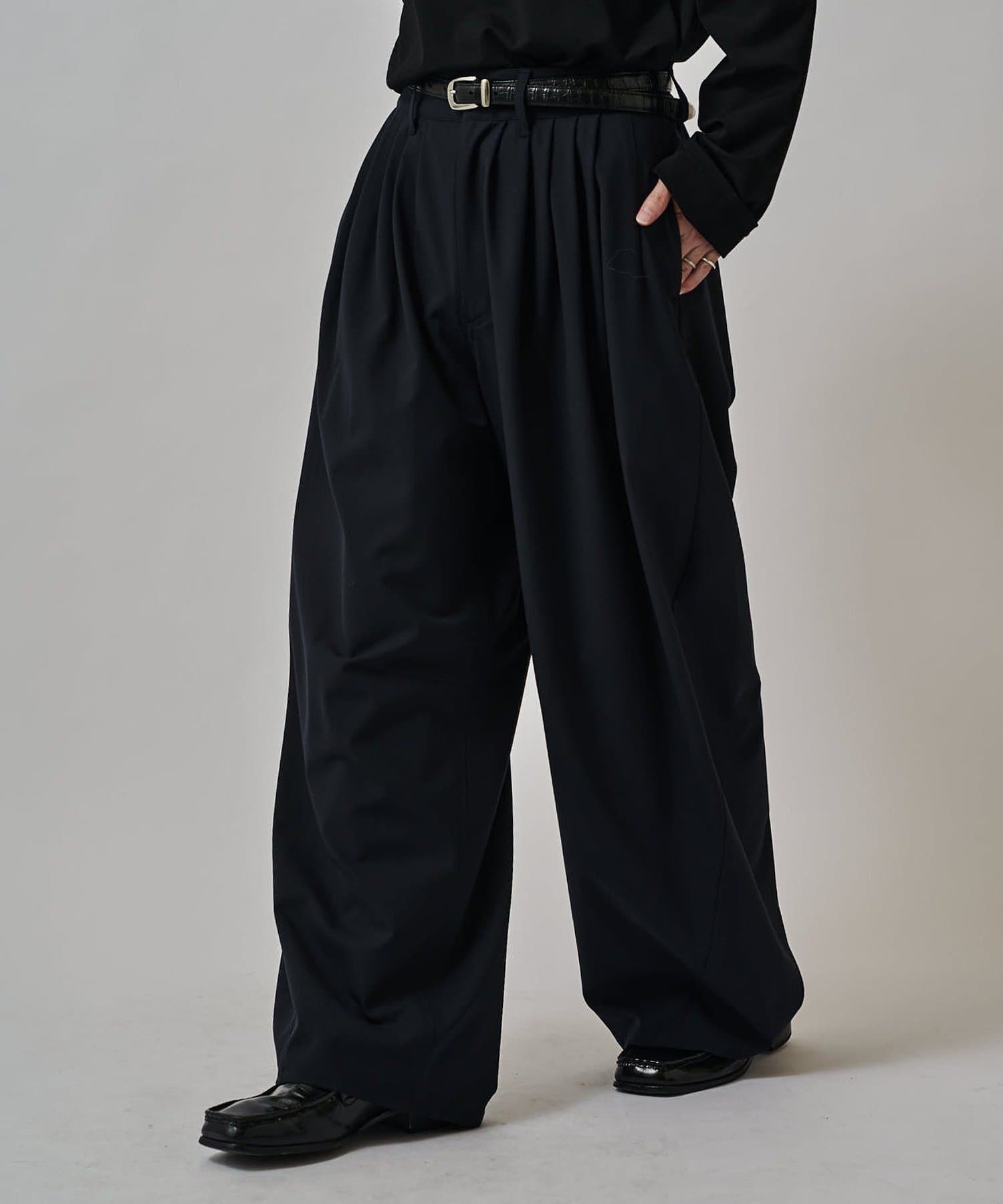 "鬼タック"の名称の通り、通常よりもタック数を増やし、独特なボリュームが出るのが特徴的なこちらのデザインパンツ。