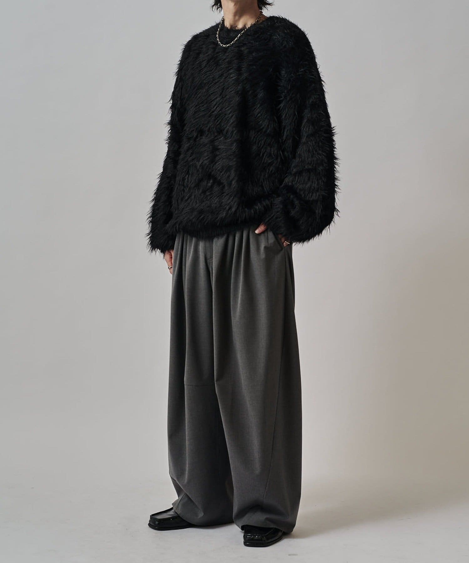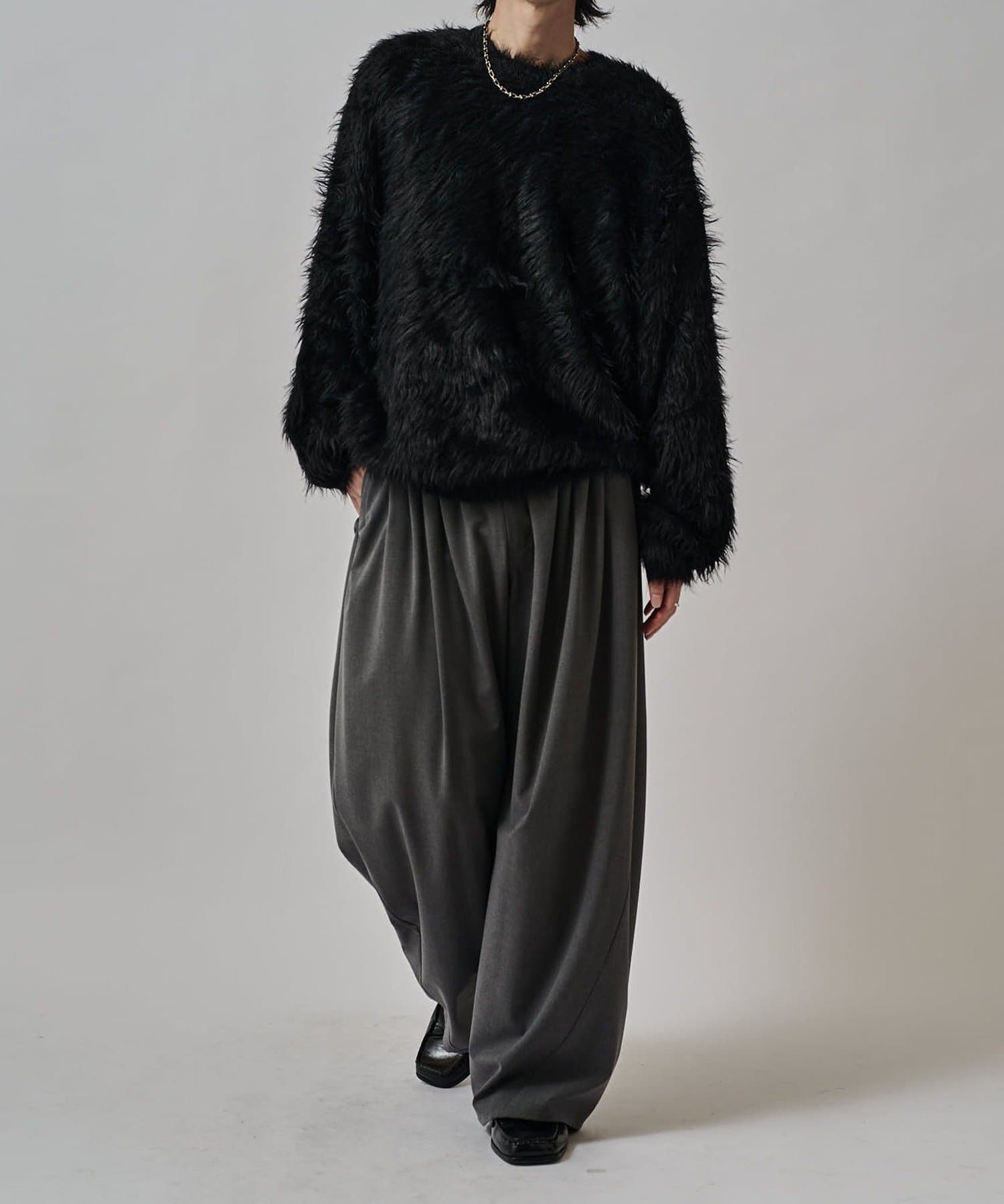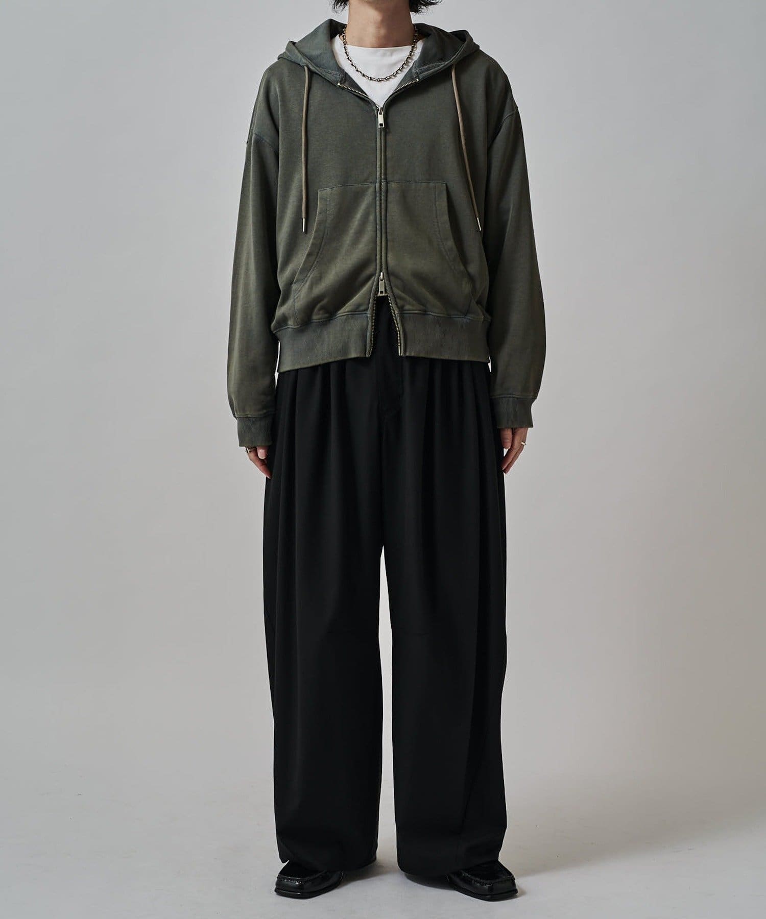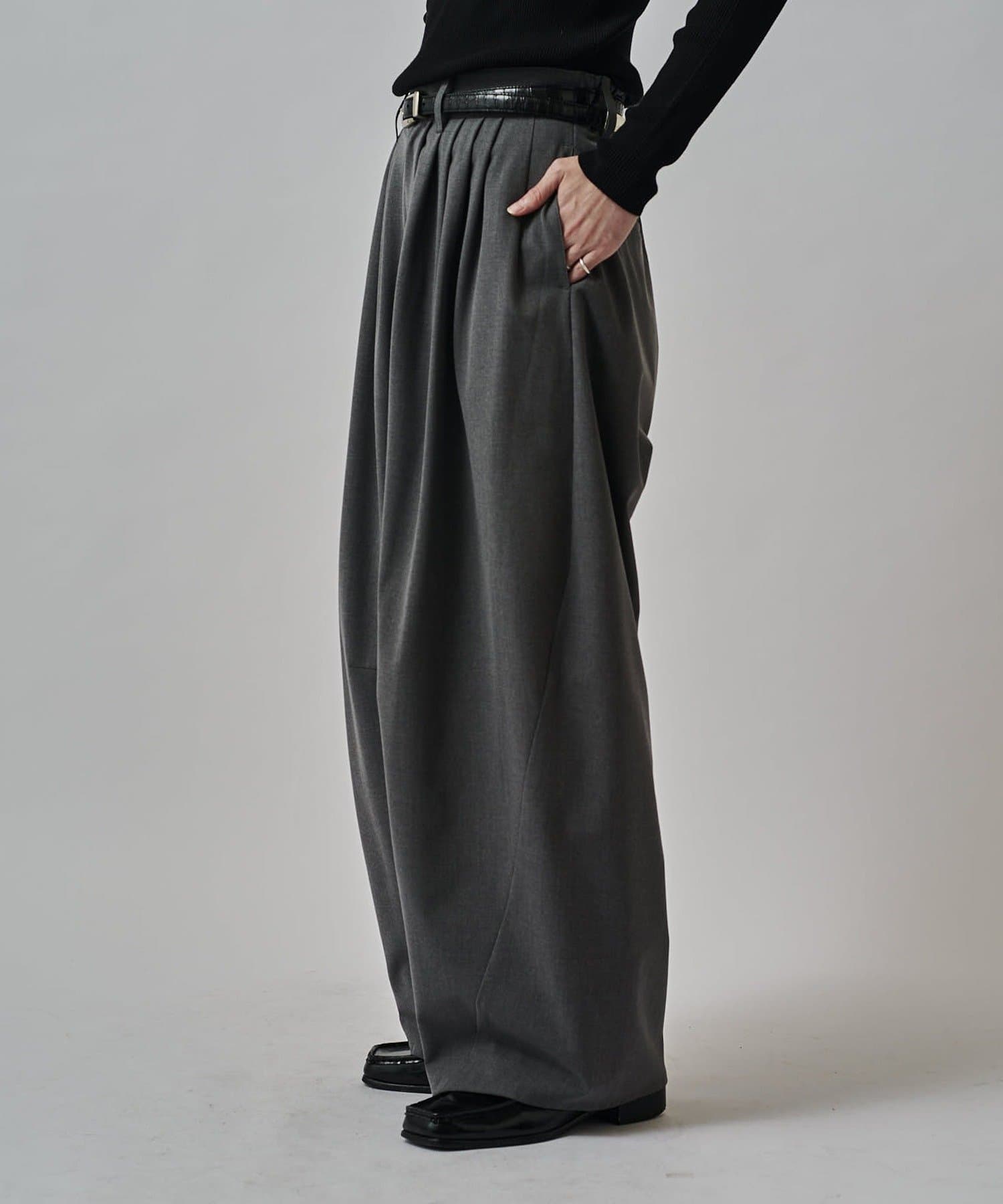 "鬼タック"の名称の通り、通常よりもタック数を増やし、独特なボリュームが出るのが特徴的なこちらのデザインパンツ。
