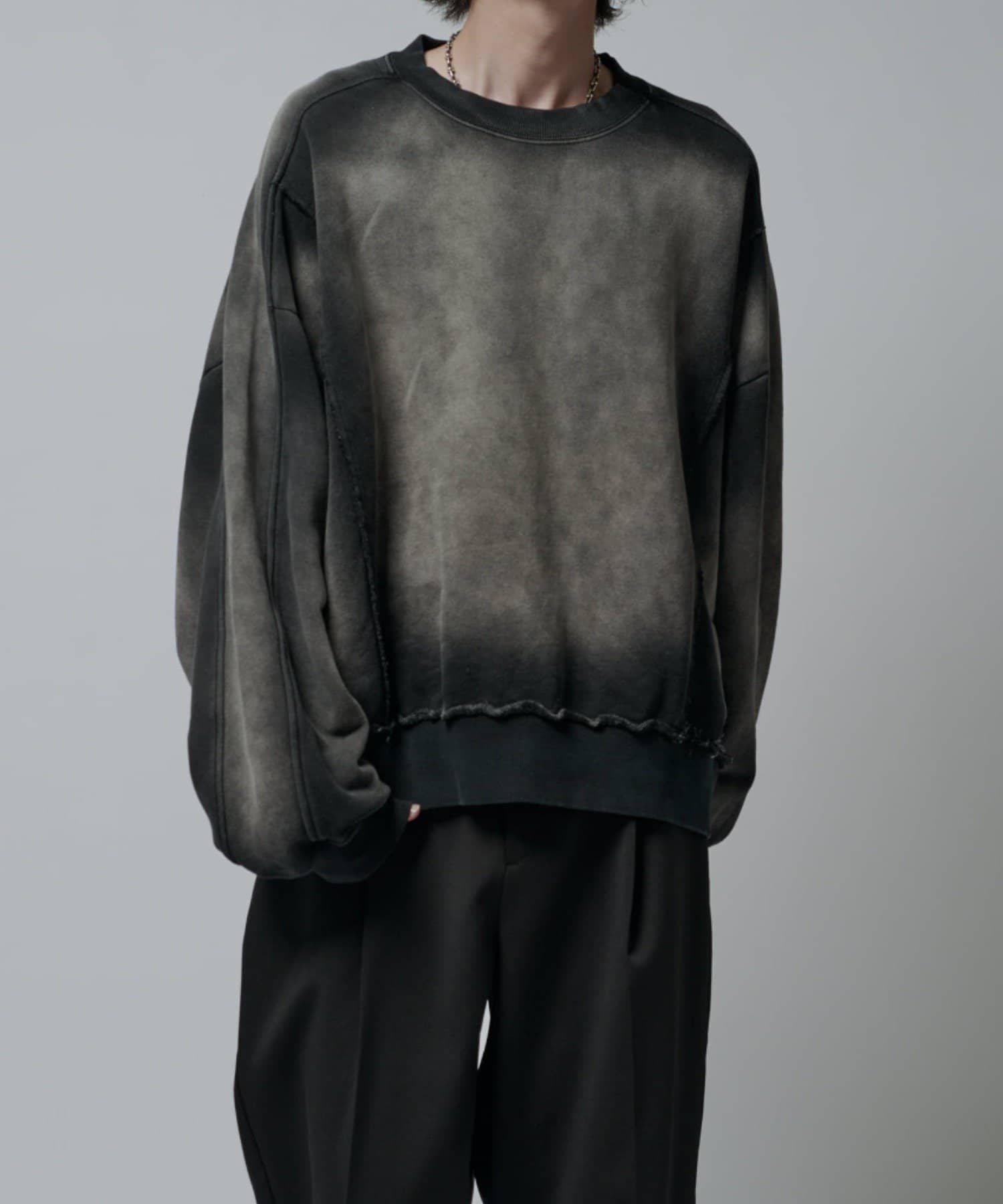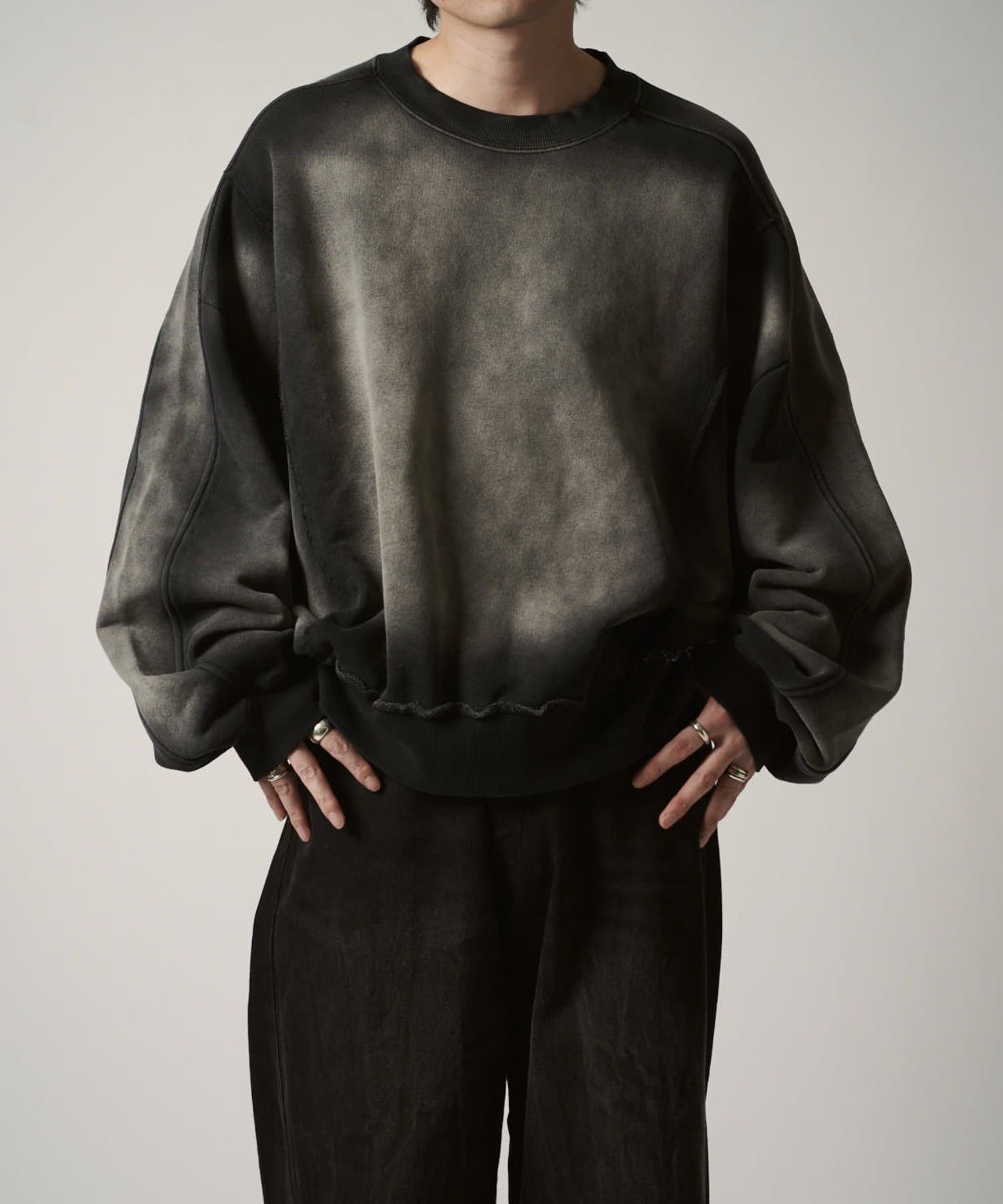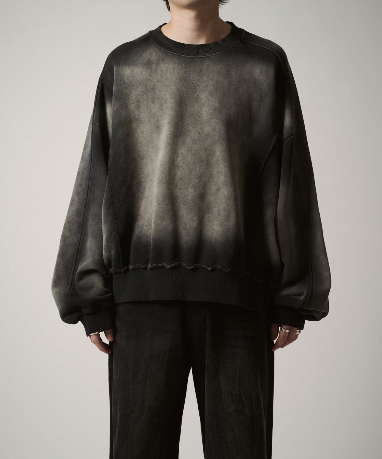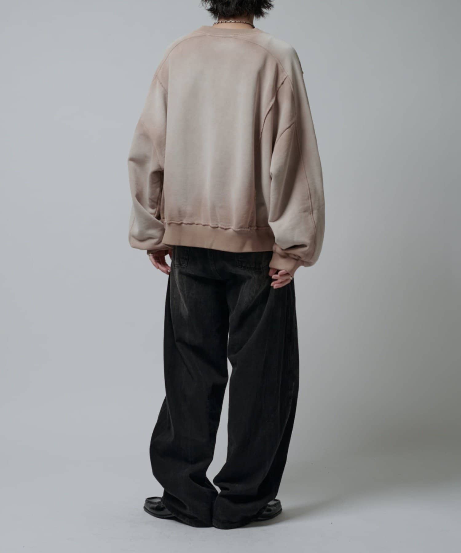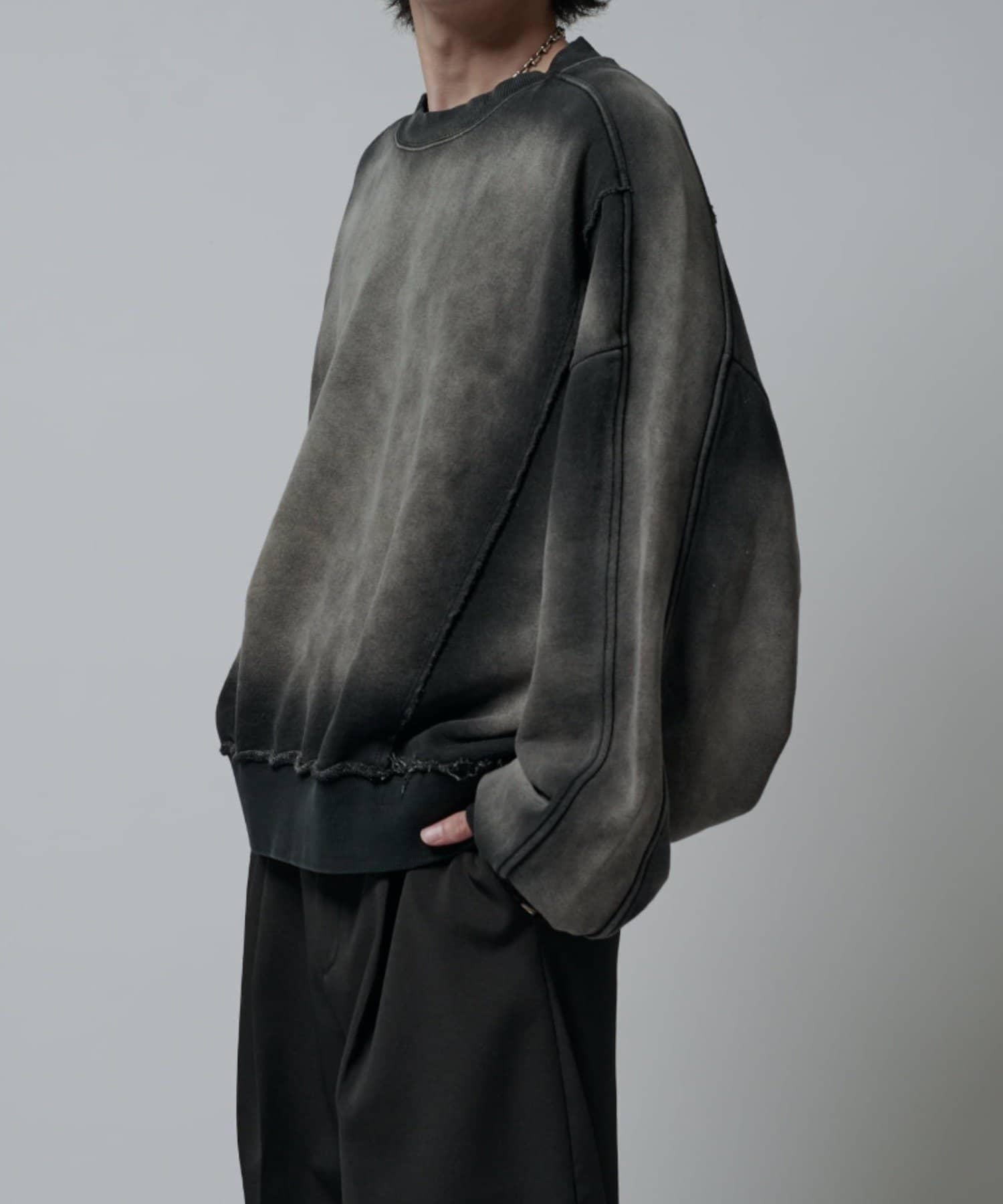 表面にブリーチ加工を施したこちらのスウェット。着丈に対して身幅を広く取っている丸みのあるワイドシルエット。