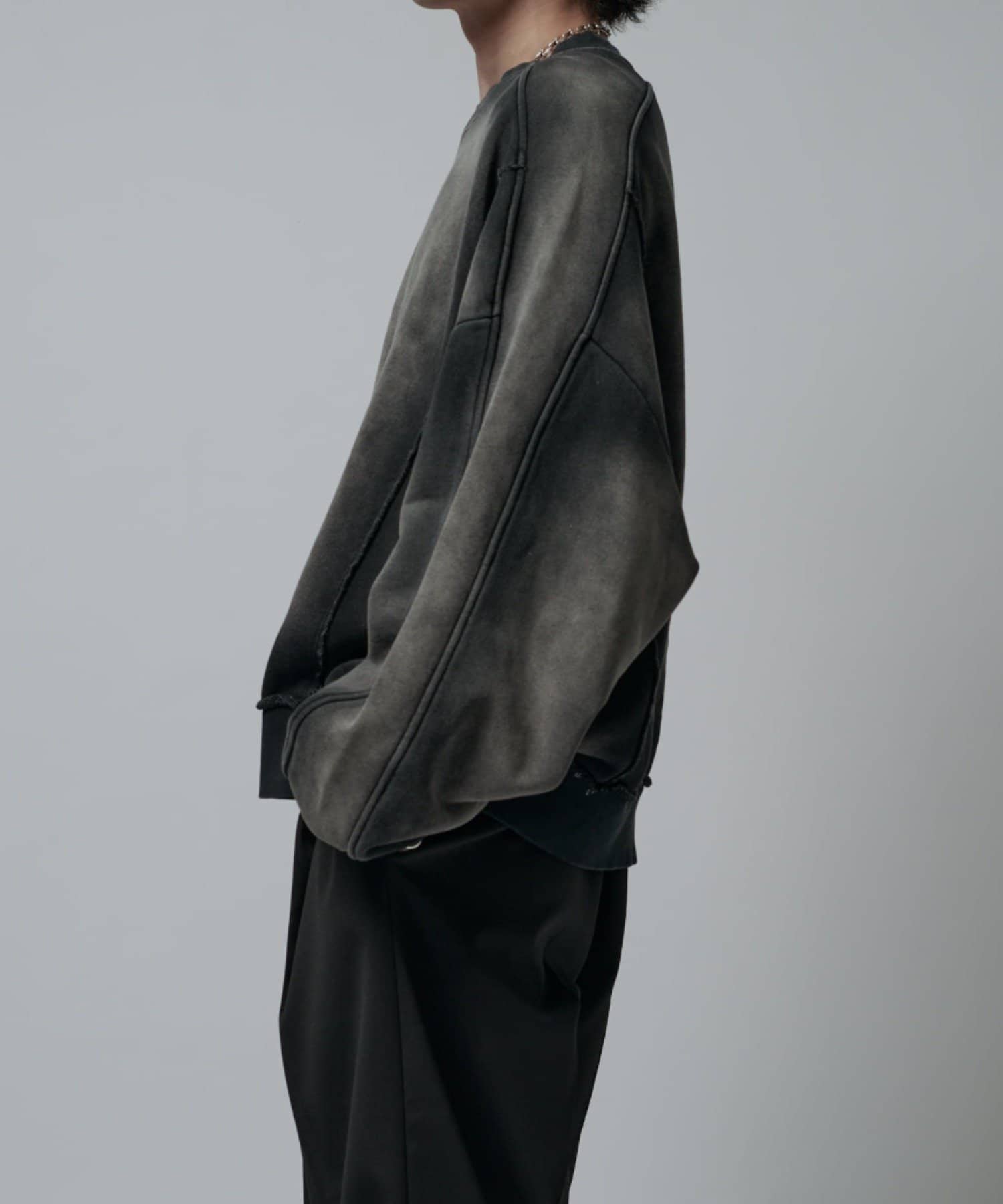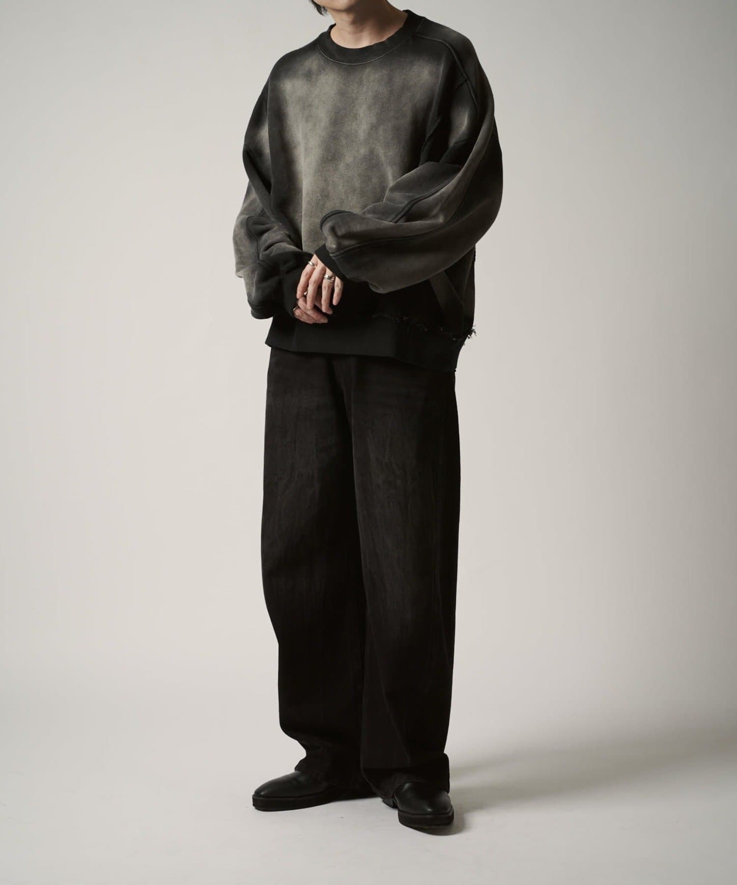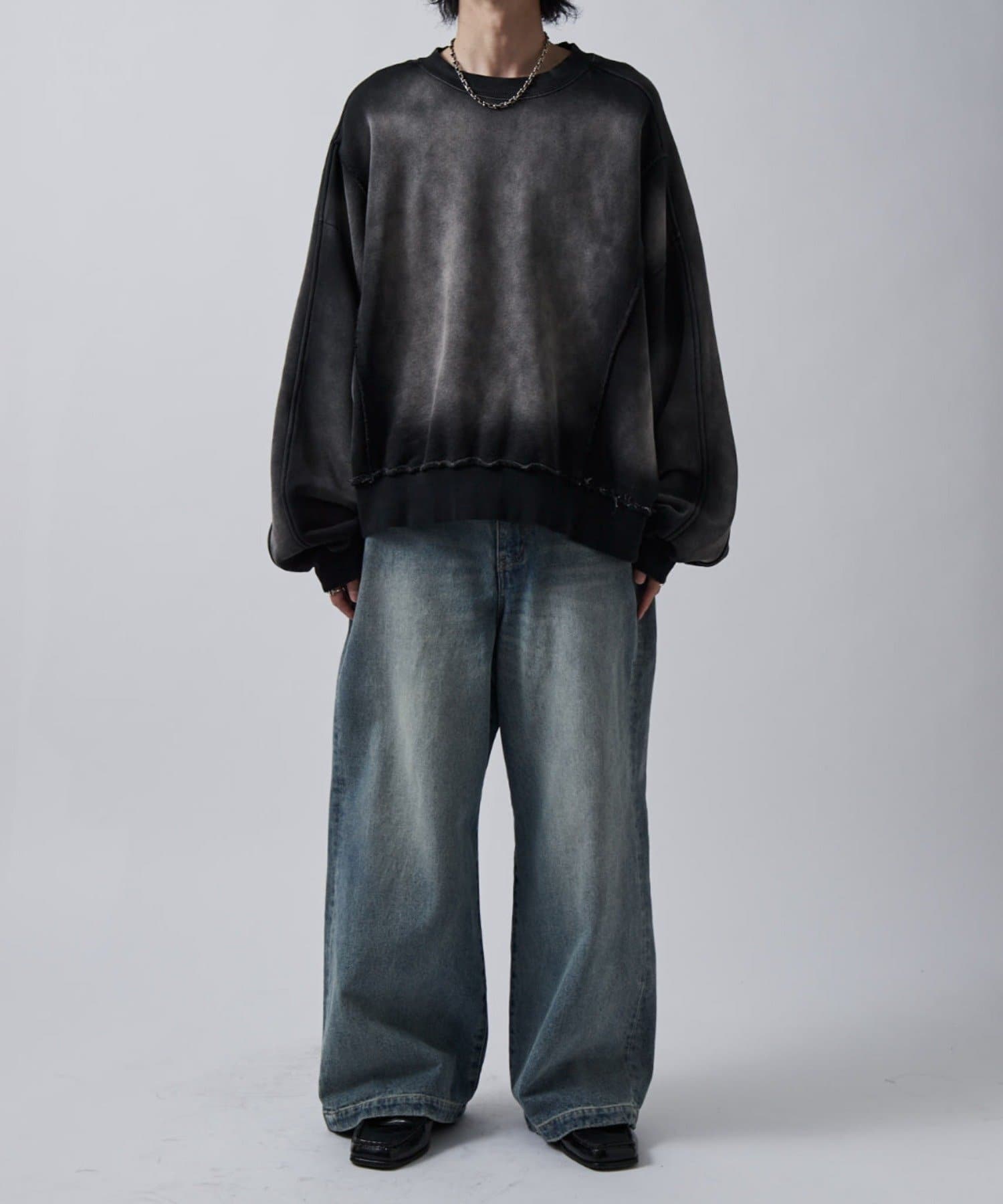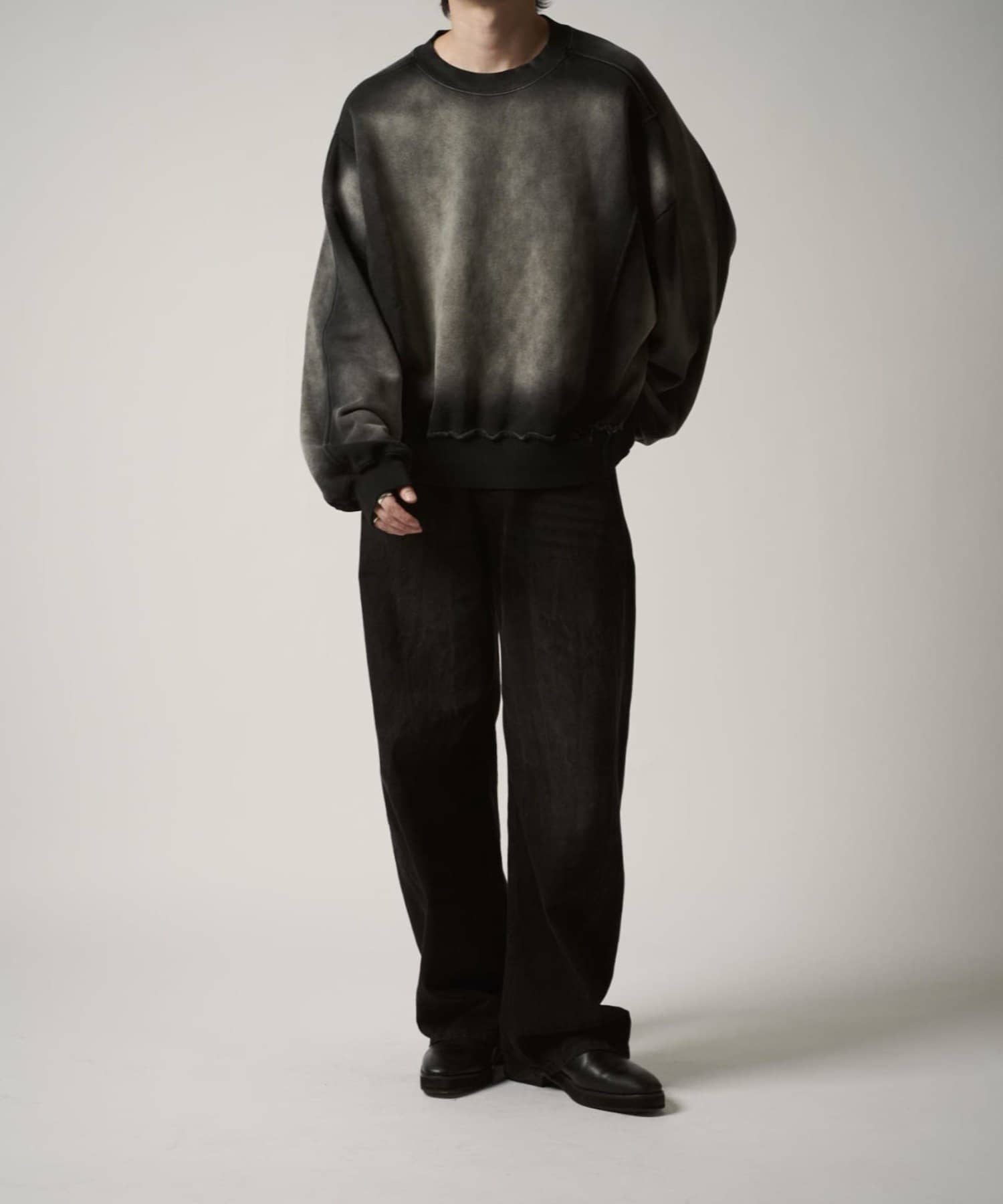 表面にブリーチ加工を施したこちらのスウェット。着丈に対して身幅を広く取っている丸みのあるワイドシルエット。
