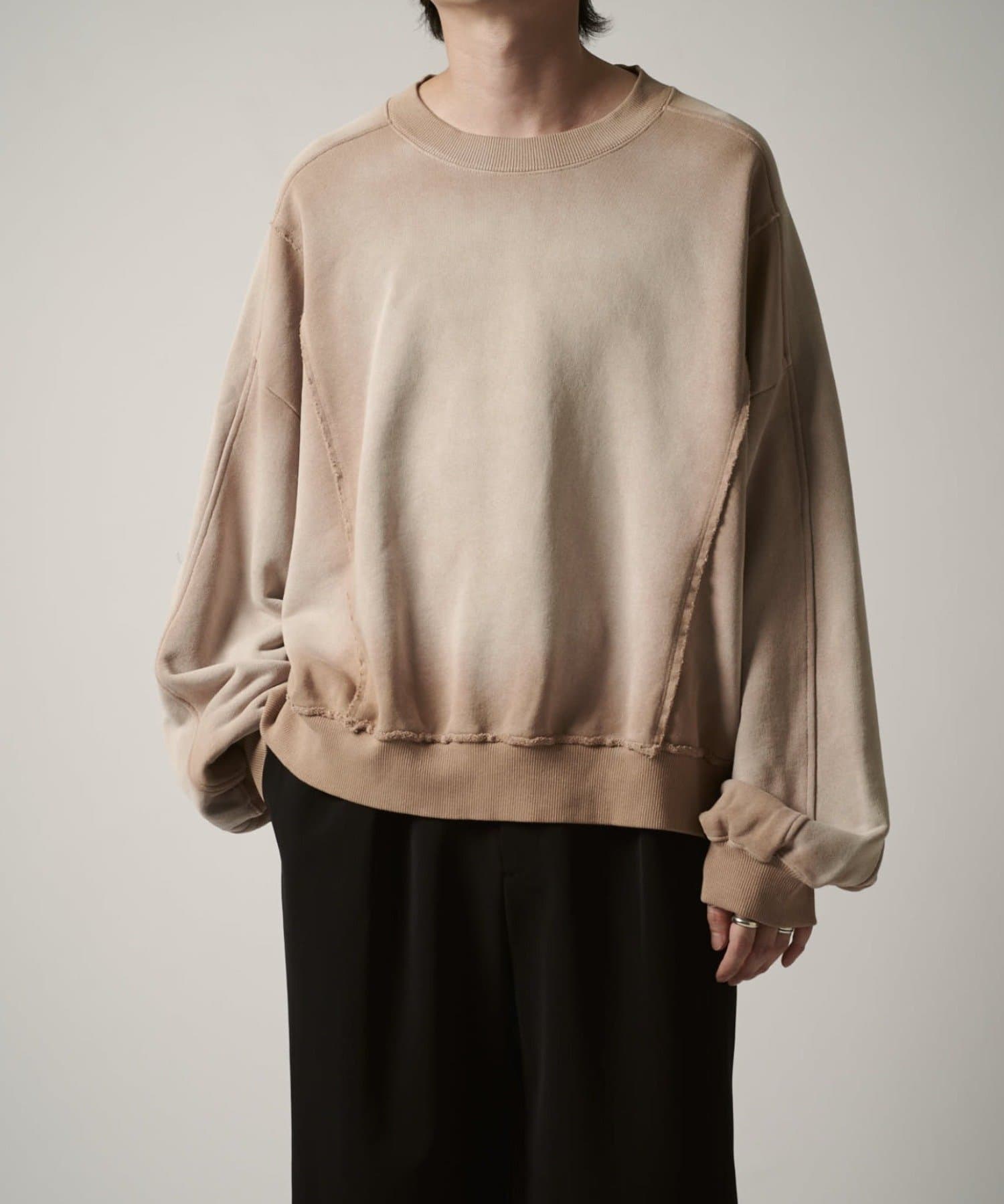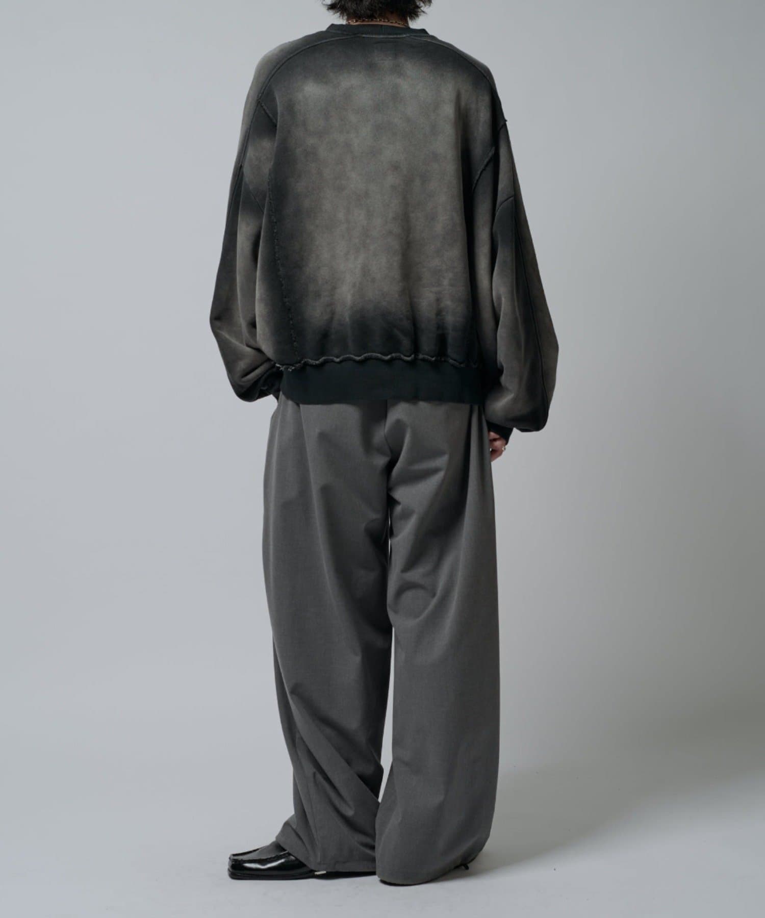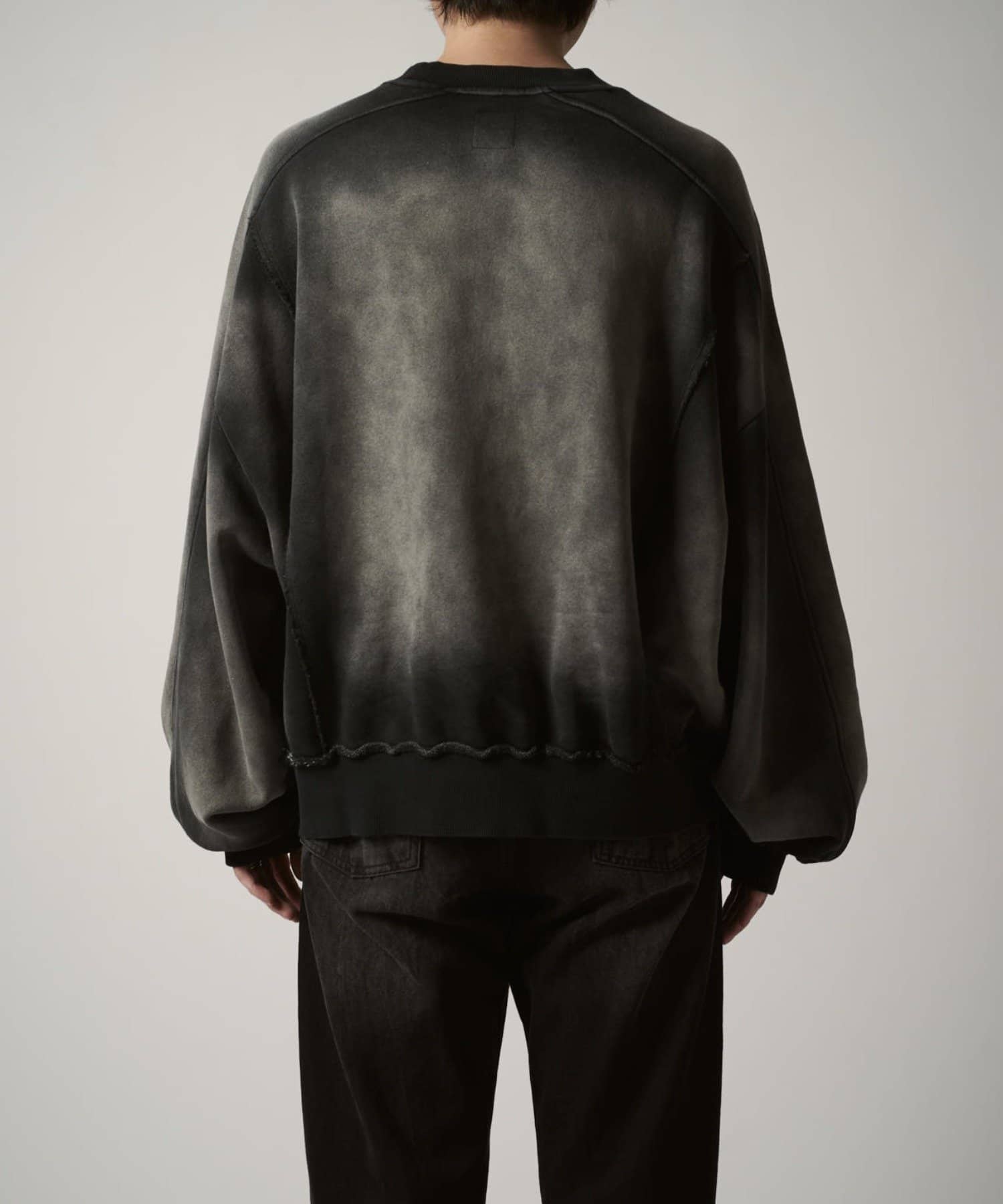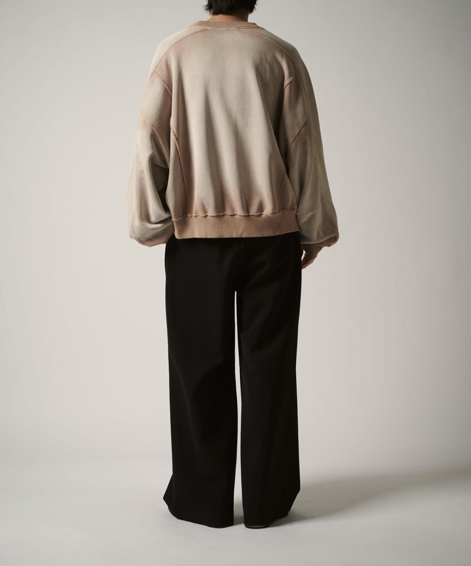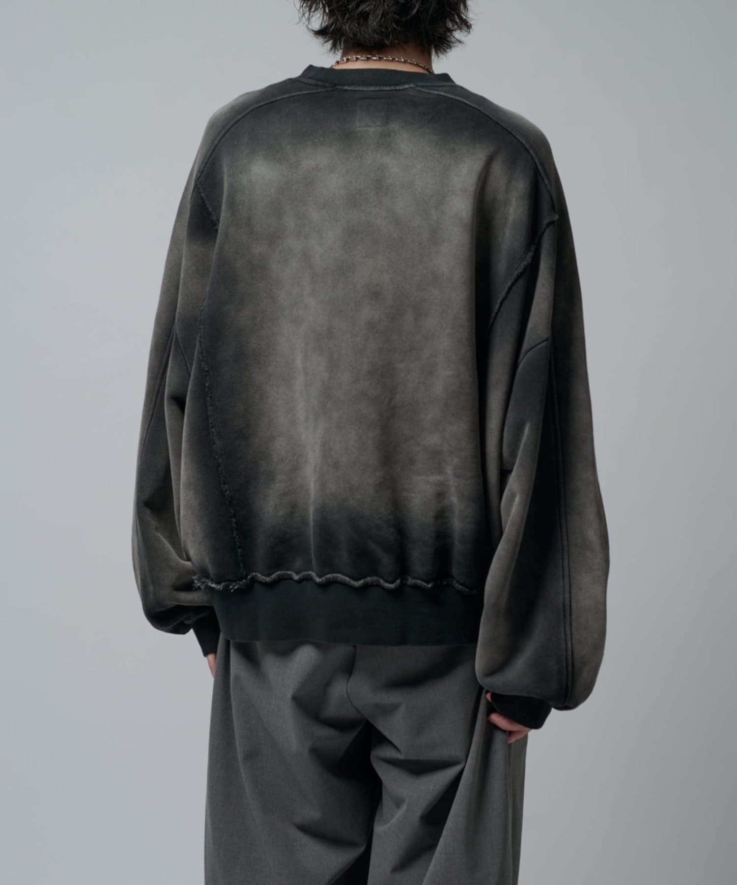 表面にブリーチ加工を施したこちらのスウェット。着丈に対して身幅を広く取っている丸みのあるワイドシルエット。