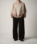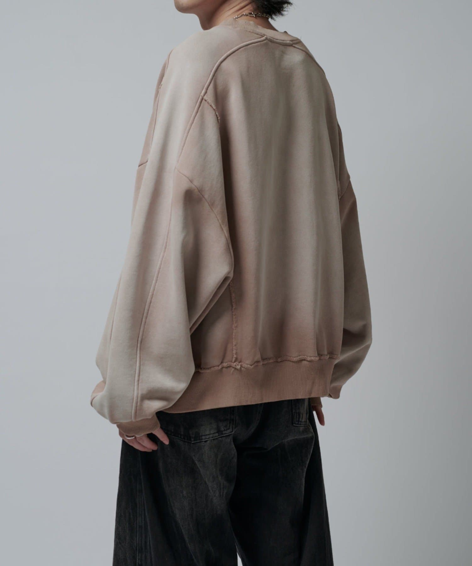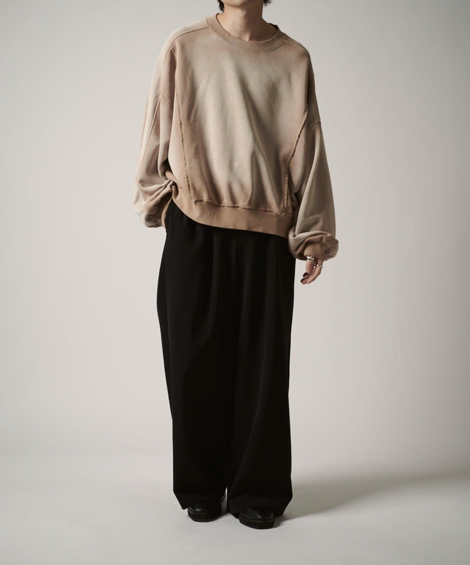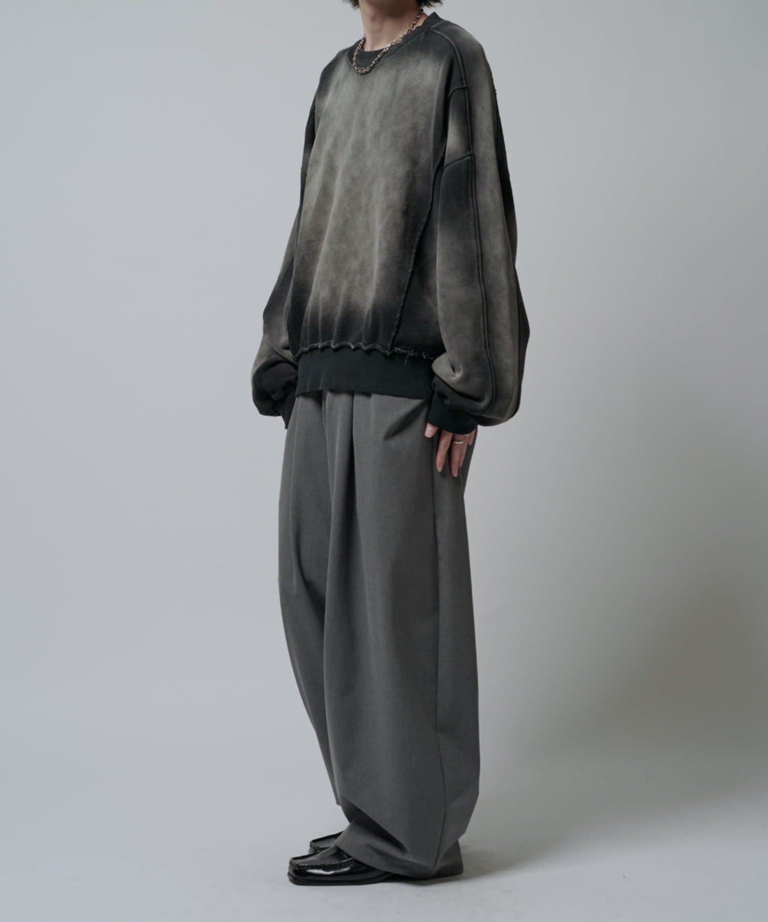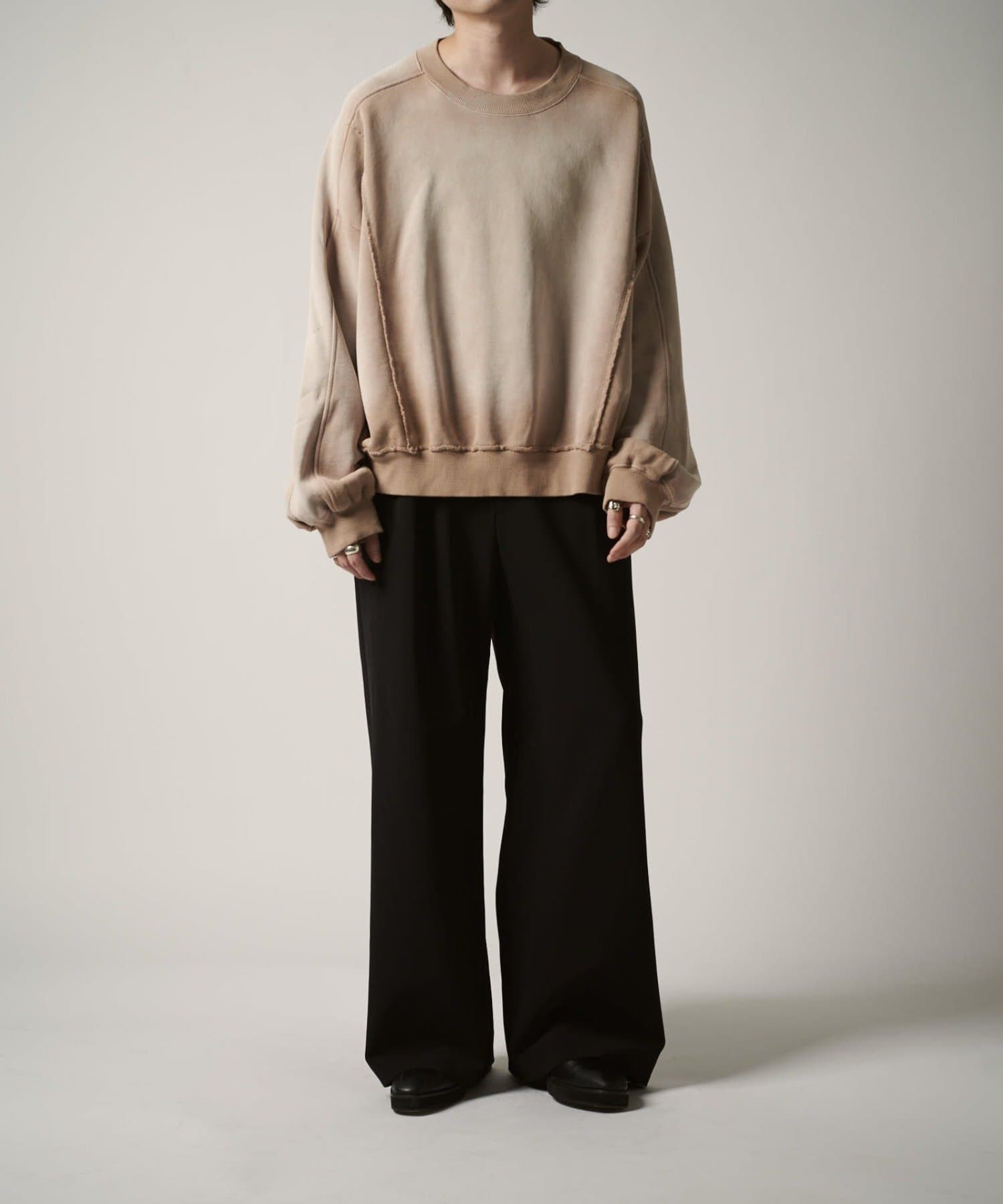 表面にブリーチ加工を施したこちらのスウェット。着丈に対して身幅を広く取っている丸みのあるワイドシルエット。