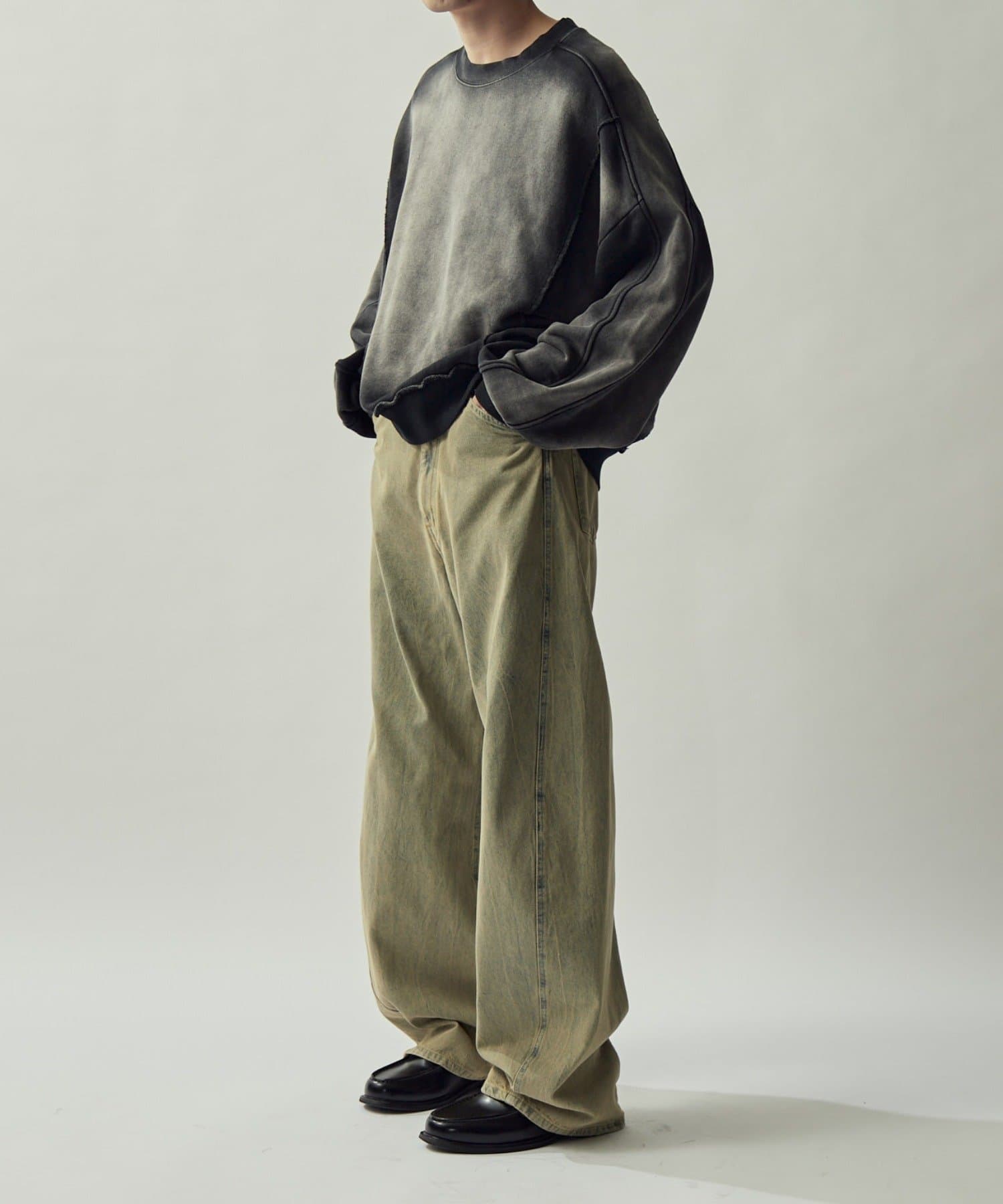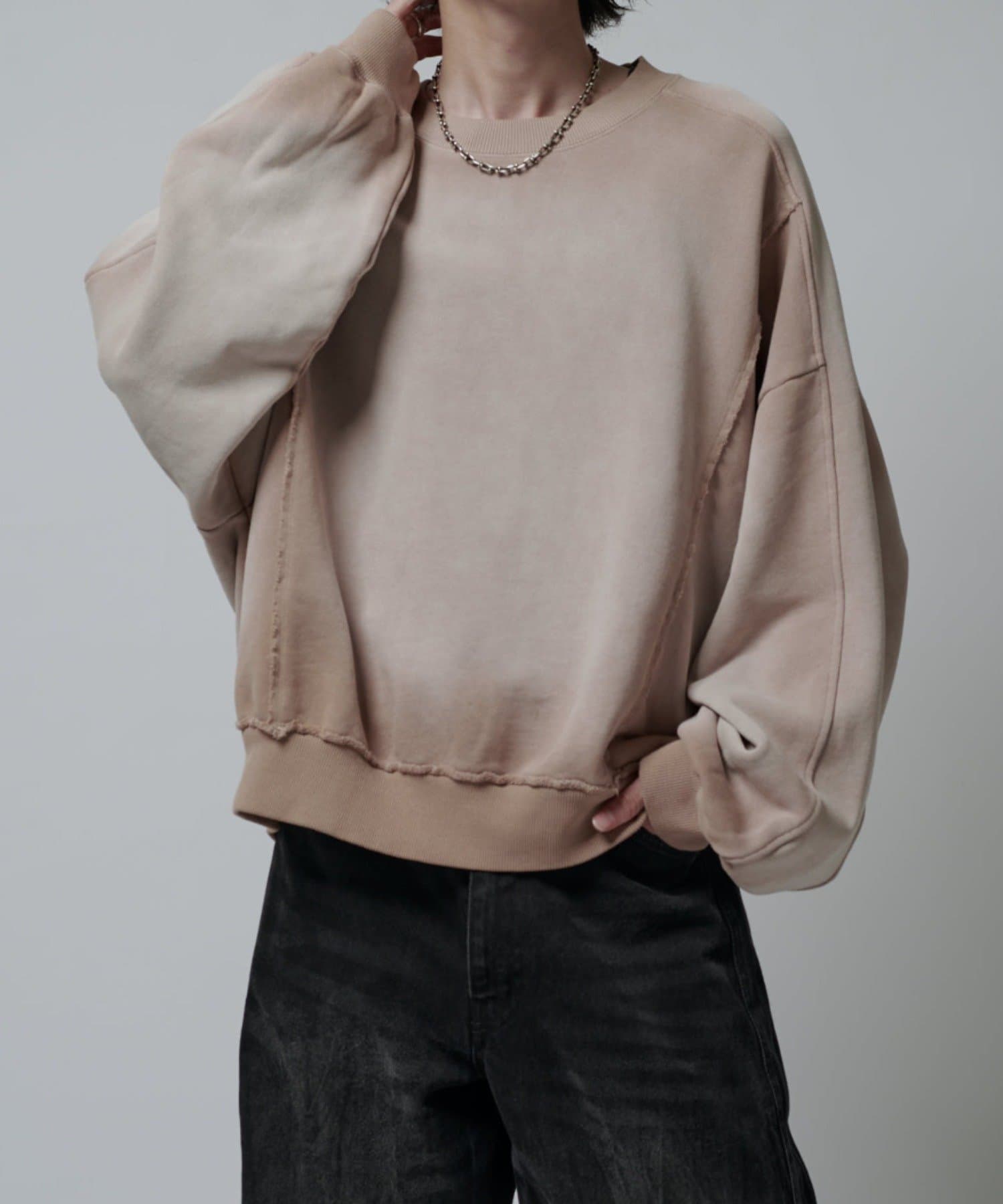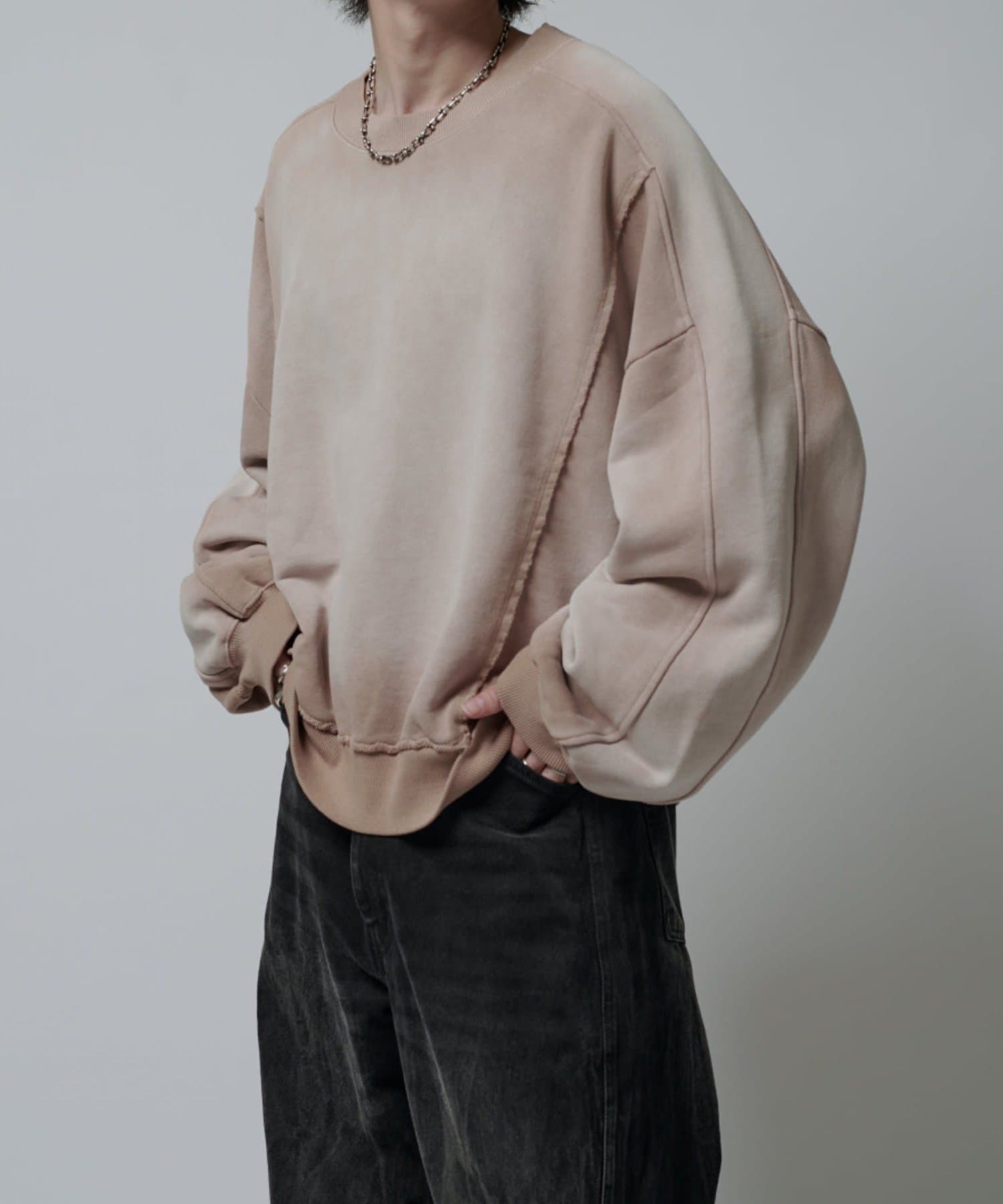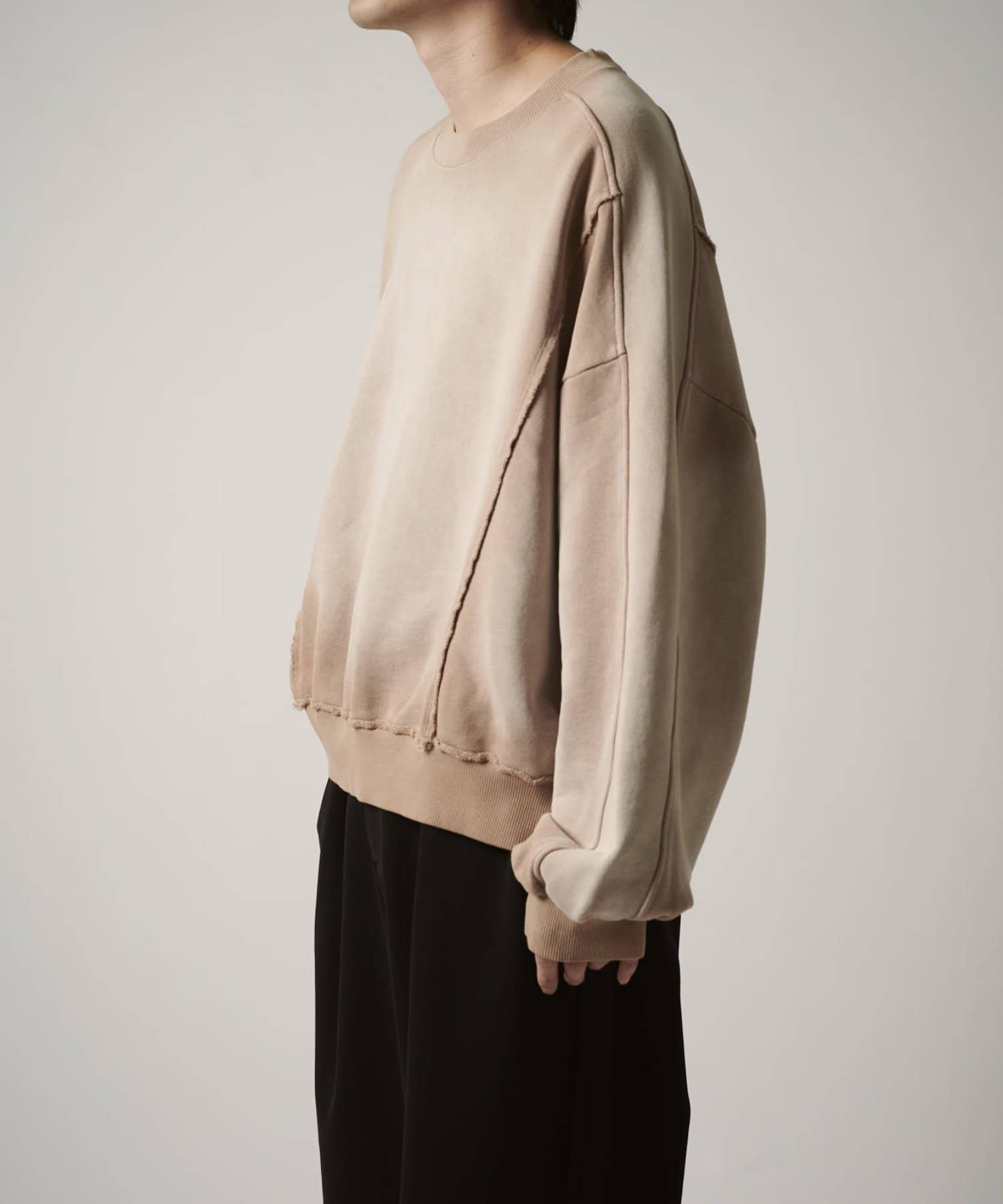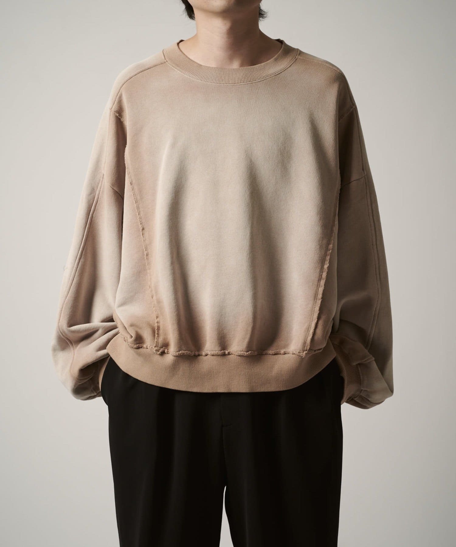 表面にブリーチ加工を施したこちらのスウェット。着丈に対して身幅を広く取っている丸みのあるワイドシルエット。