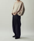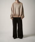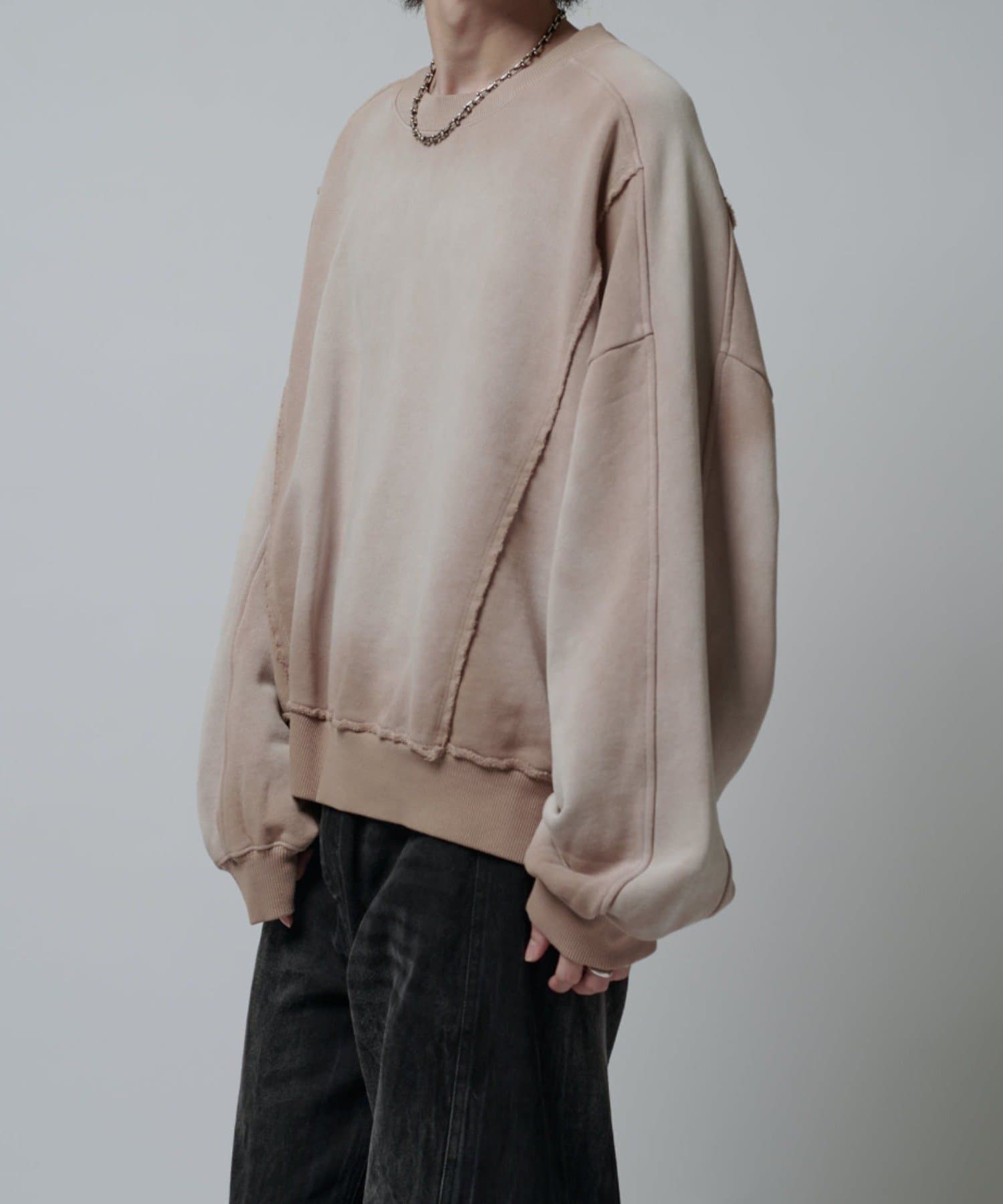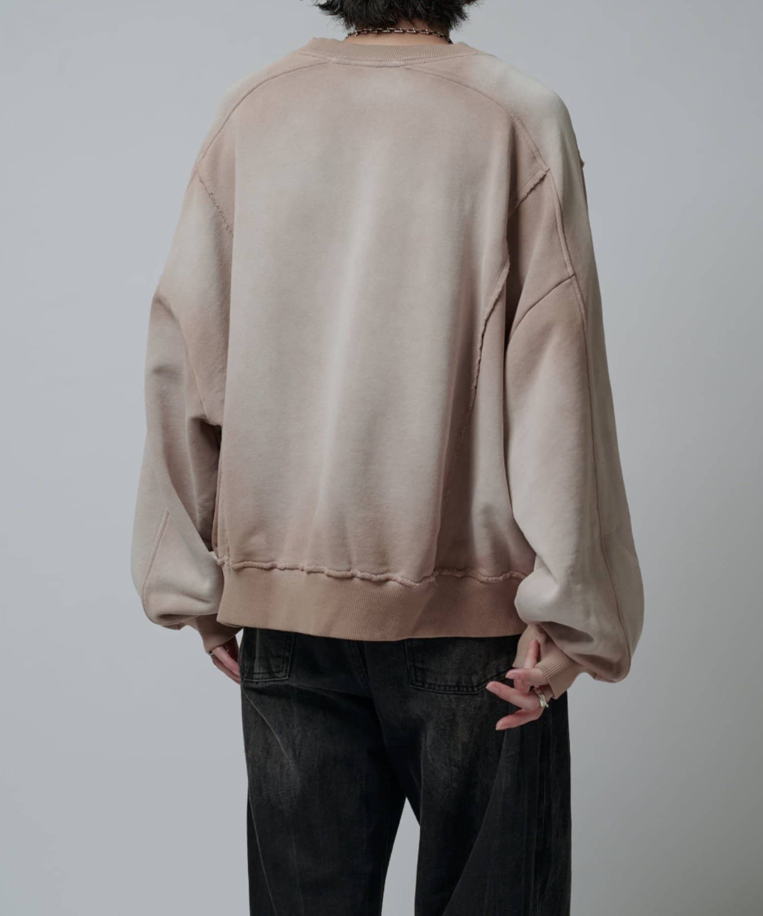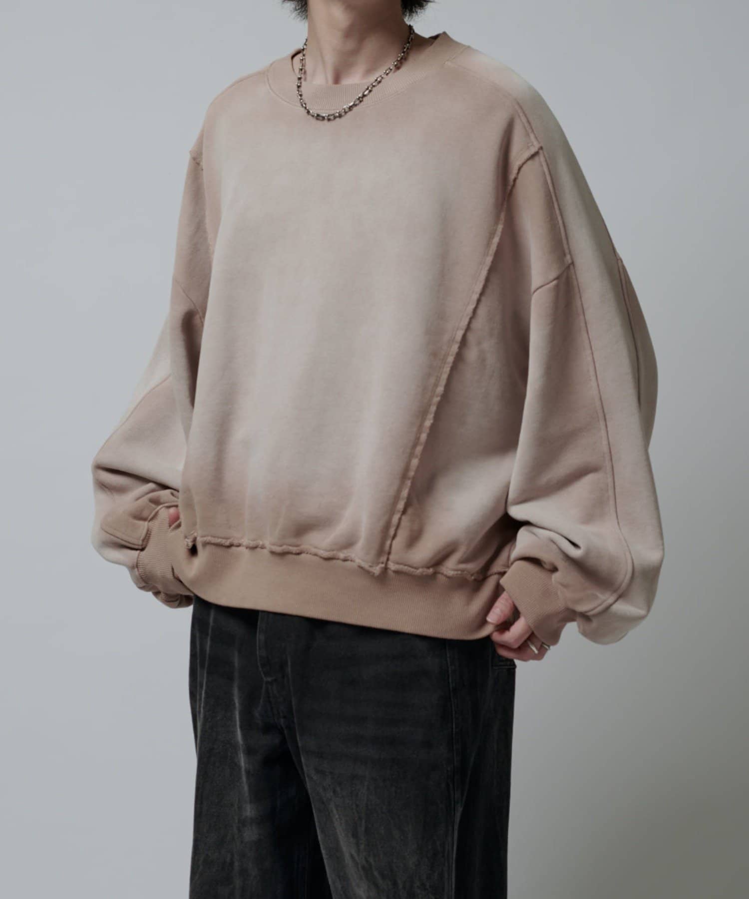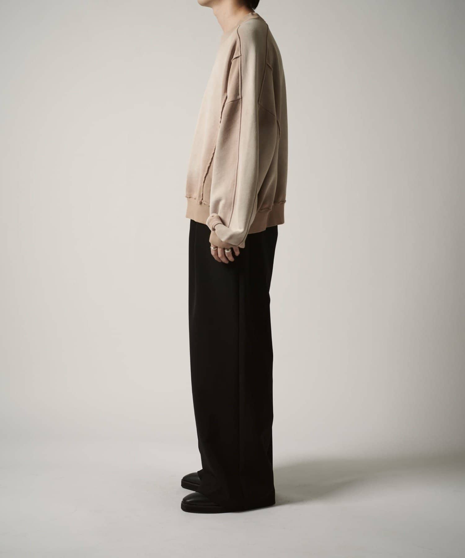 表面にブリーチ加工を施したこちらのスウェット。着丈に対して身幅を広く取っている丸みのあるワイドシルエット。