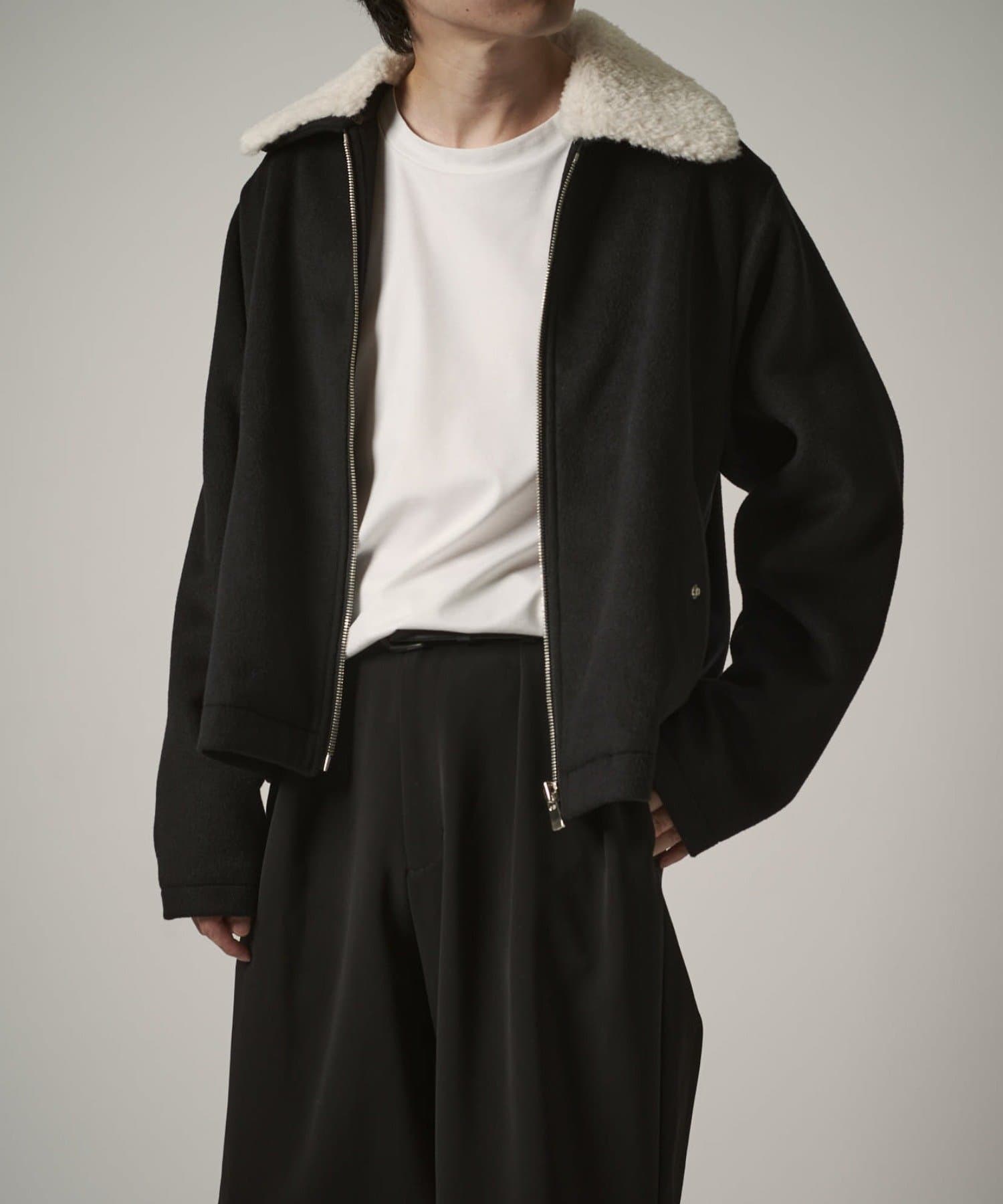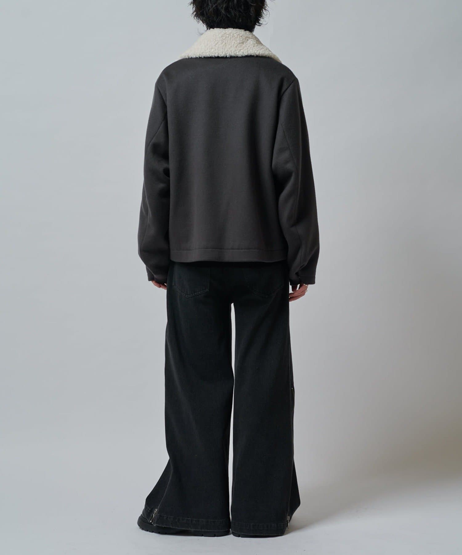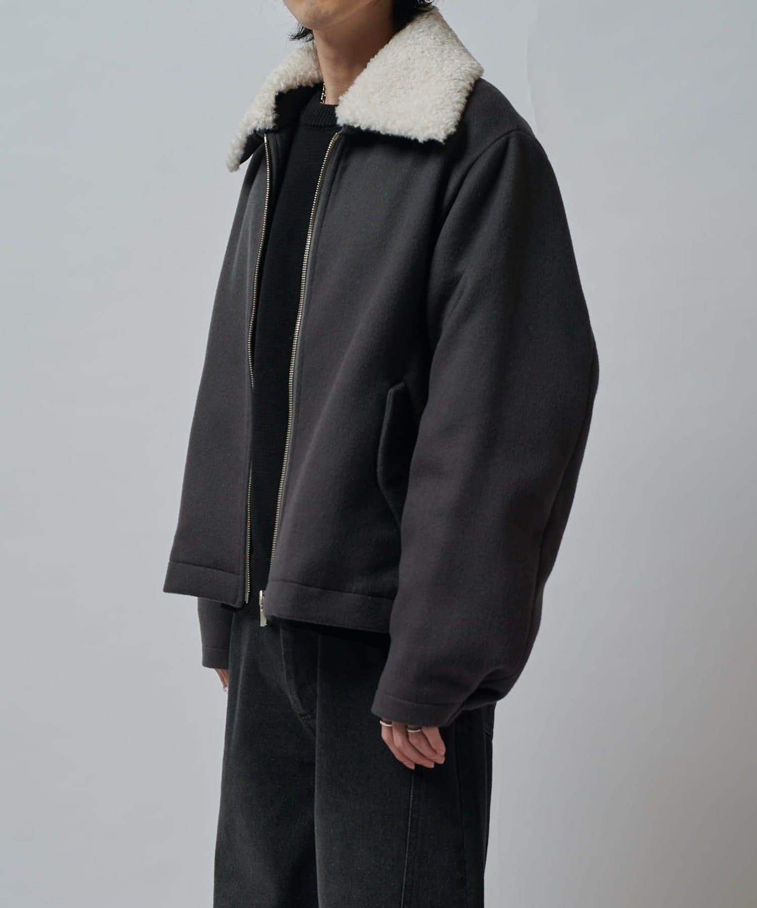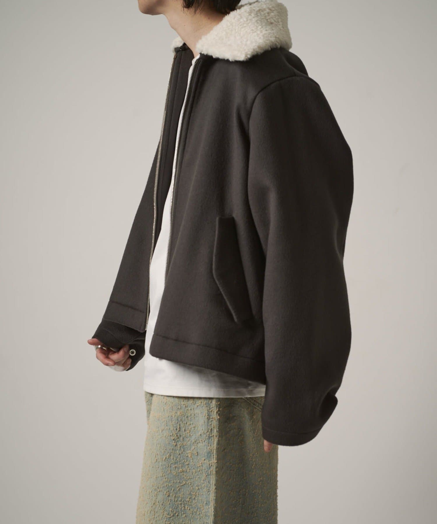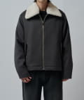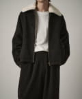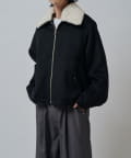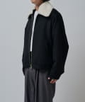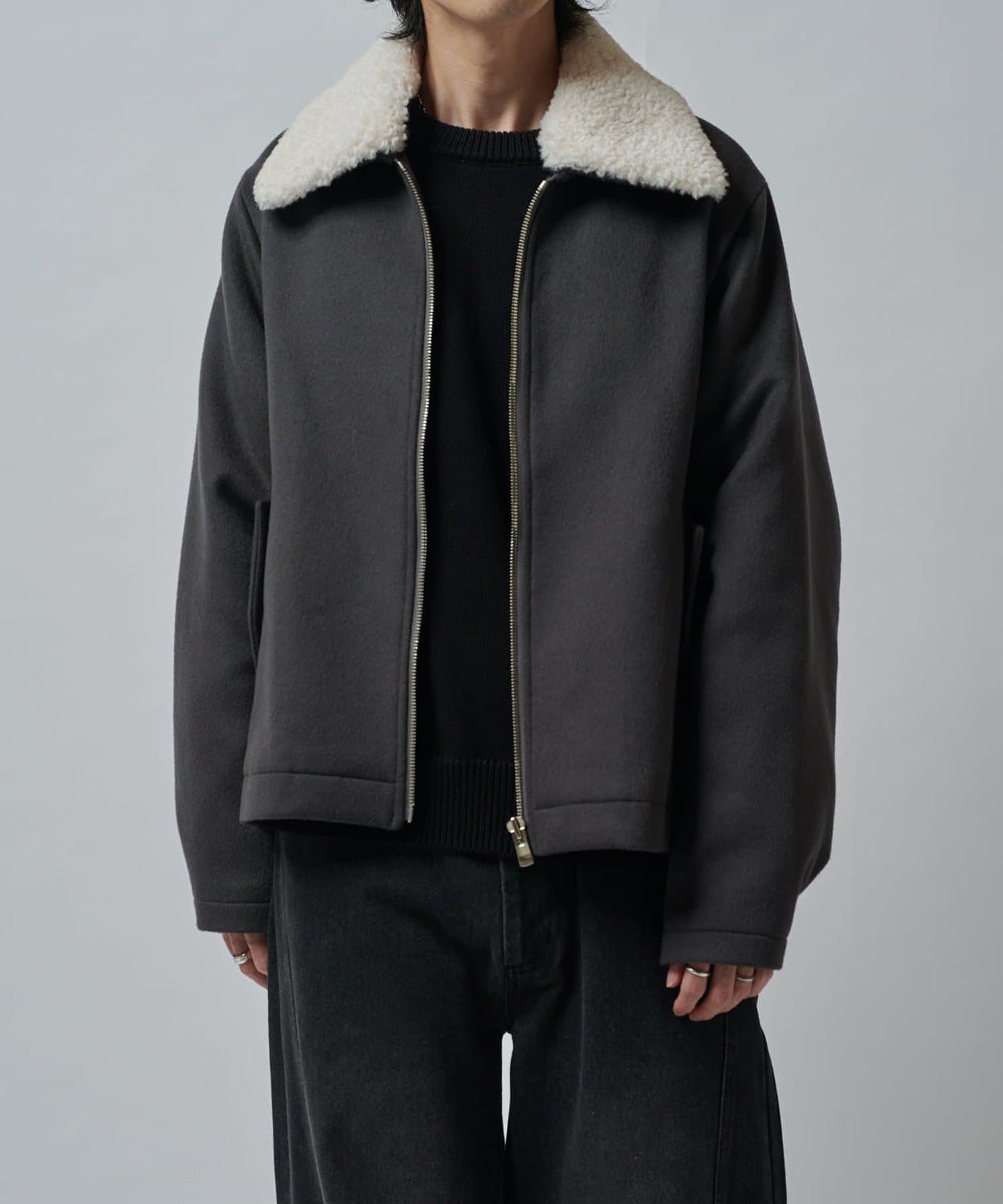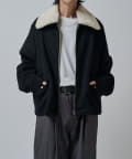 襟のボアが特徴的なブルゾン。