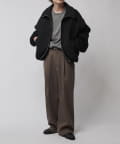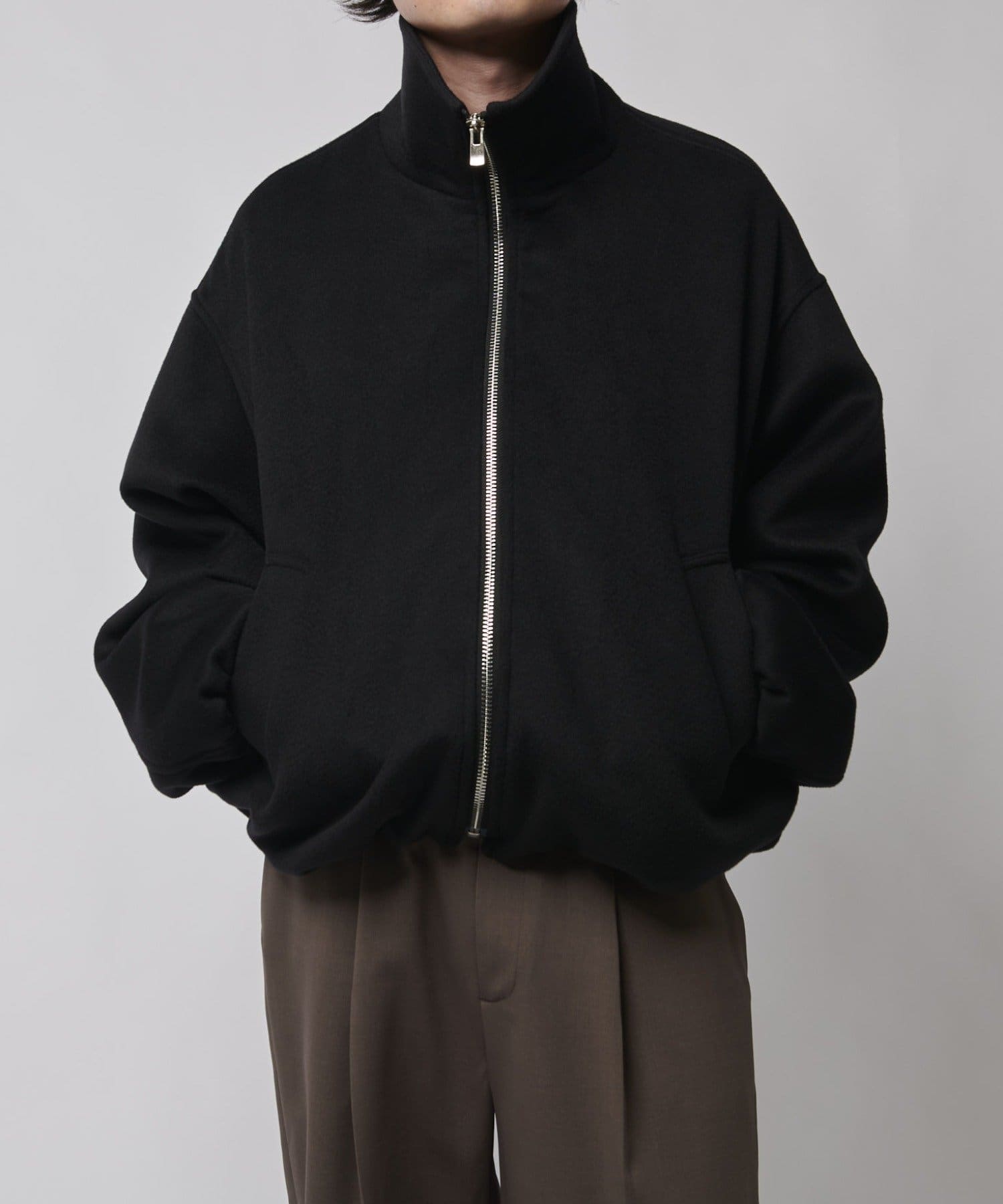 ZIPを上まで閉めるとスタンドになりモードな印象に、襟部分まで下げるとカジュアルな印象に。