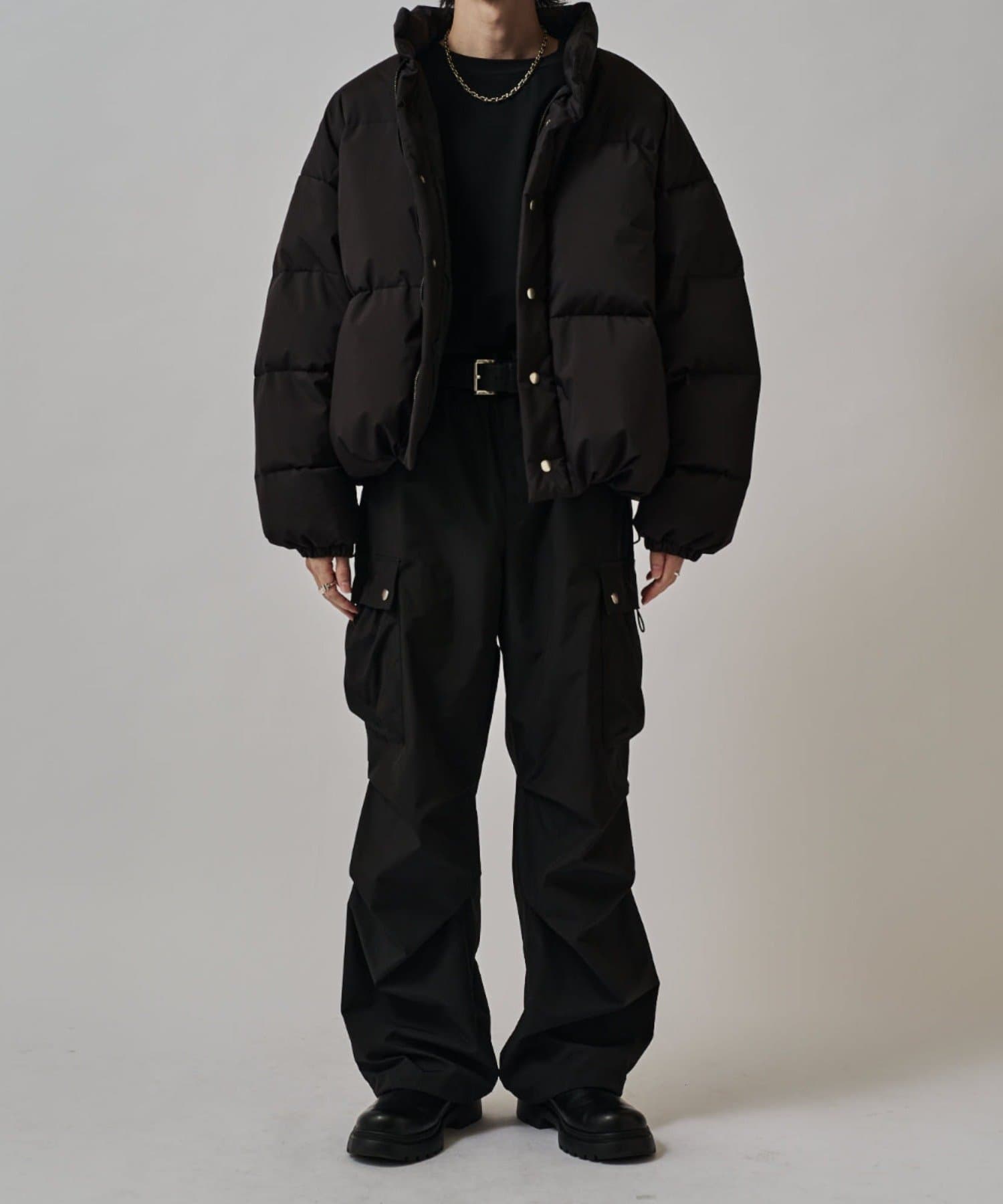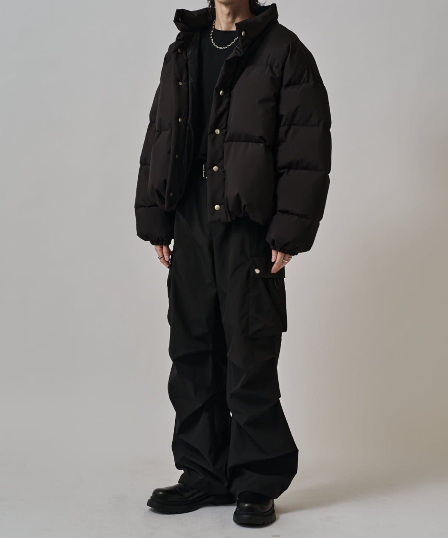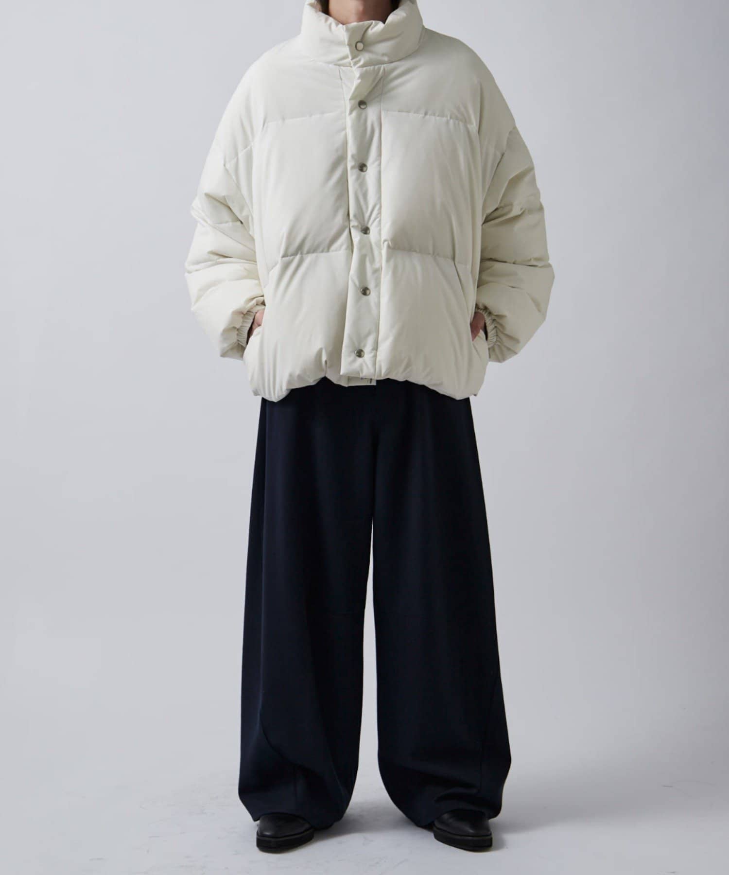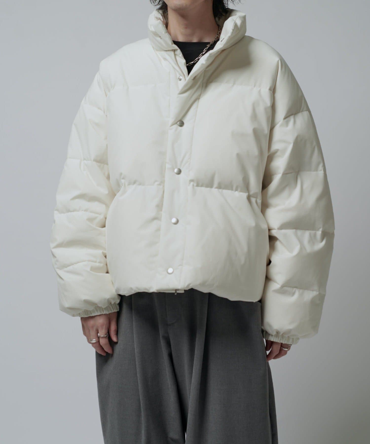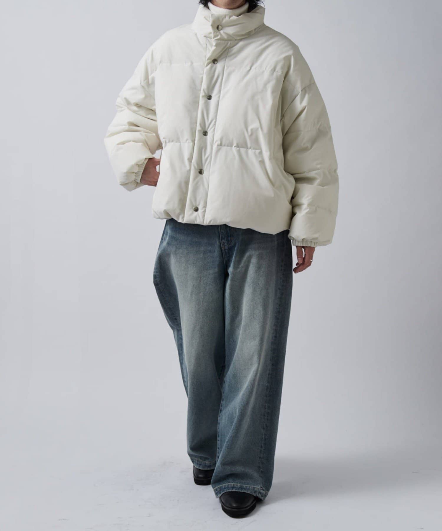 ショート丈のシルエットが特徴的なこちらのダウンジャケット。着丈に対して身幅をやや広くとった、ややルーズなシルエット。