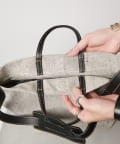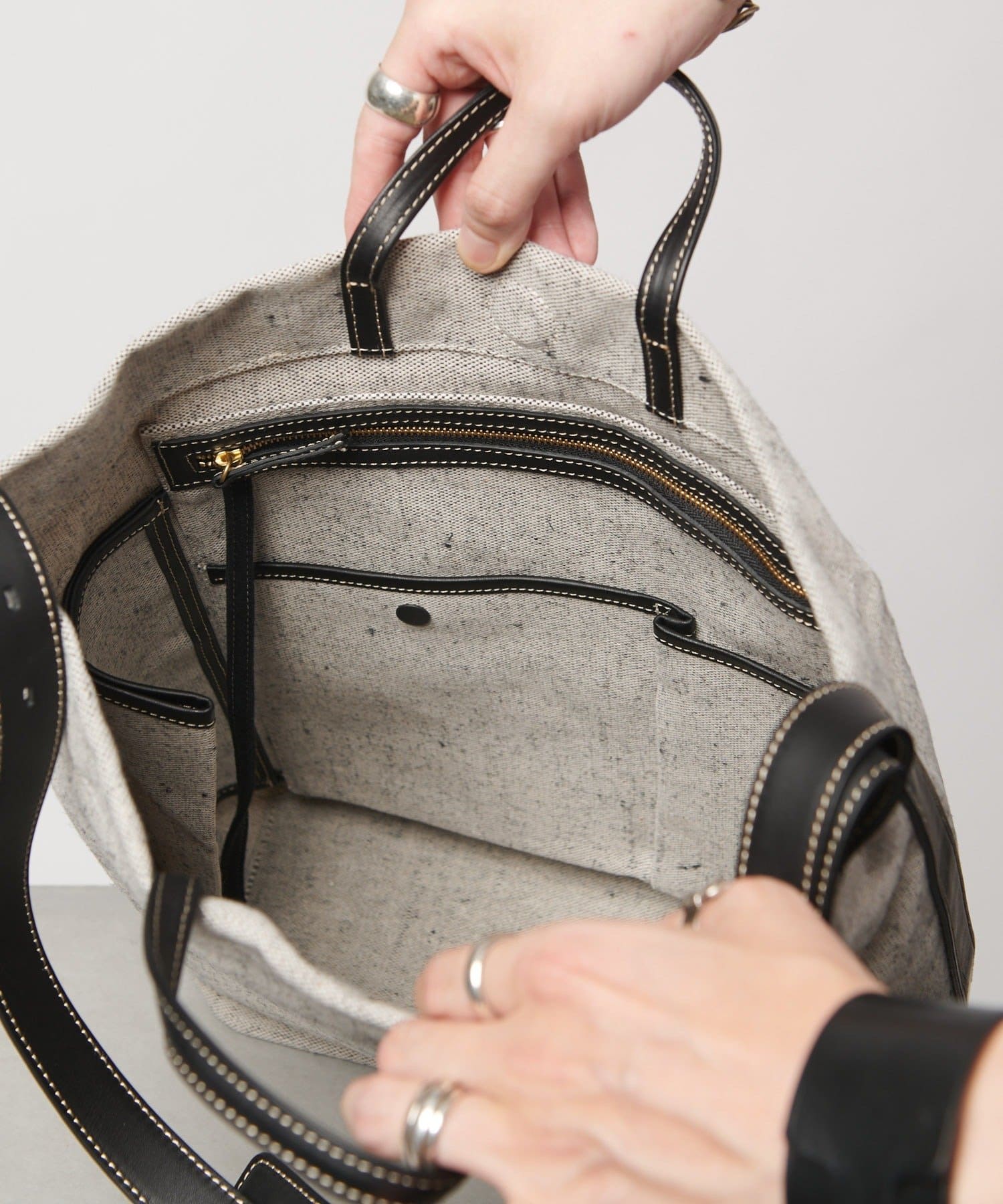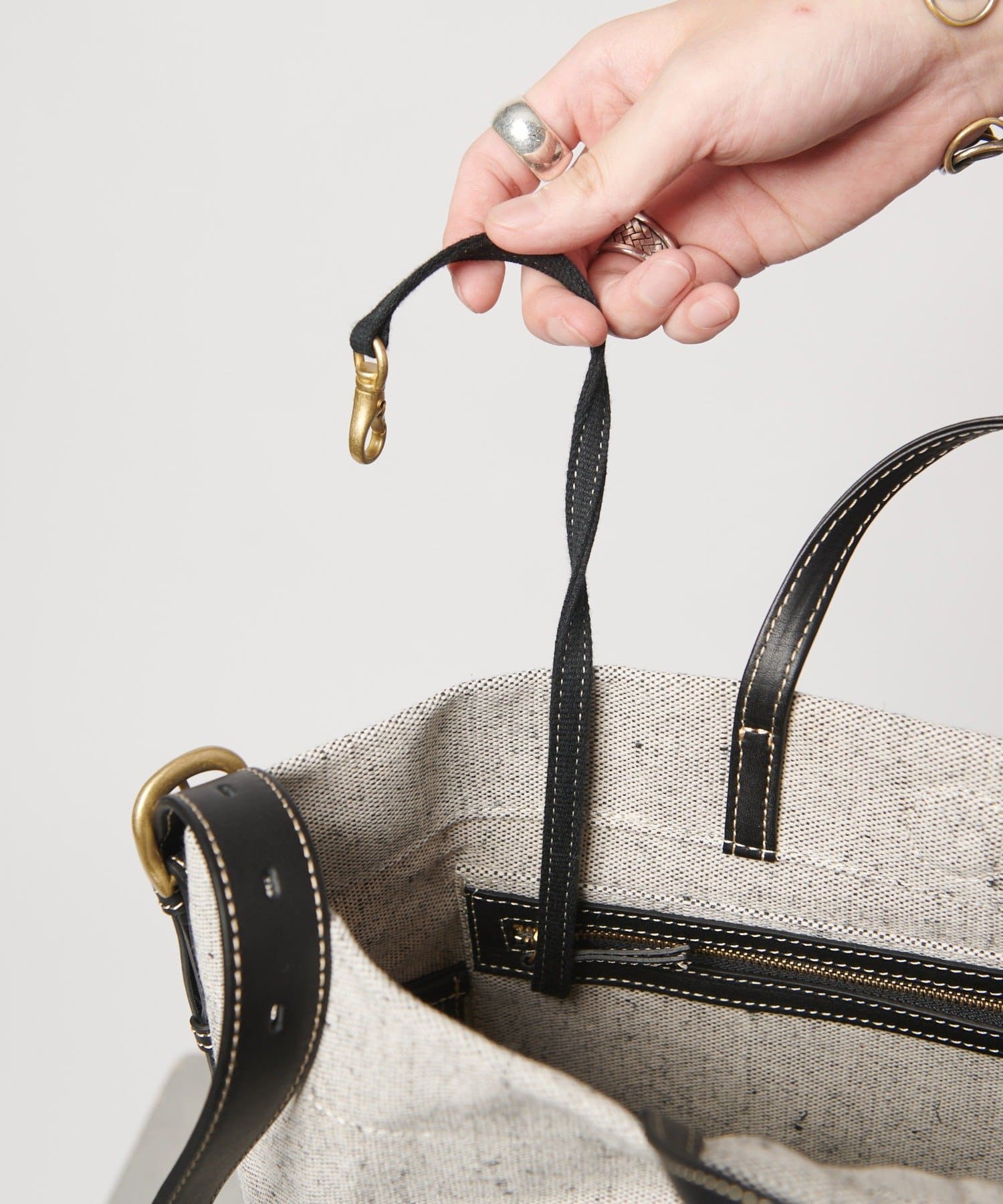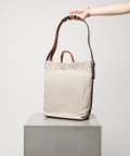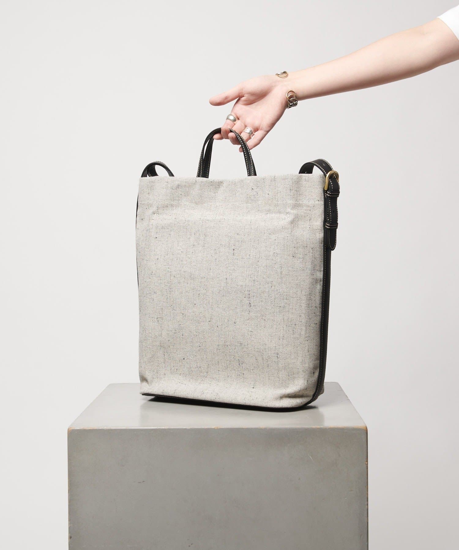 SLOWオリジナルの生地で製作された 2way sd bag 。 縦型にA4サイズを収める事ができる上、収納力がしっかりとあります。 8号頒布クラスの綿とジュートを織り上げ、更にパラフィン加工を施している為、絶妙な雰囲気の生地となっています。 革付属とコンビネーションにする事で軽量かつ上品で、クラシカルな仕上がりとなっています。