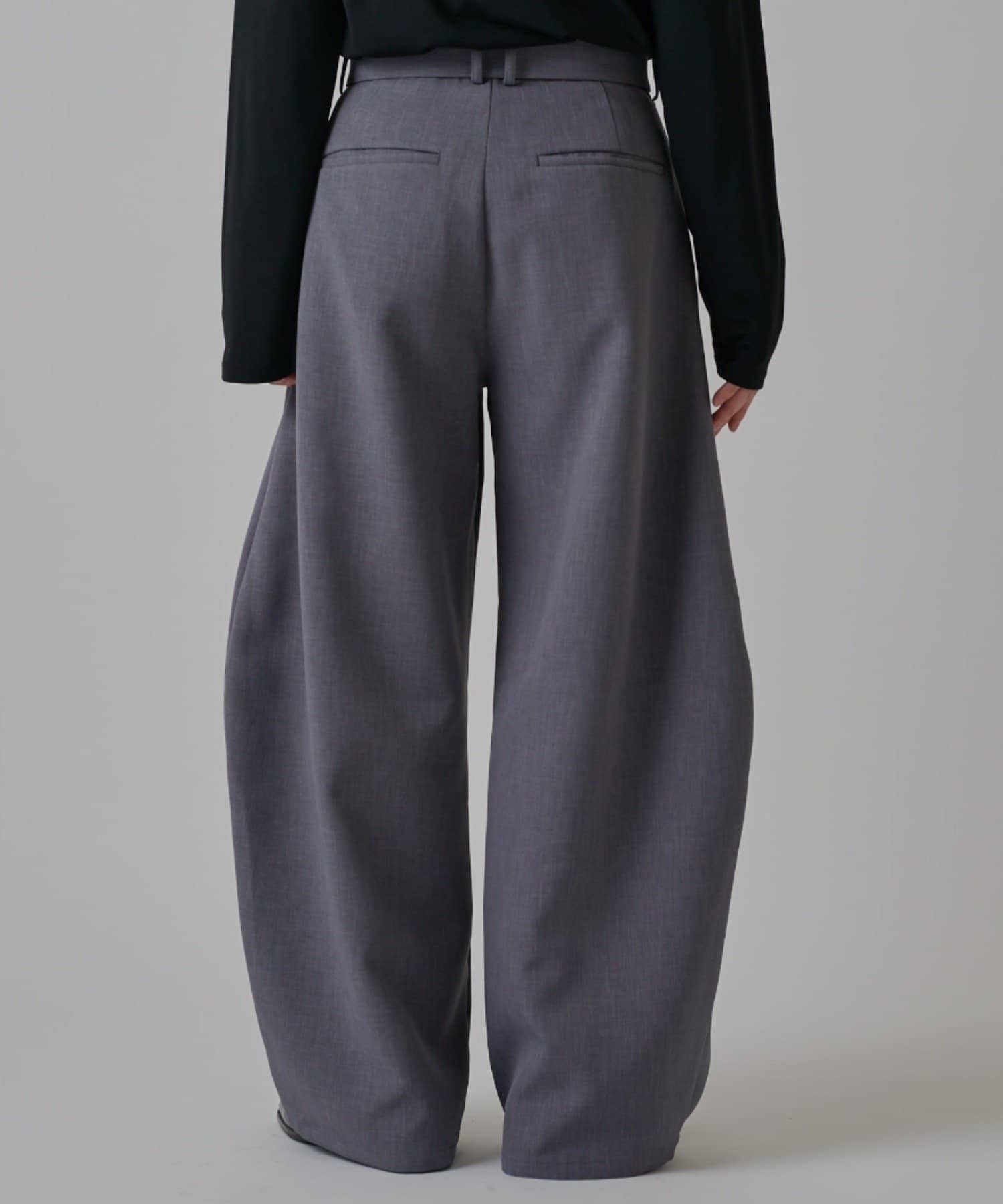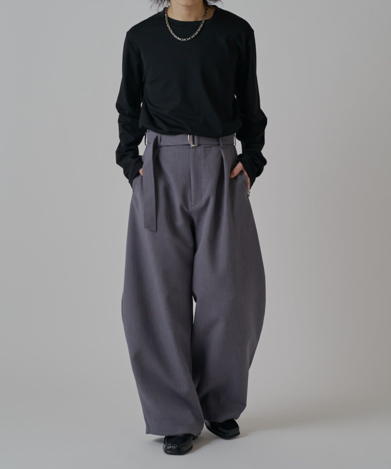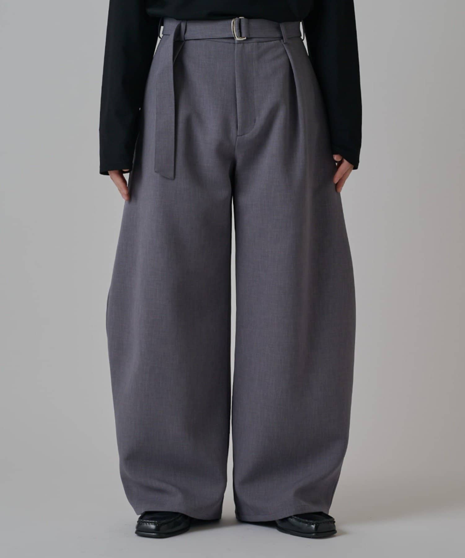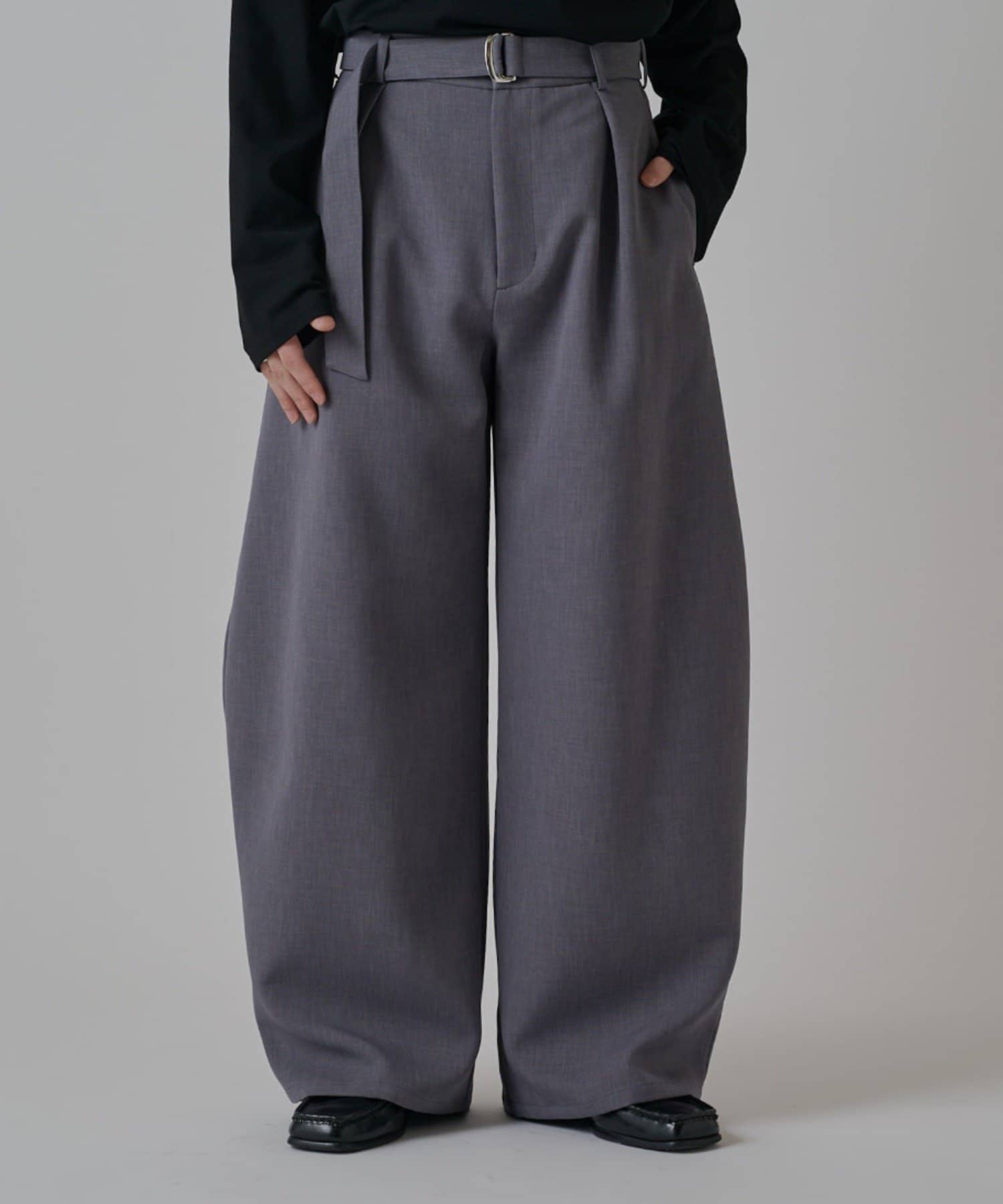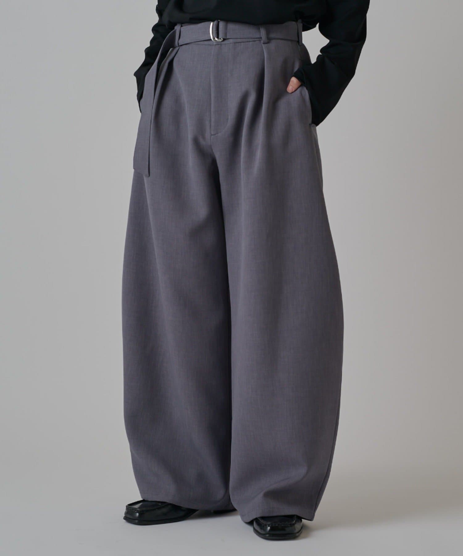「ベルテッドダブルクロスバルーンカーブスラックスパンツ」