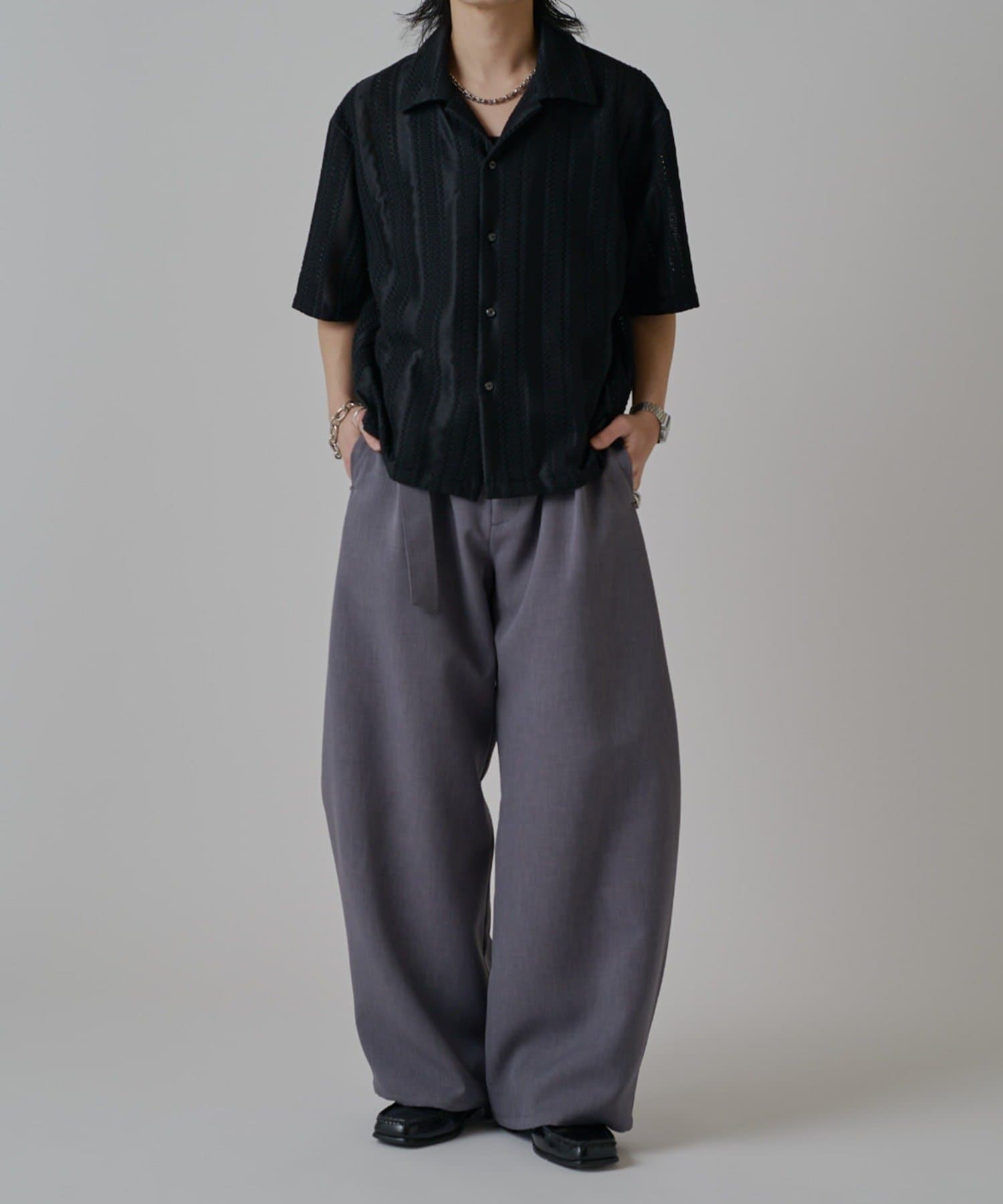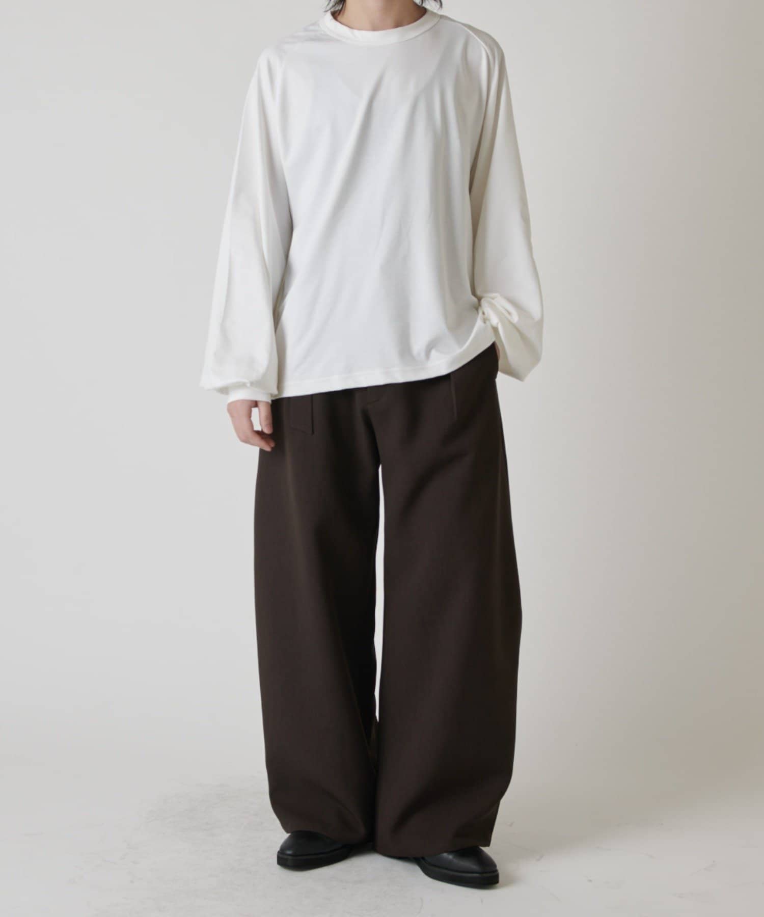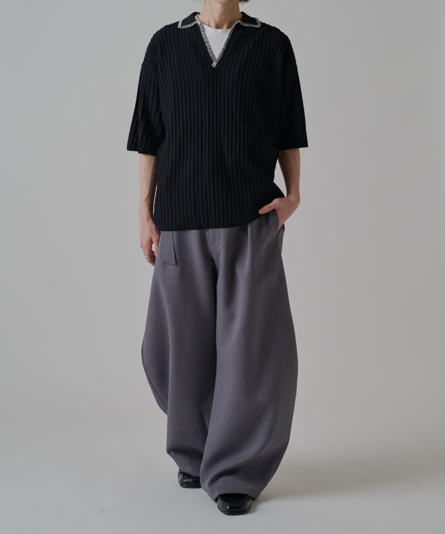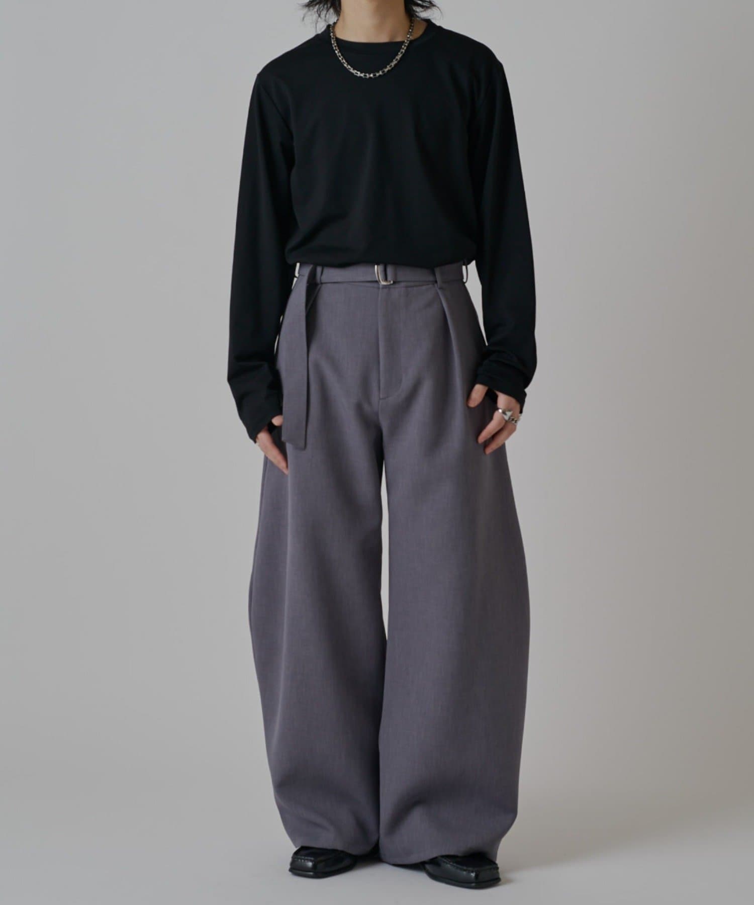 「ベルテッドダブルクロスバルーンカーブスラックスパンツ」