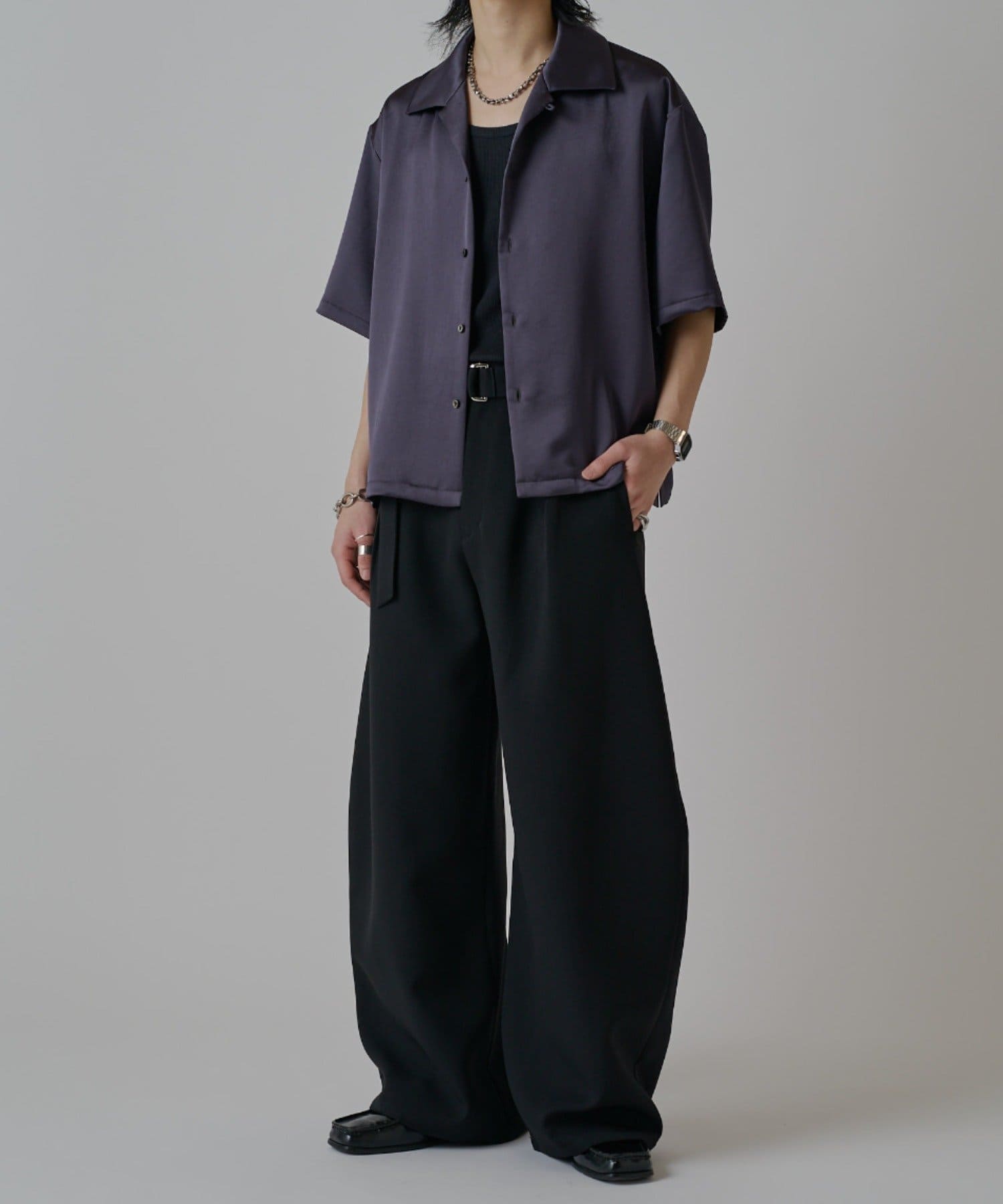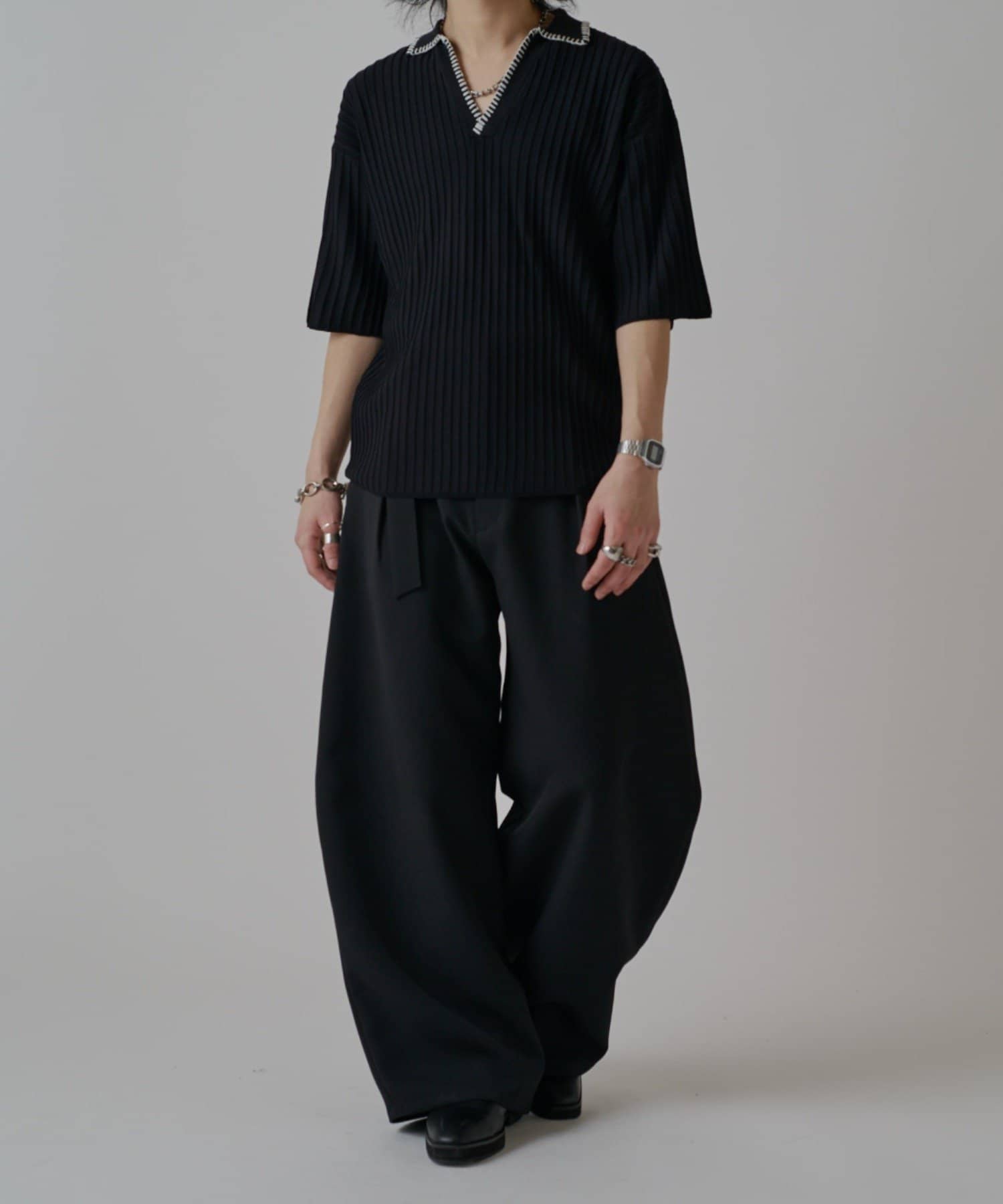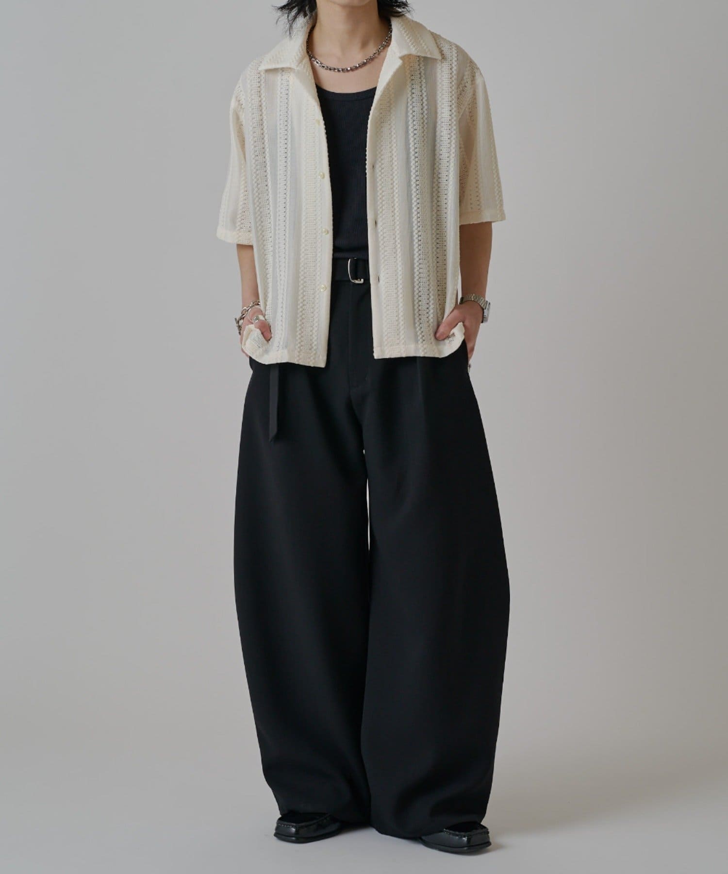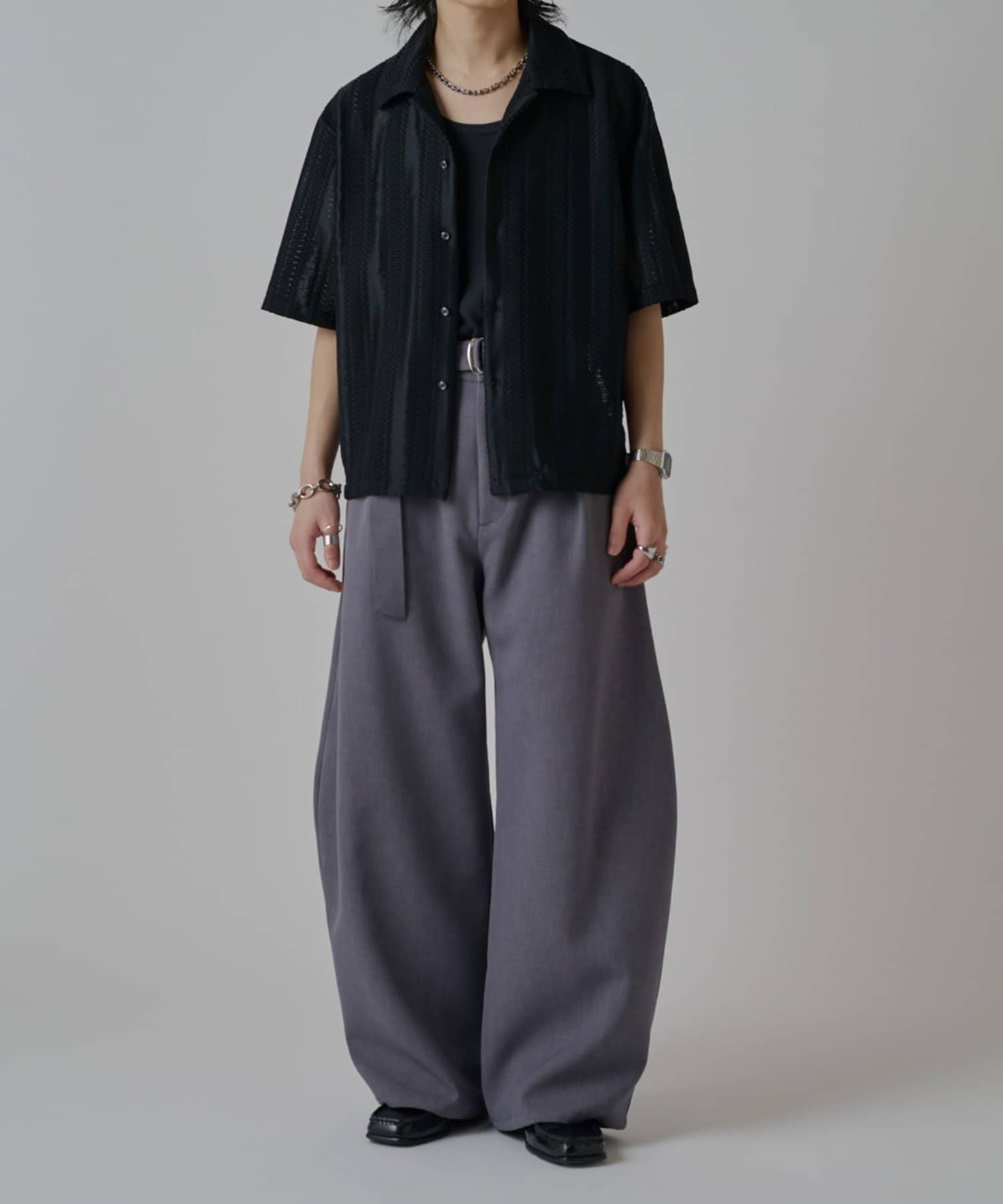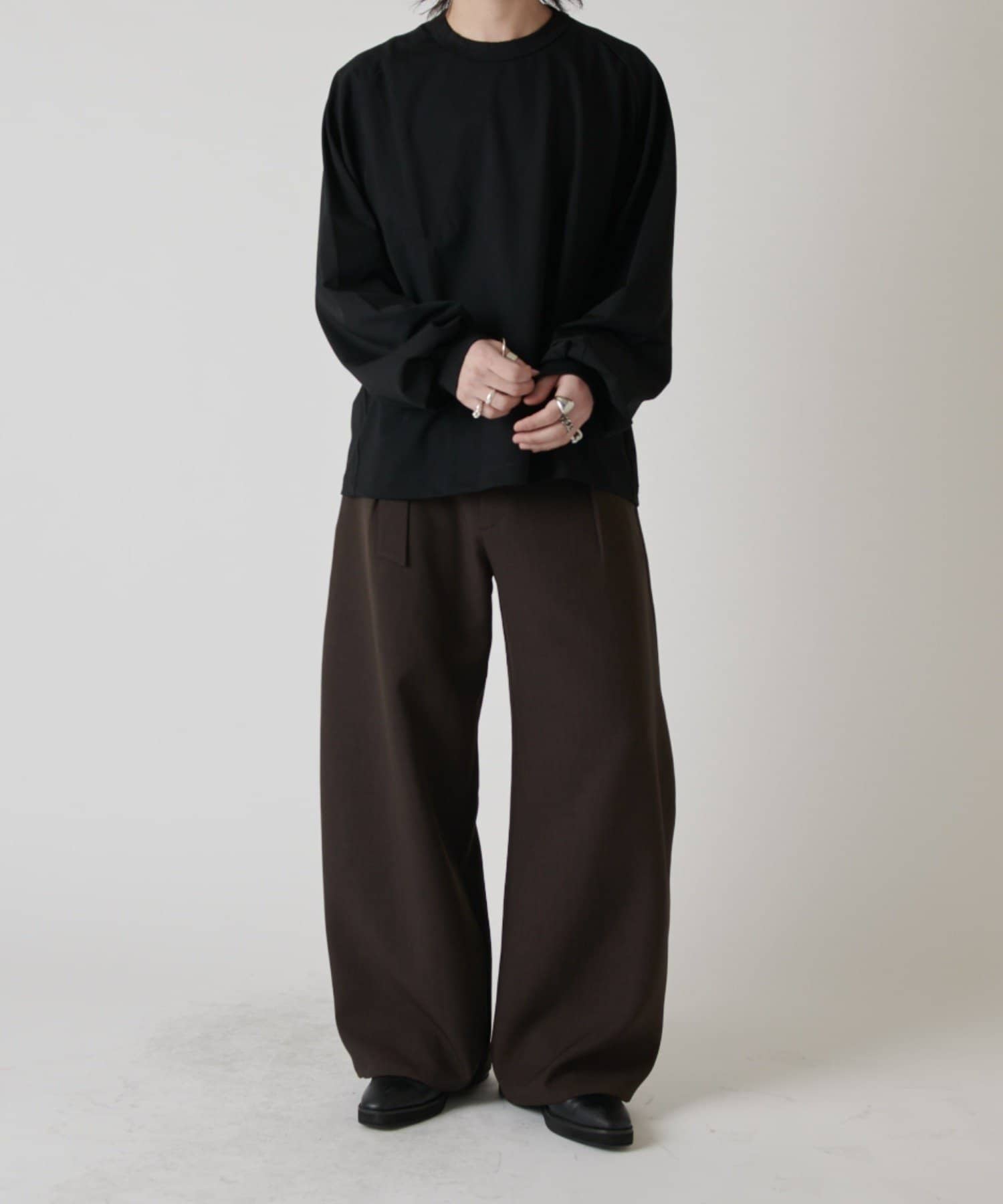「ベルテッドダブルクロスバルーンカーブスラックスパンツ」