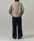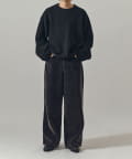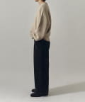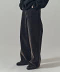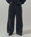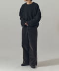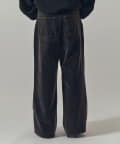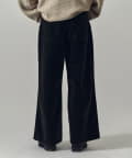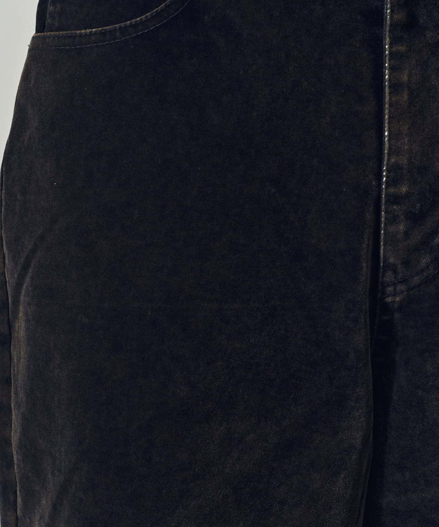 表面感が特徴的なこちらのフロッキーデニム。ウエストからストンと落ちるワイドシルエット。デニムの表面にフロッキー加工を施した珍しい加工のデニム。上品な印象と、デニムを感じさせないキレイめな表情がポイント。アクセントに、裾には擦れの加工を施しております。