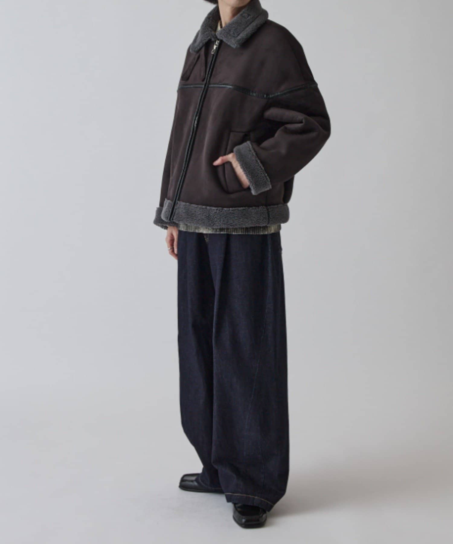 通常のムートンブルゾンよりも身幅をとっているので、ざくっと大きく着て頂けます。