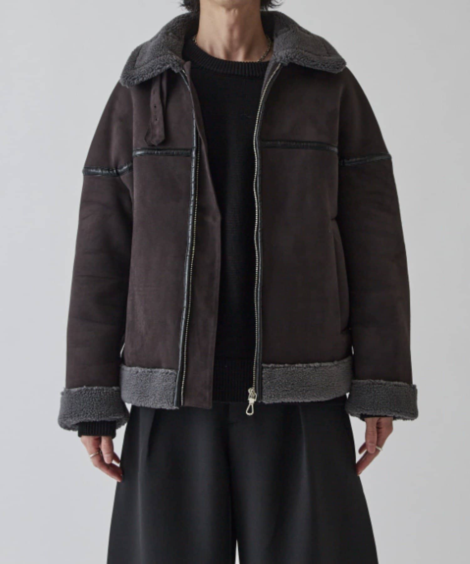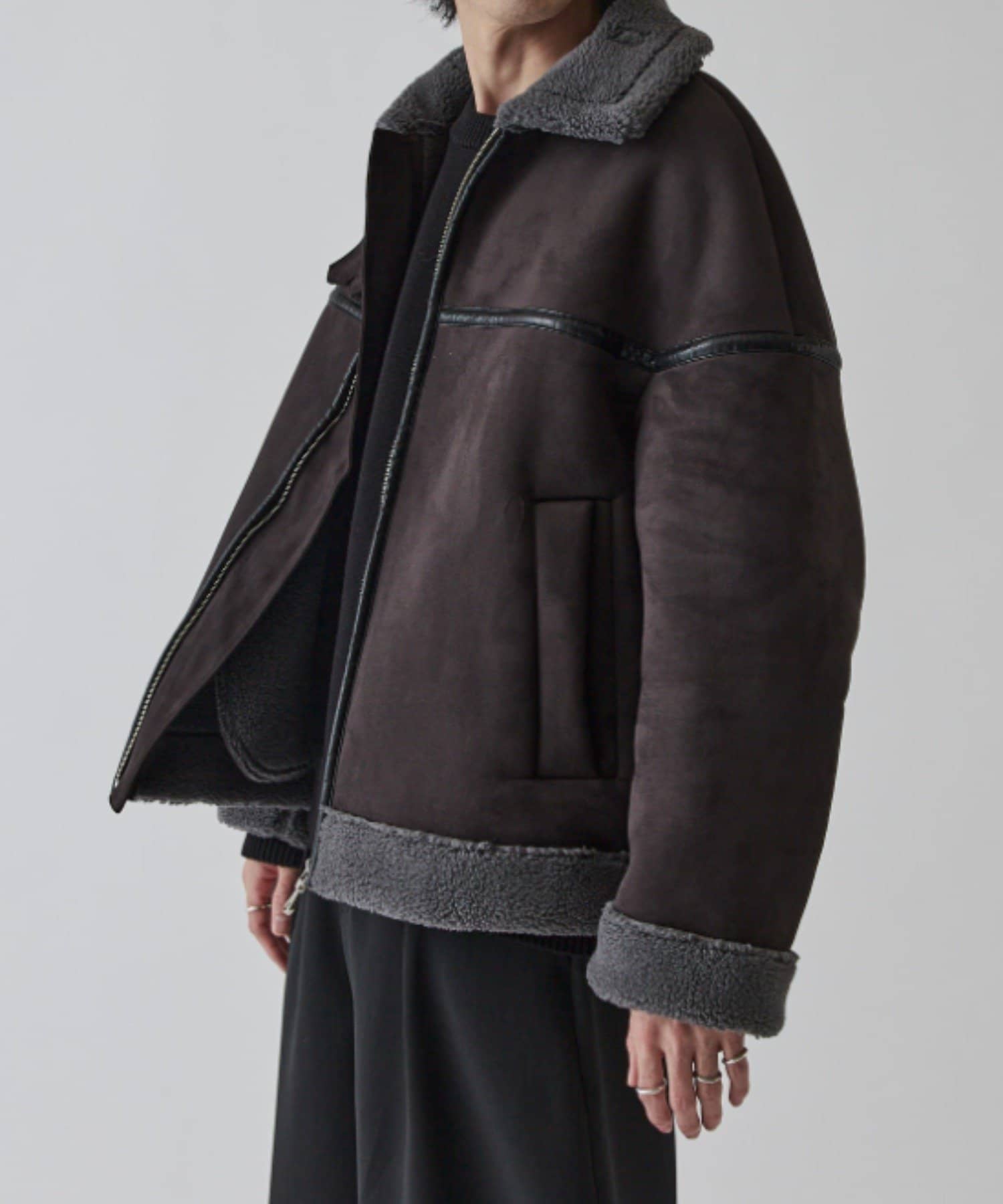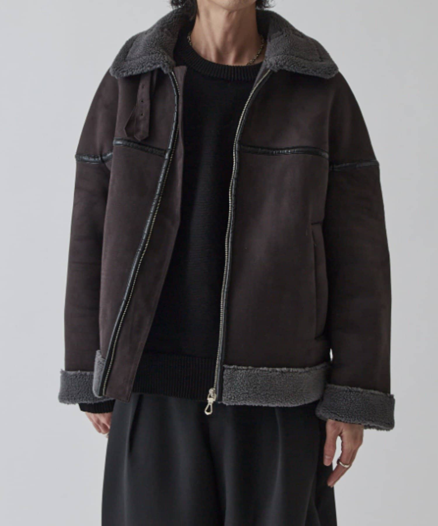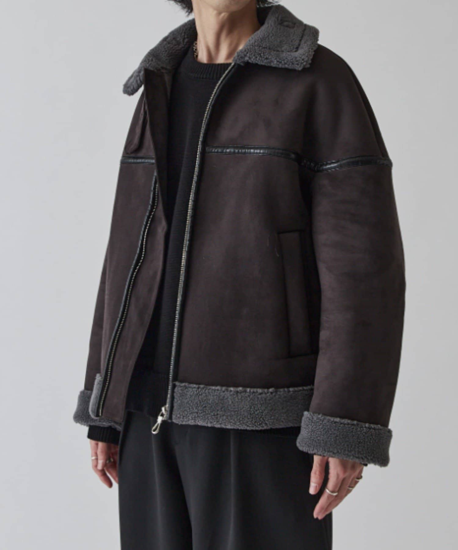 オーバーサイズなシルエットのフェイクムートンブルゾン。