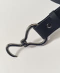 通常のベルトの仕様とは違い編み込んだレザーの間にフックを引っかけて、ウエストを調節するベルトです