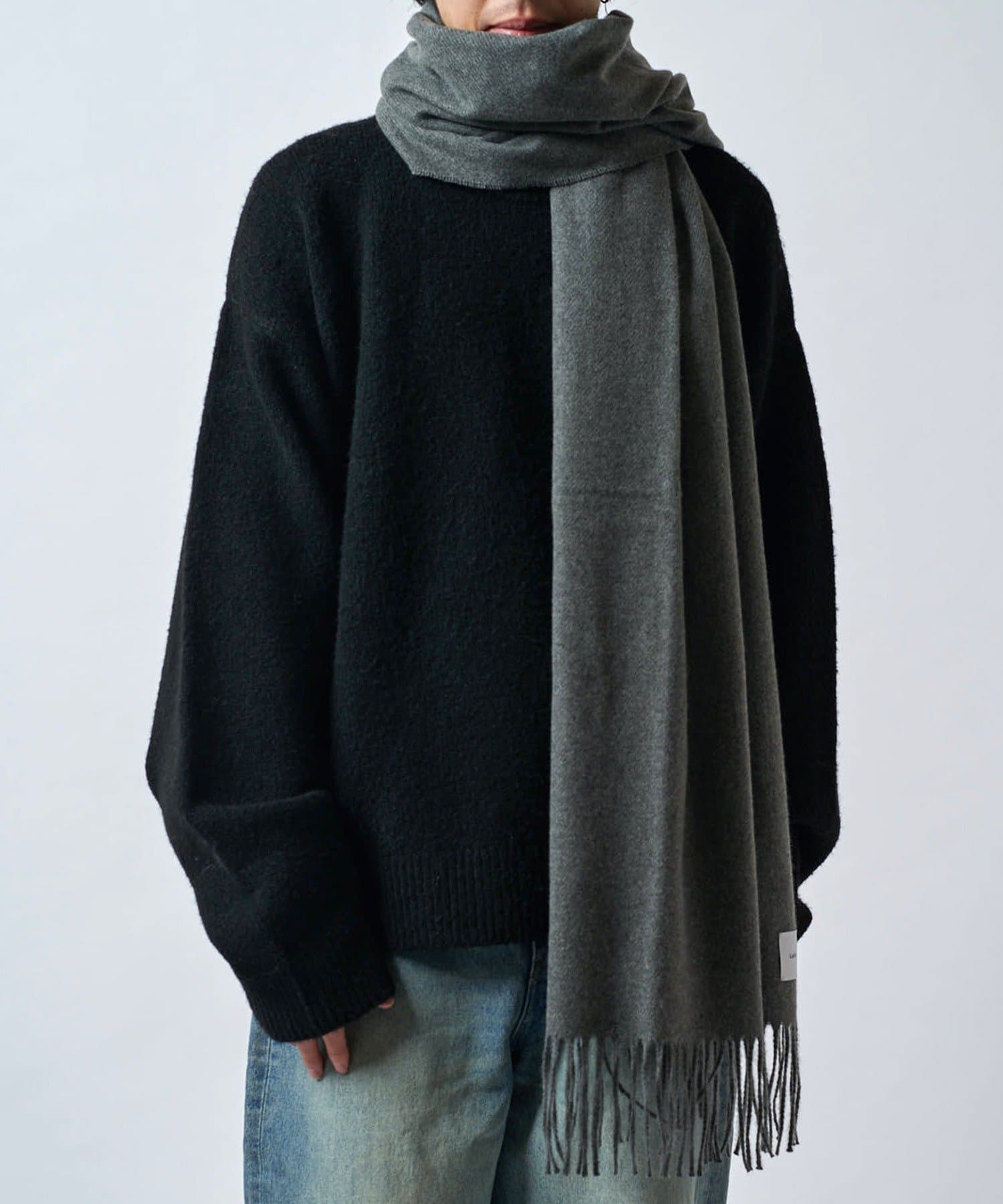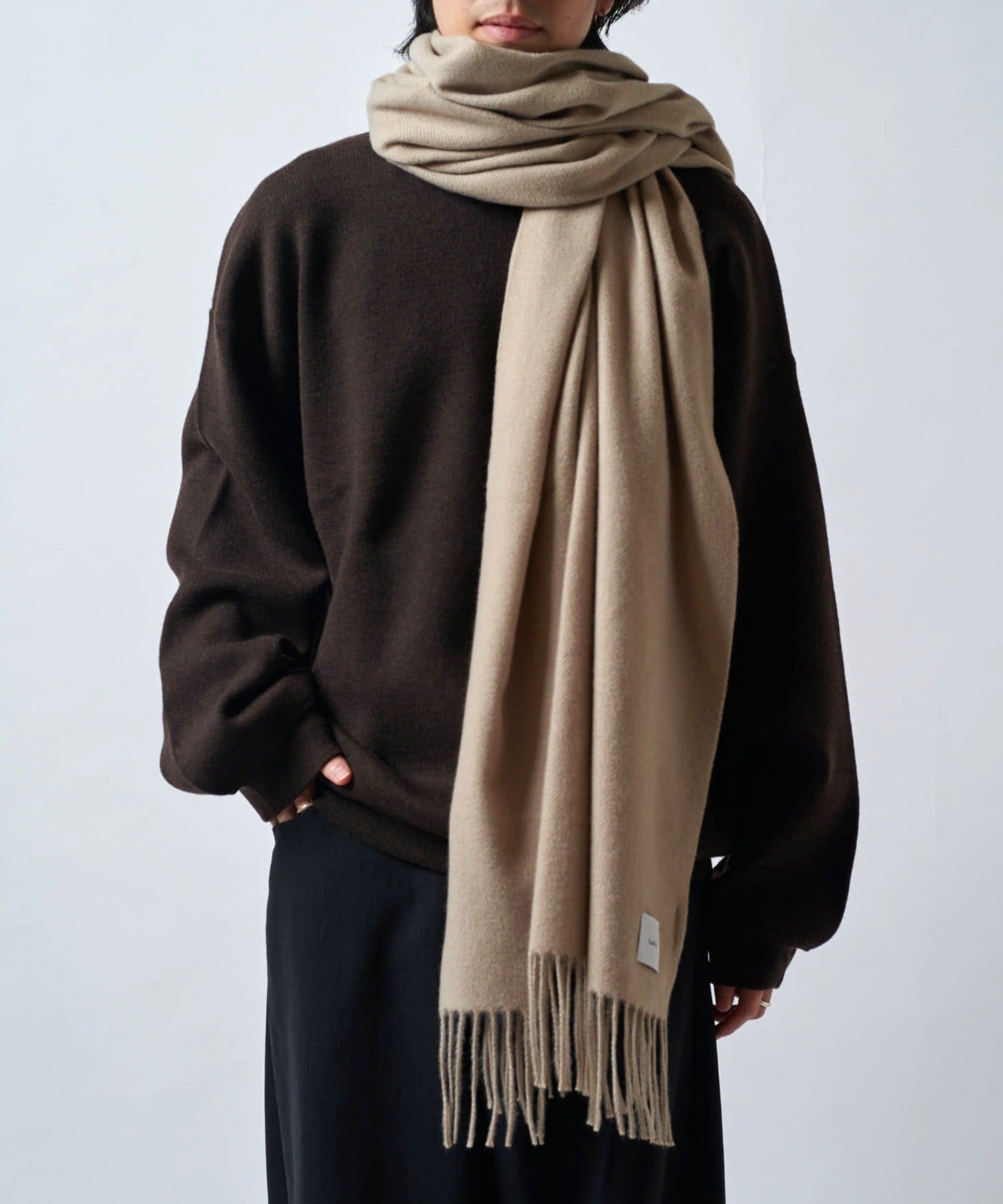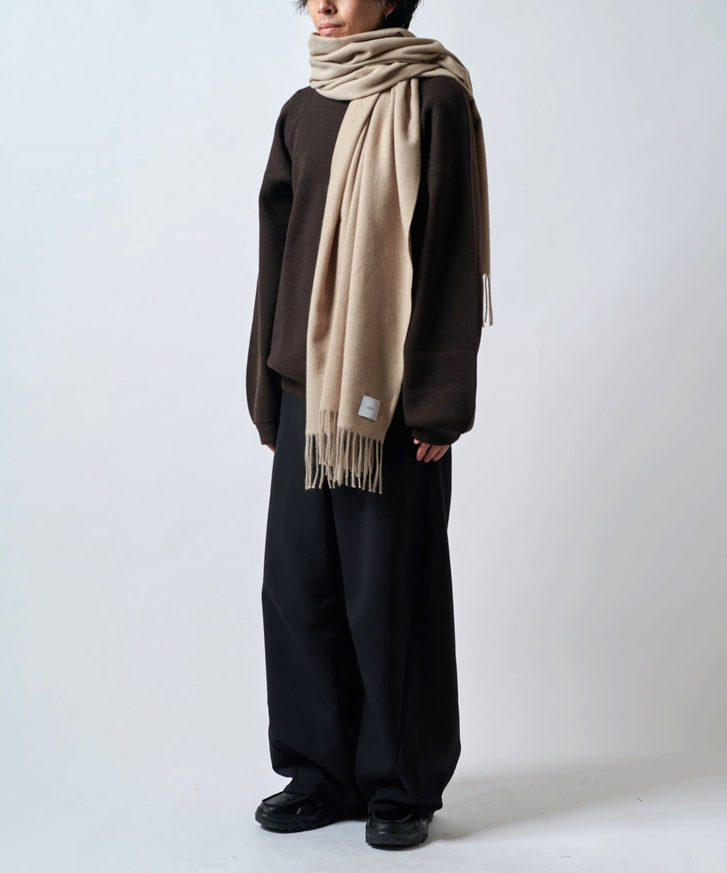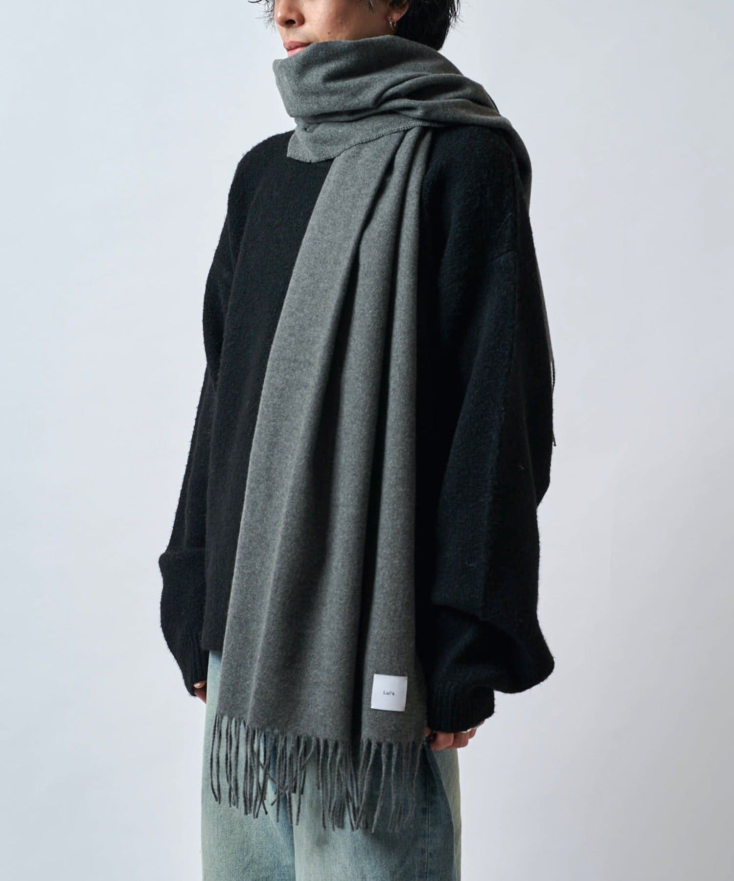 かなりワイドな横幅にロング丈のオーバーサイズマフラー。