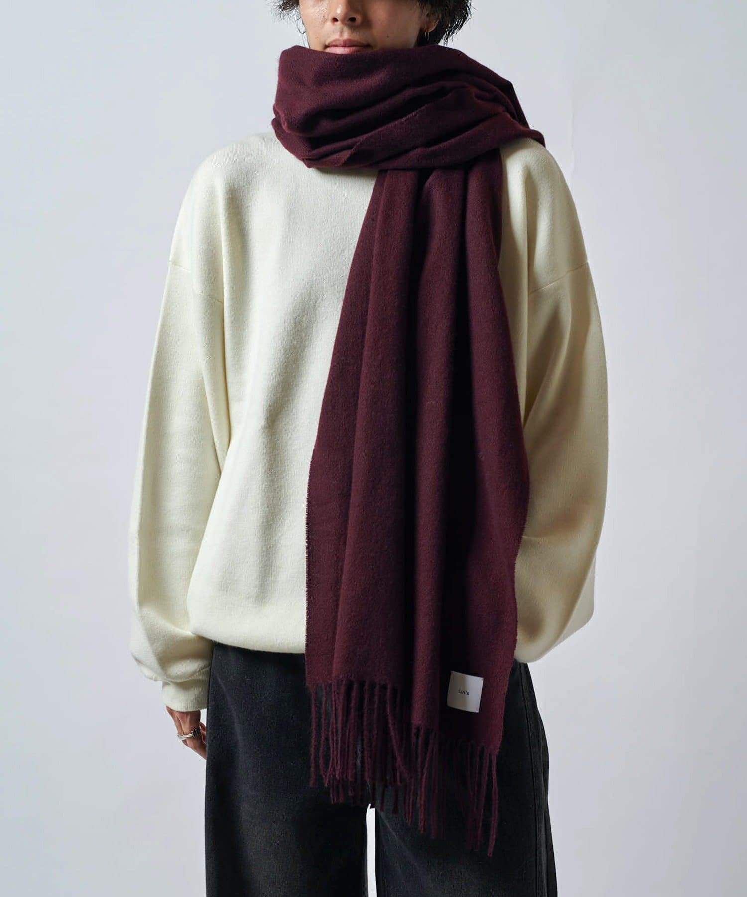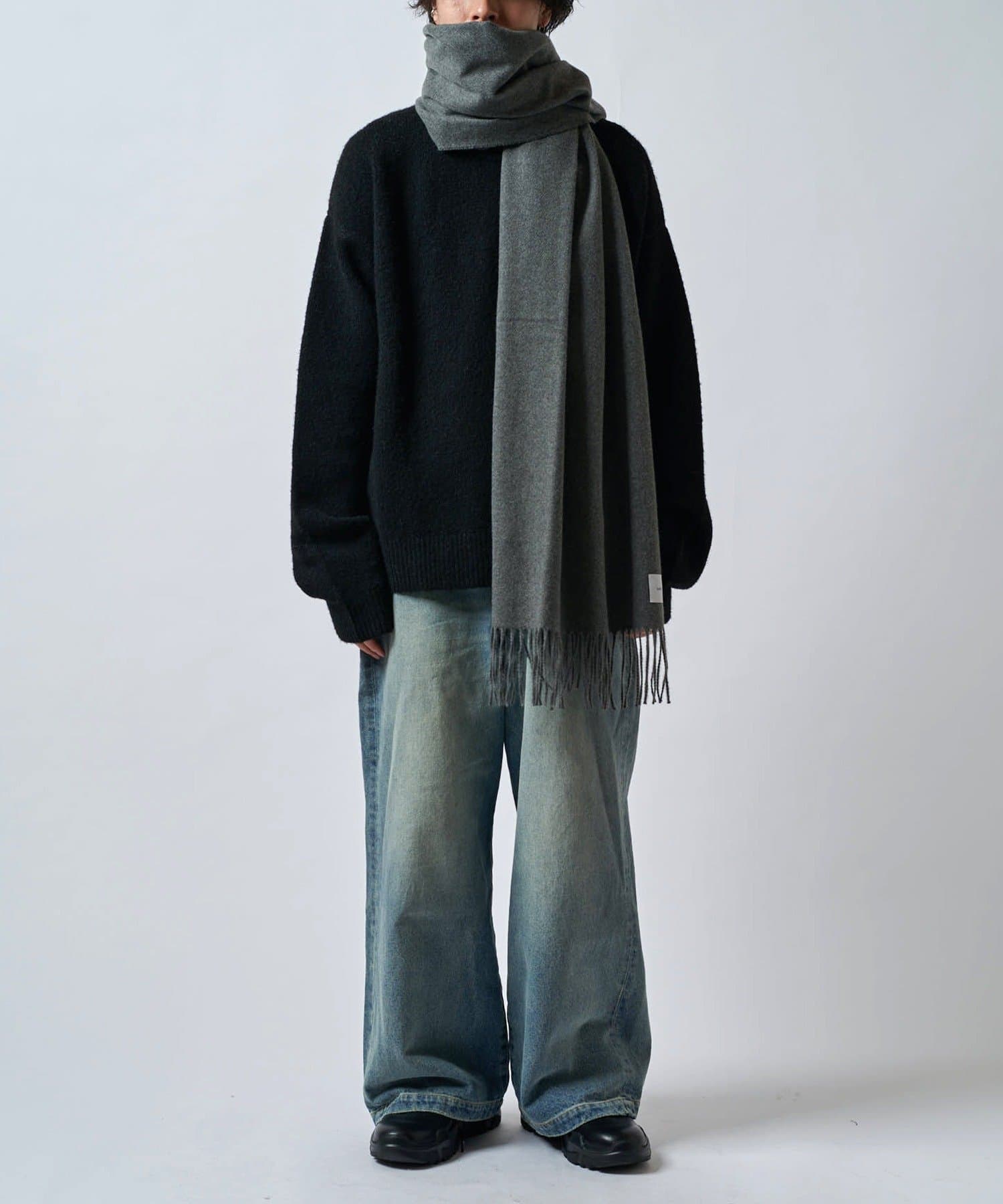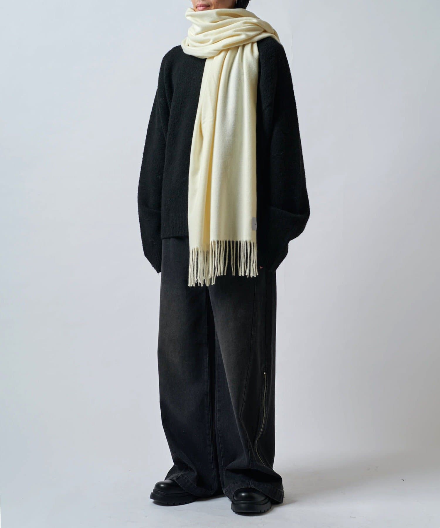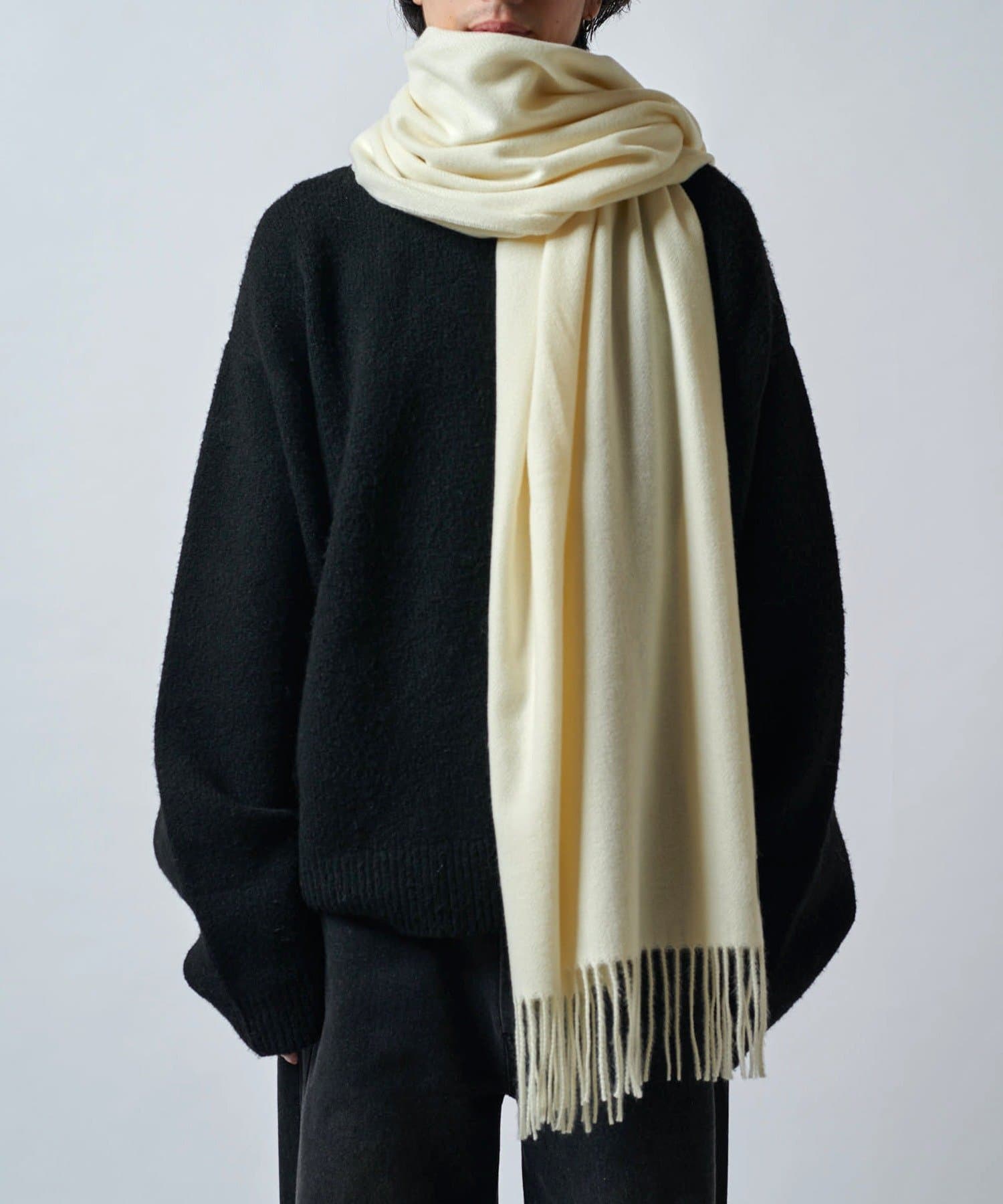 かなりワイドな横幅にロング丈のオーバーサイズマフラー。