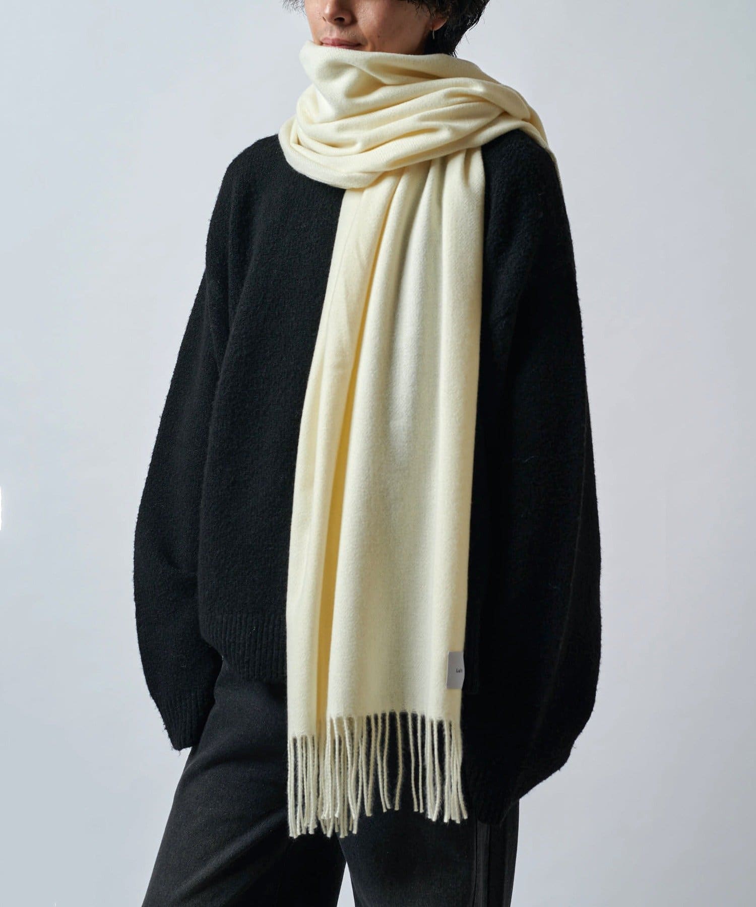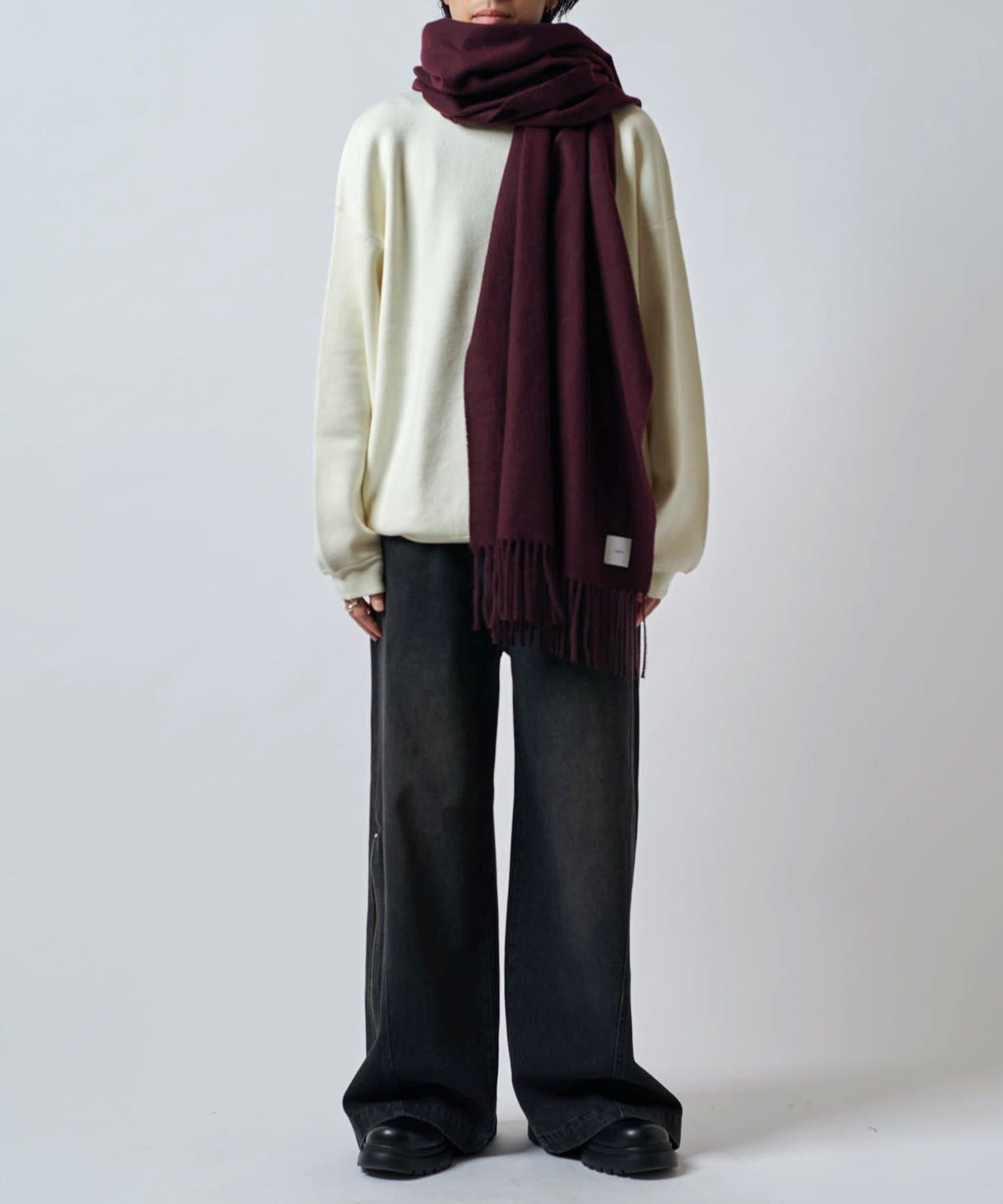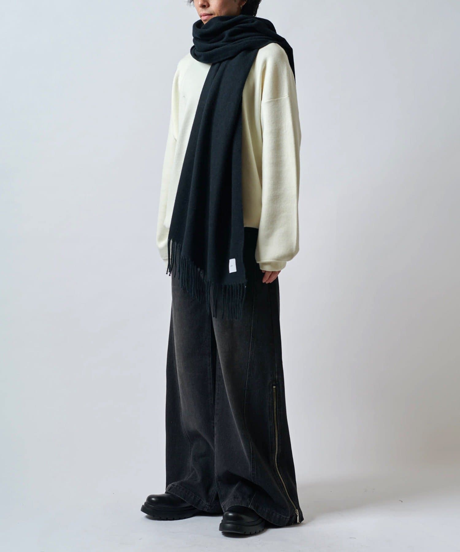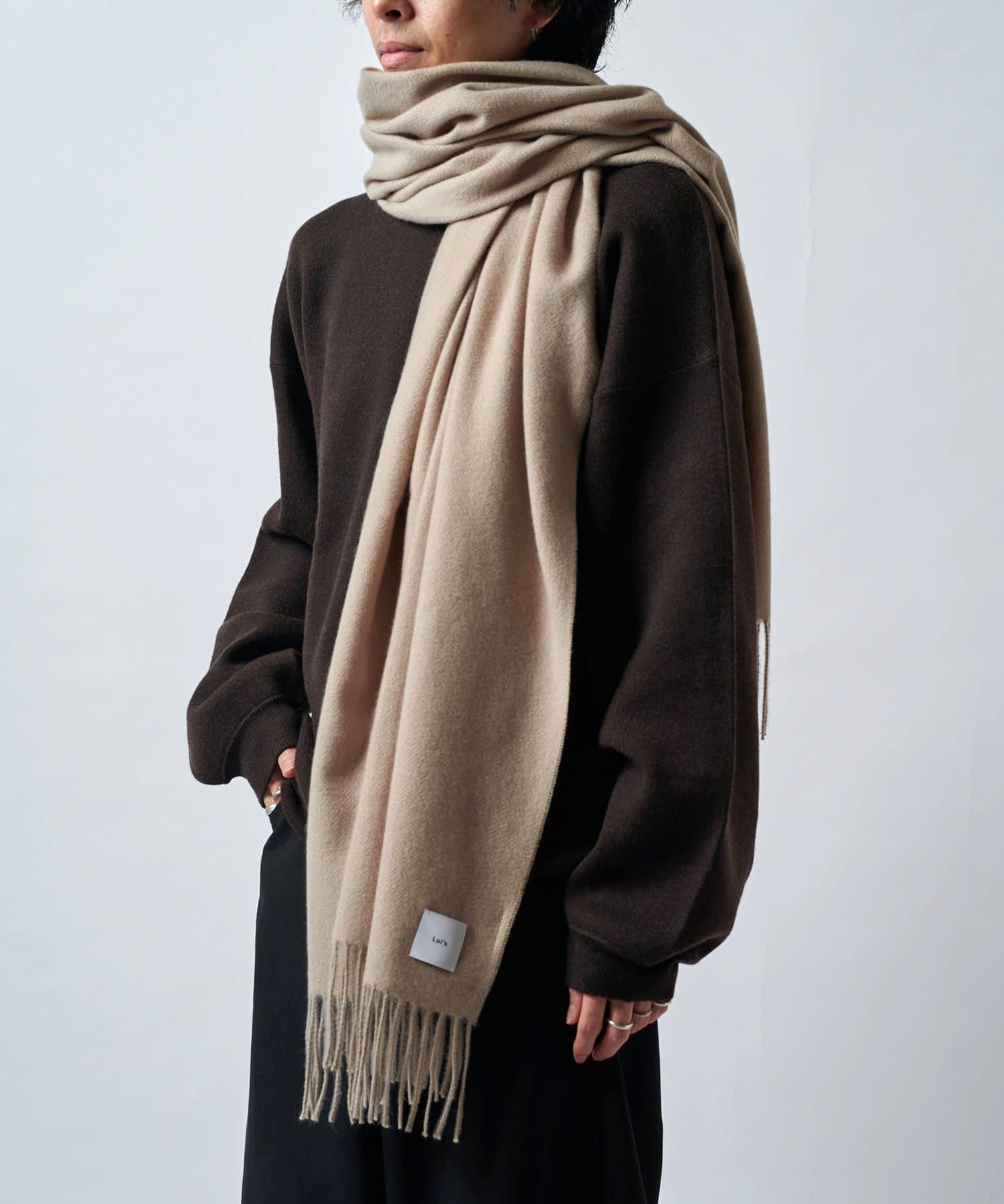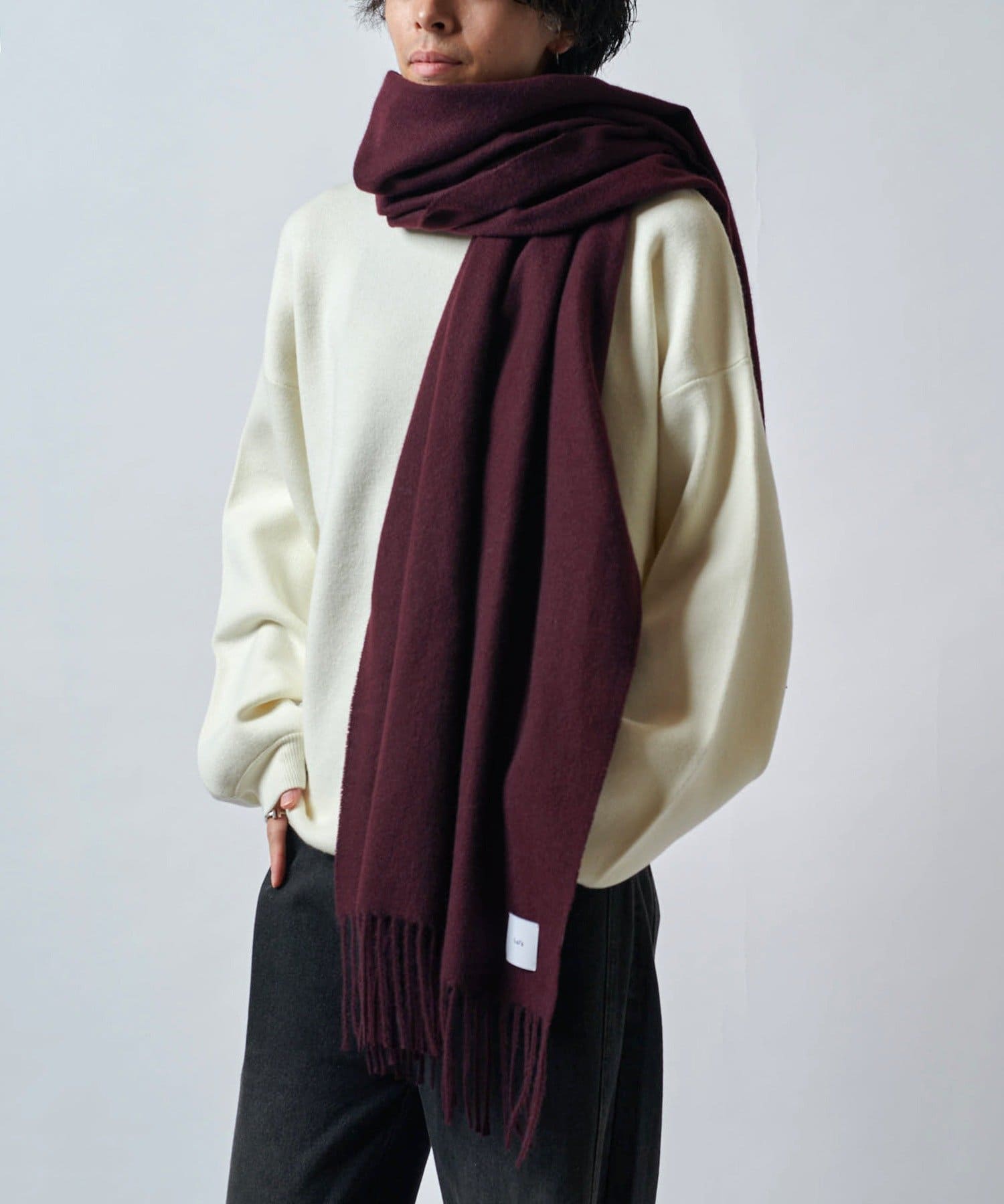 かなりワイドな横幅にロング丈のオーバーサイズマフラー。