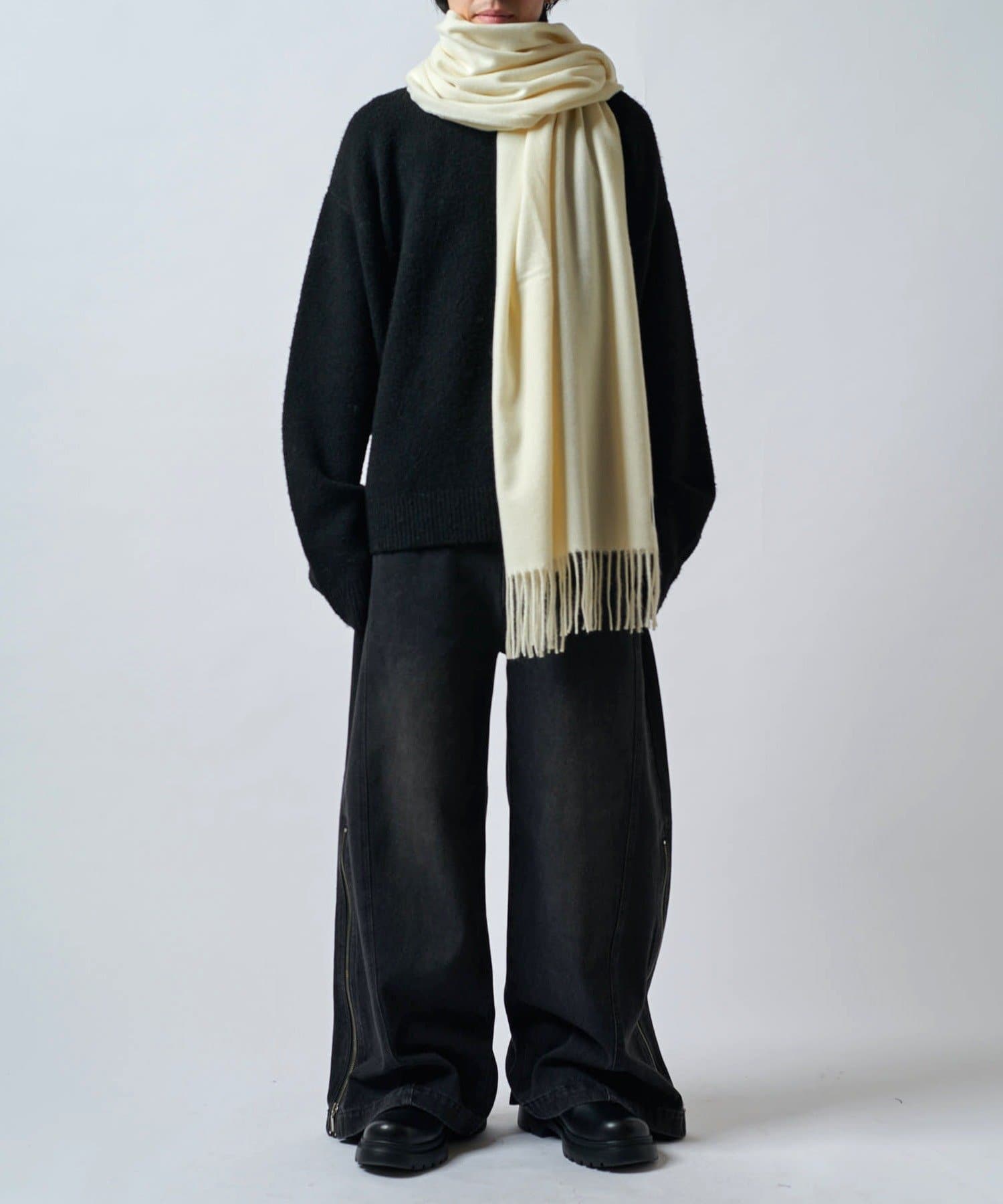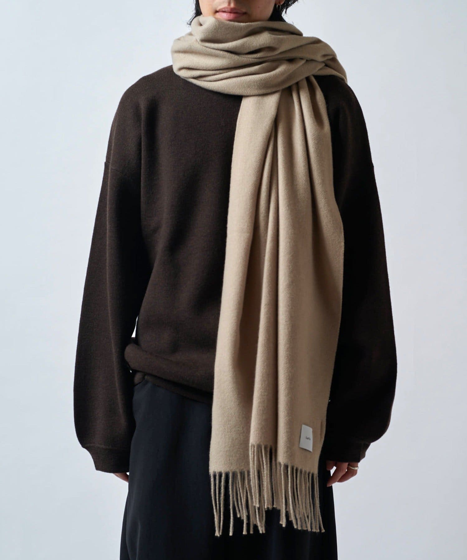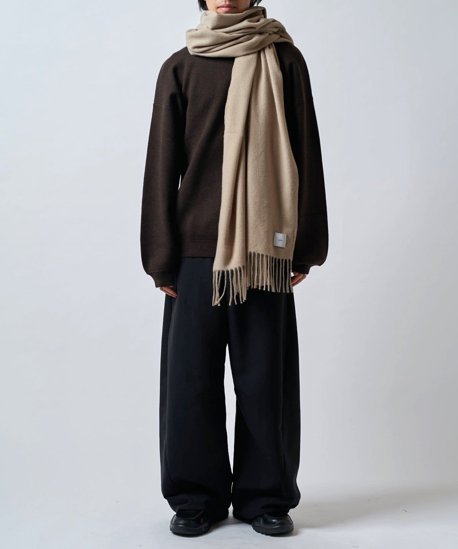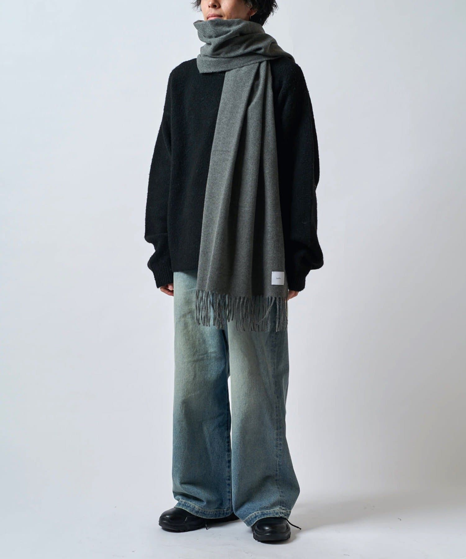かなりワイドな横幅にロング丈のオーバーサイズマフラー。