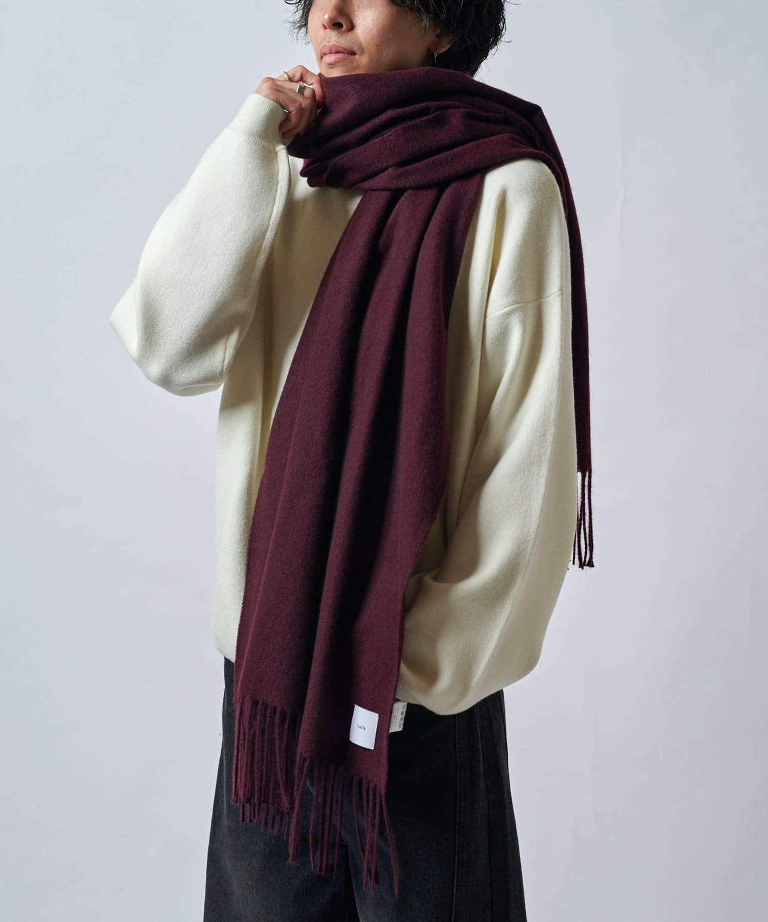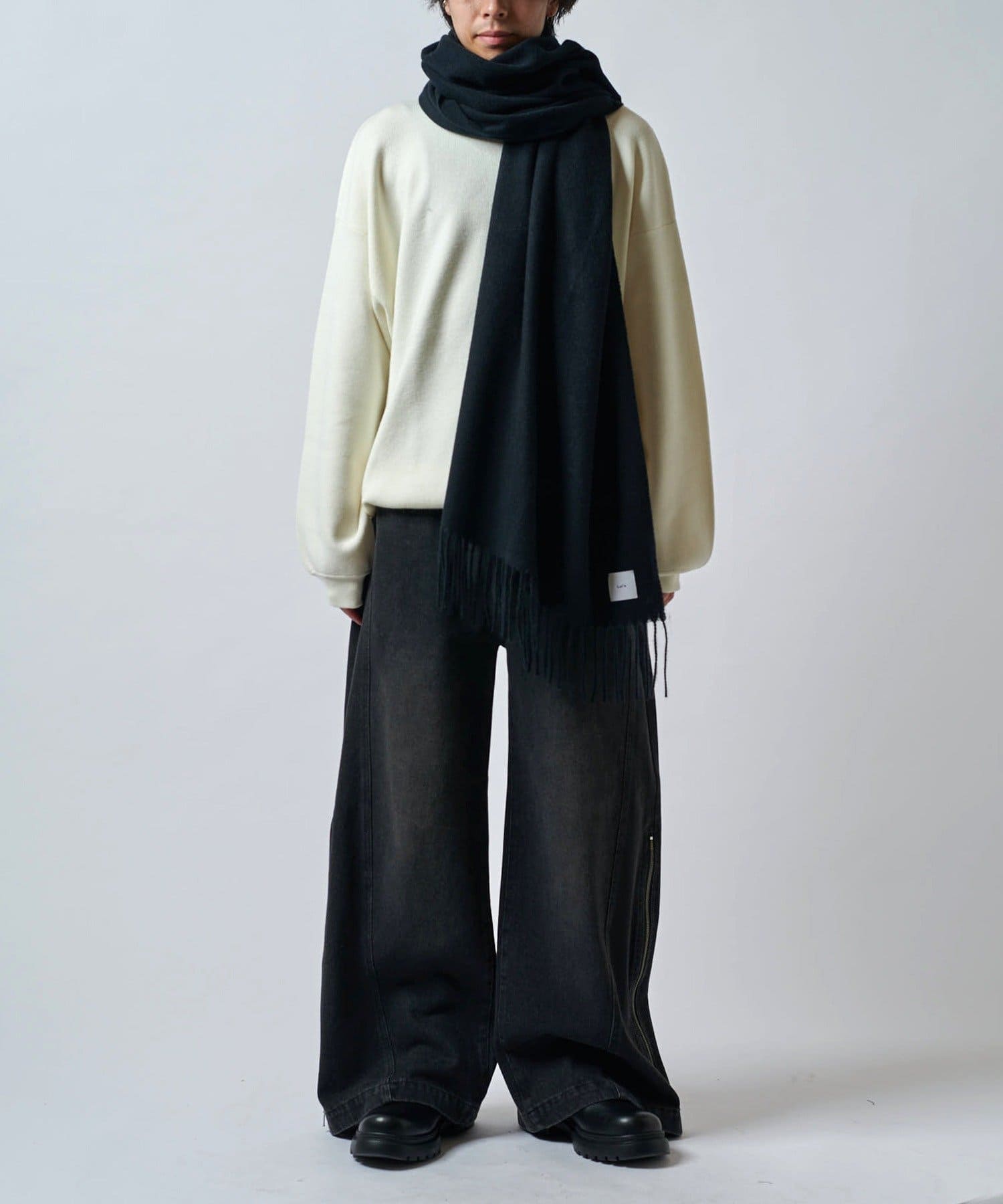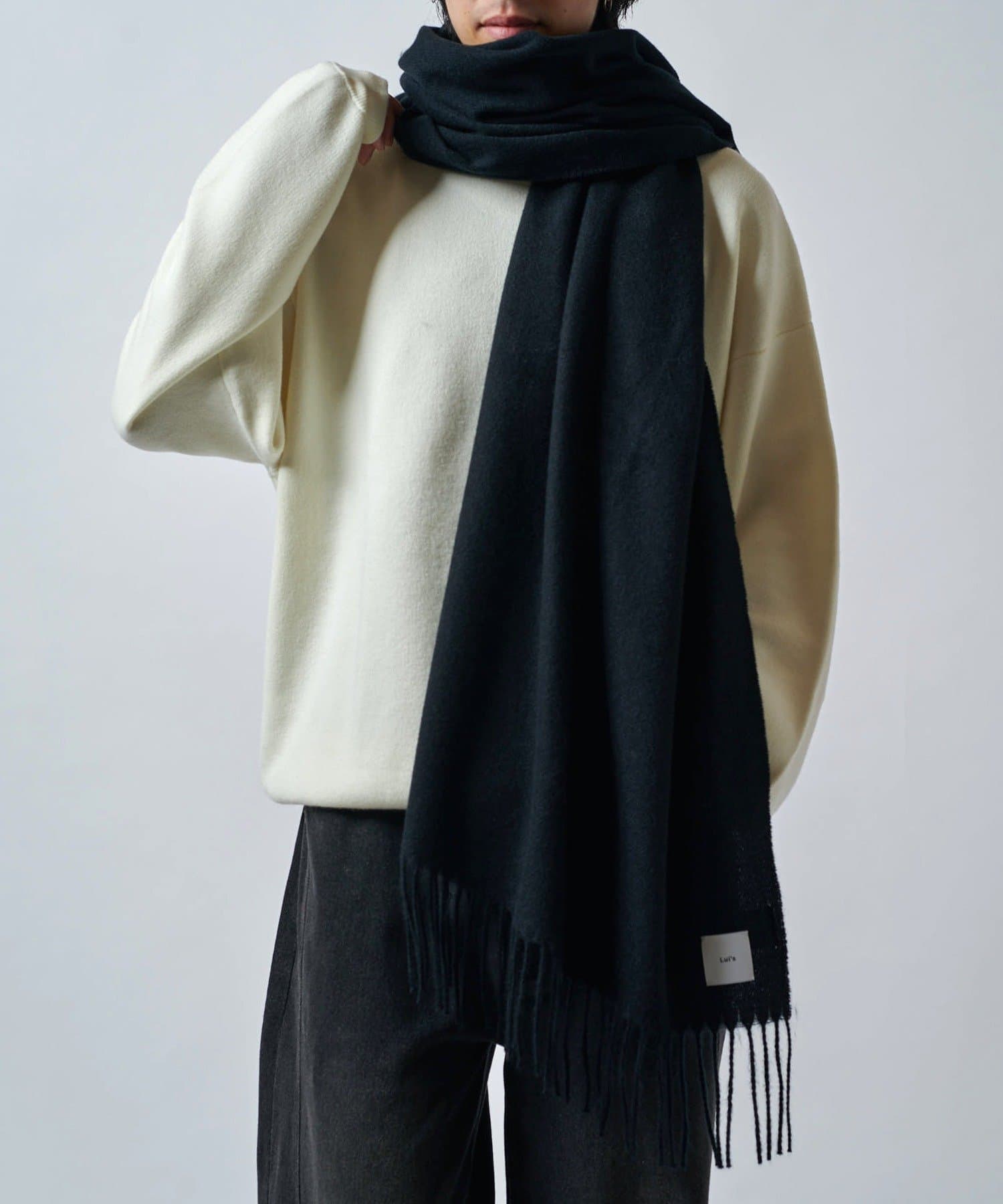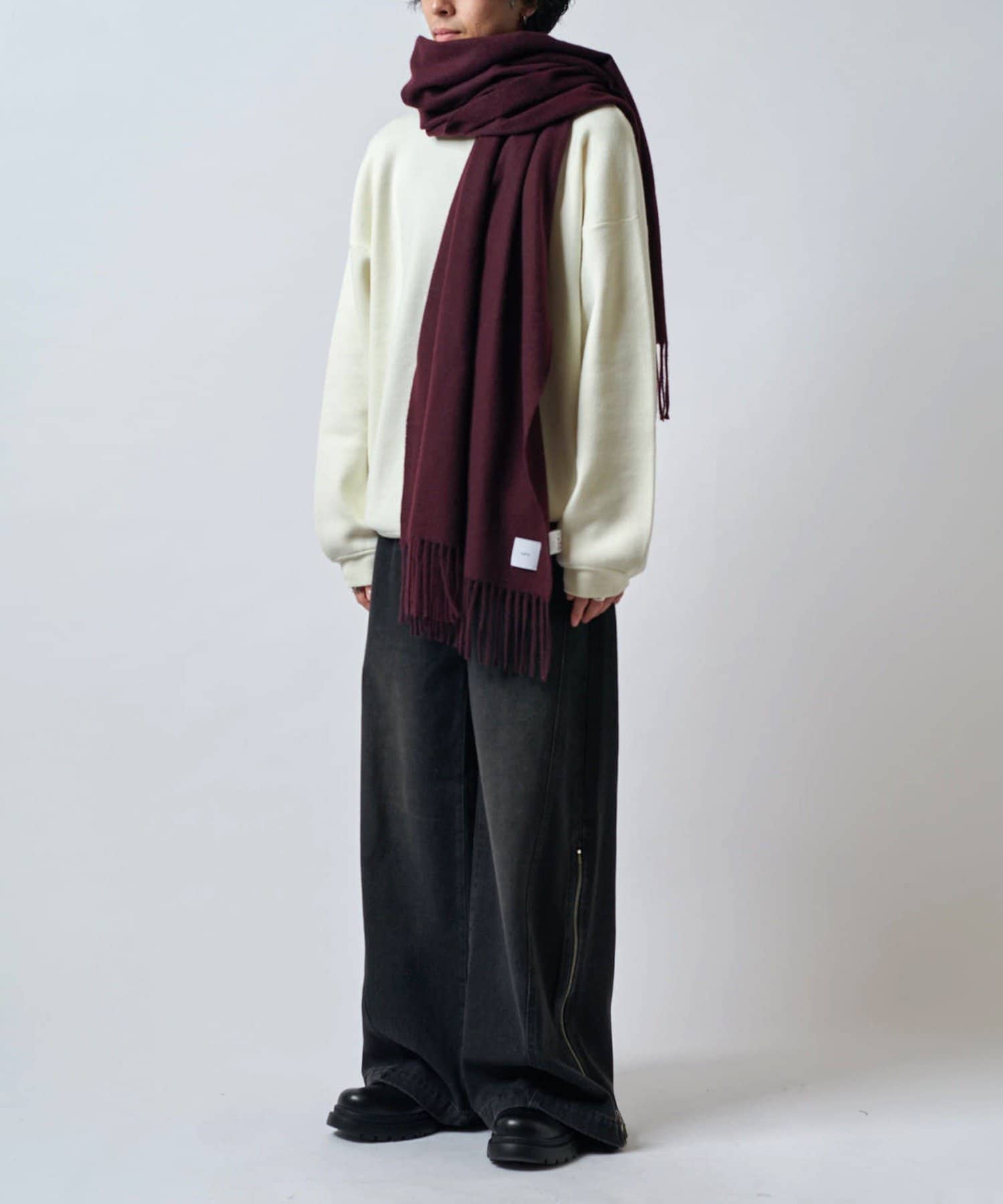 かなりワイドな横幅にロング丈のオーバーサイズマフラー。