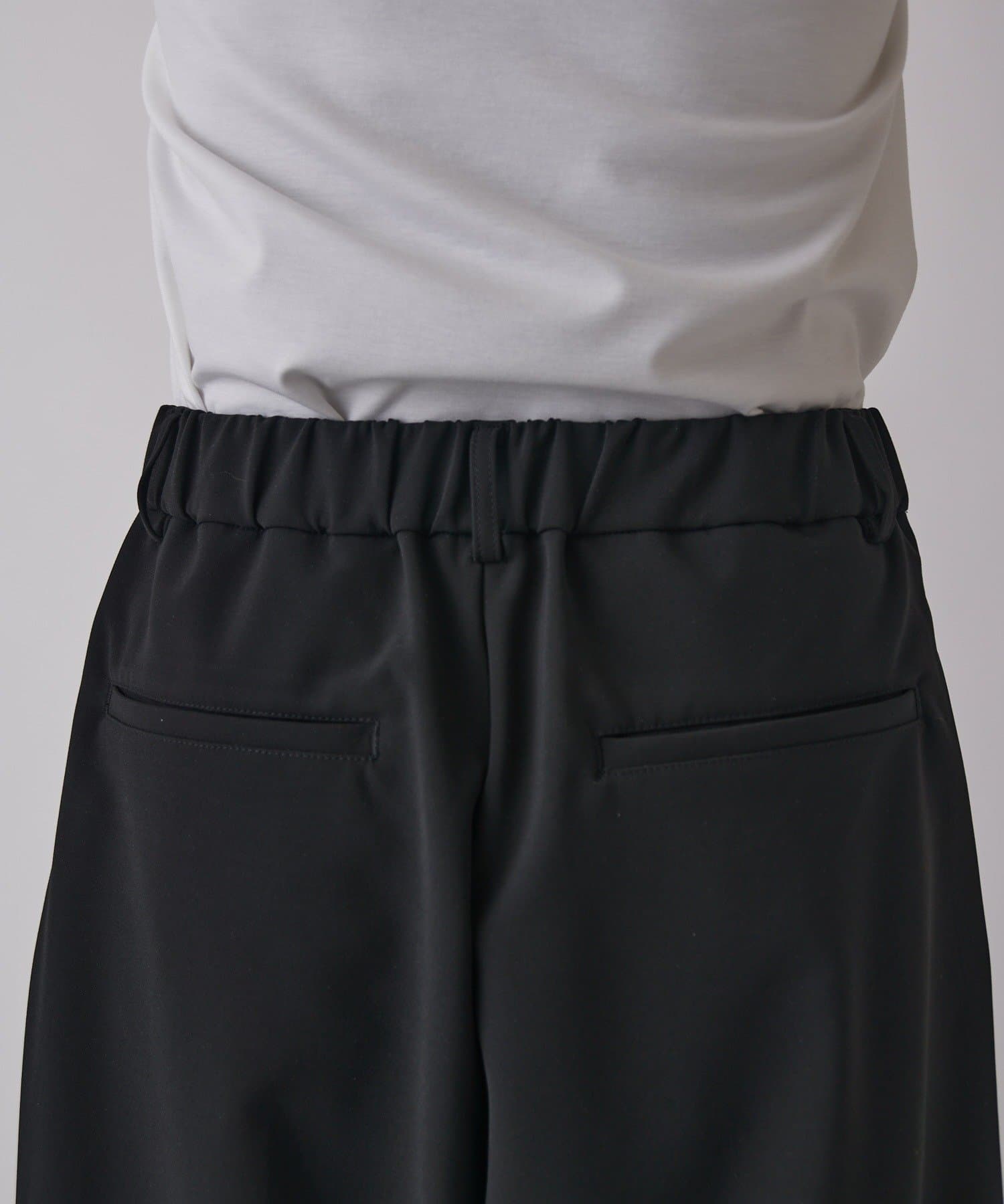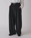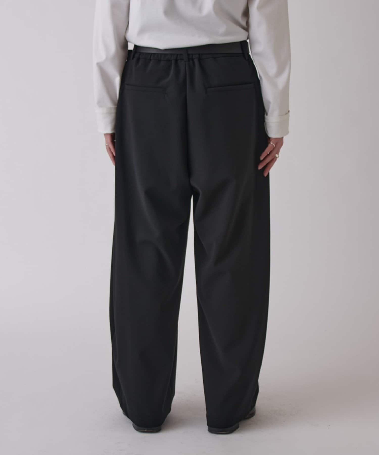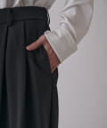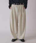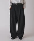 2枚の生地を織り合わせ、きれいなふくらみがあるカーブのシルエットのパンツに。