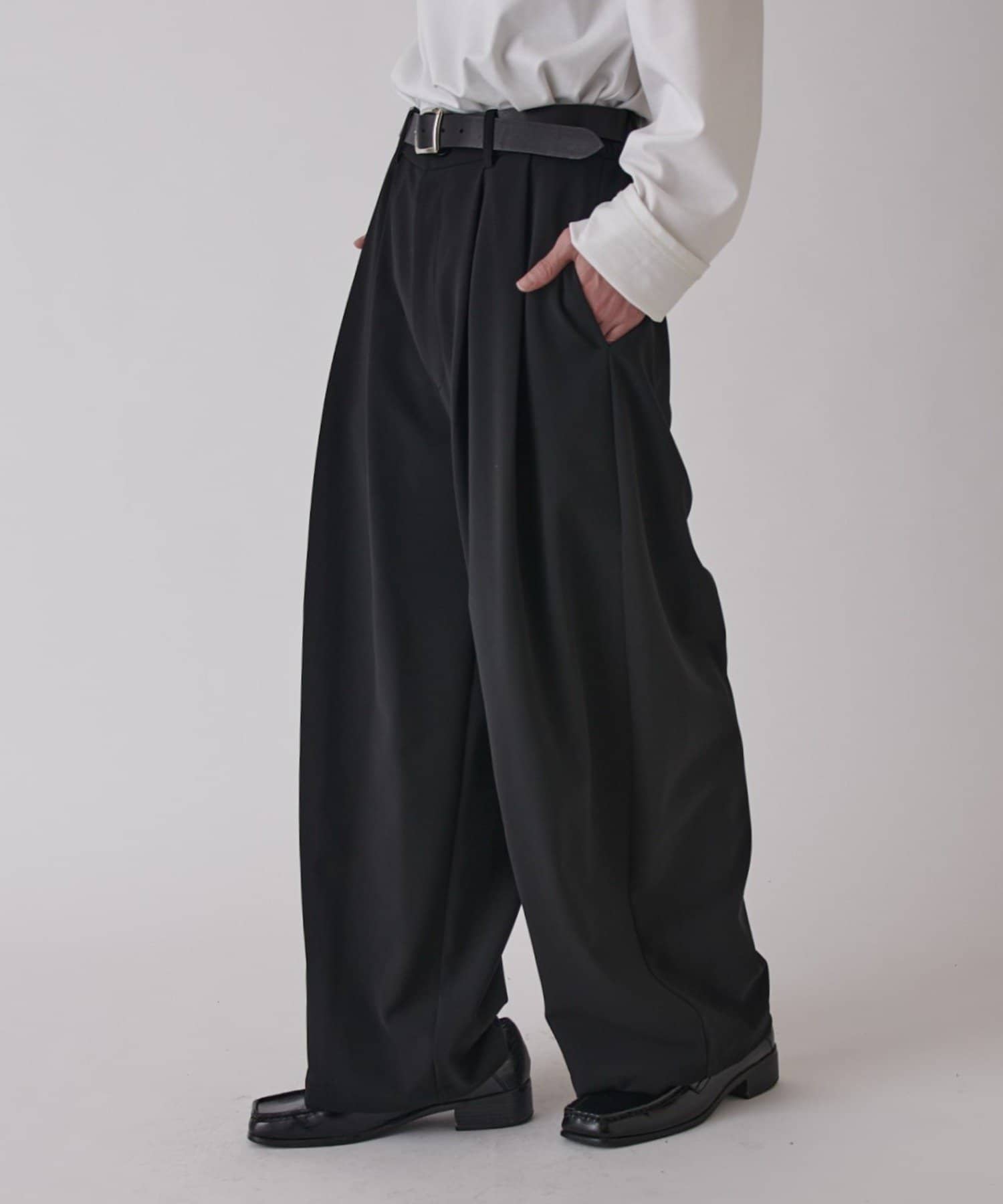 生地も通年履けるしっかりとした生地なので、安定したワイドパンツを求めてる方にオススメです。