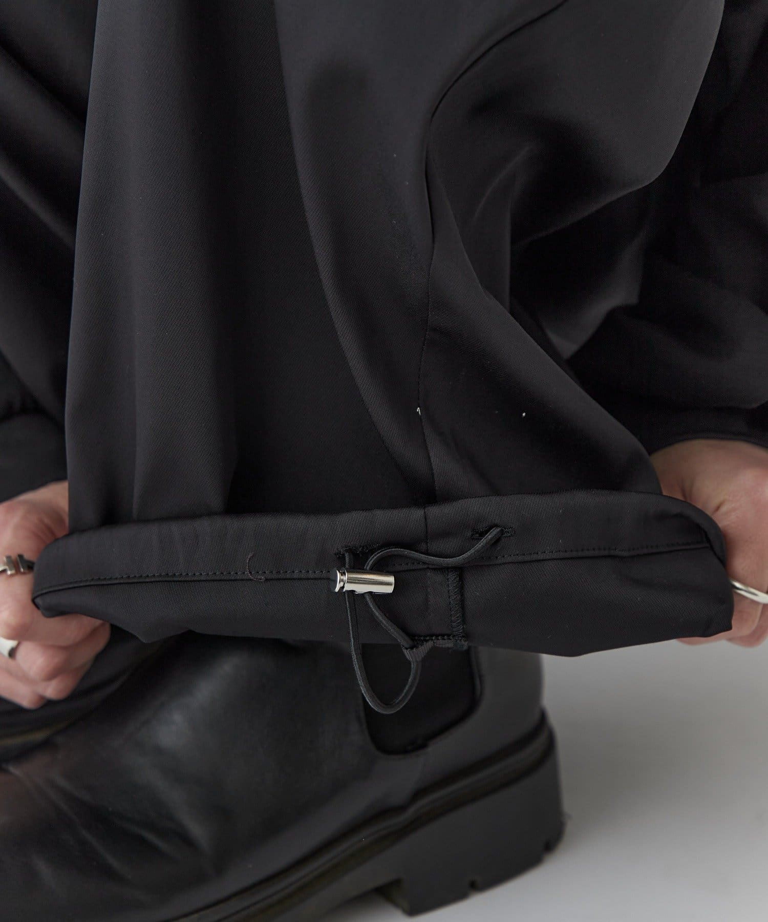 裾にはドローコードがあり、絞ってシルエット調整などに使っていただけます。
