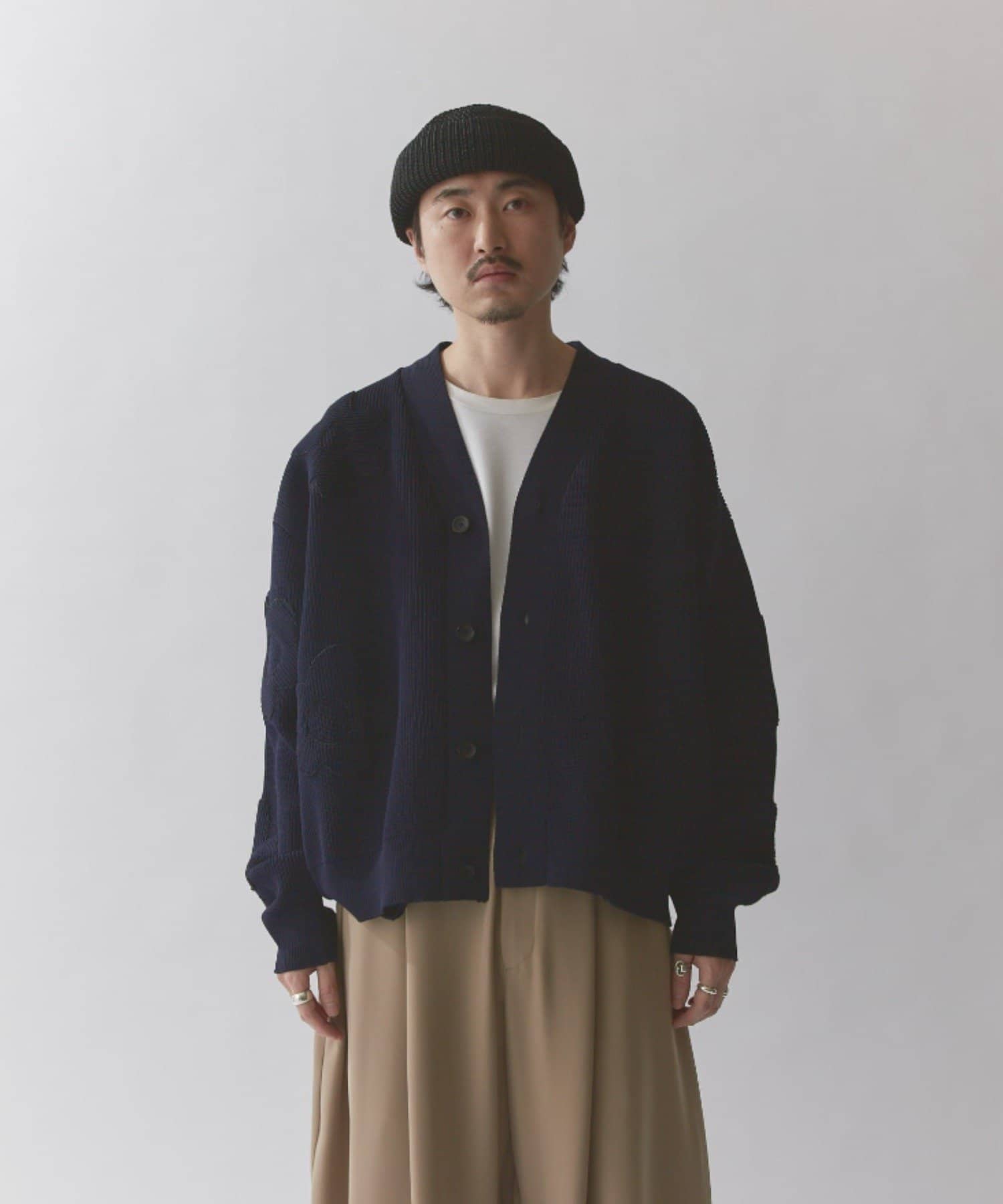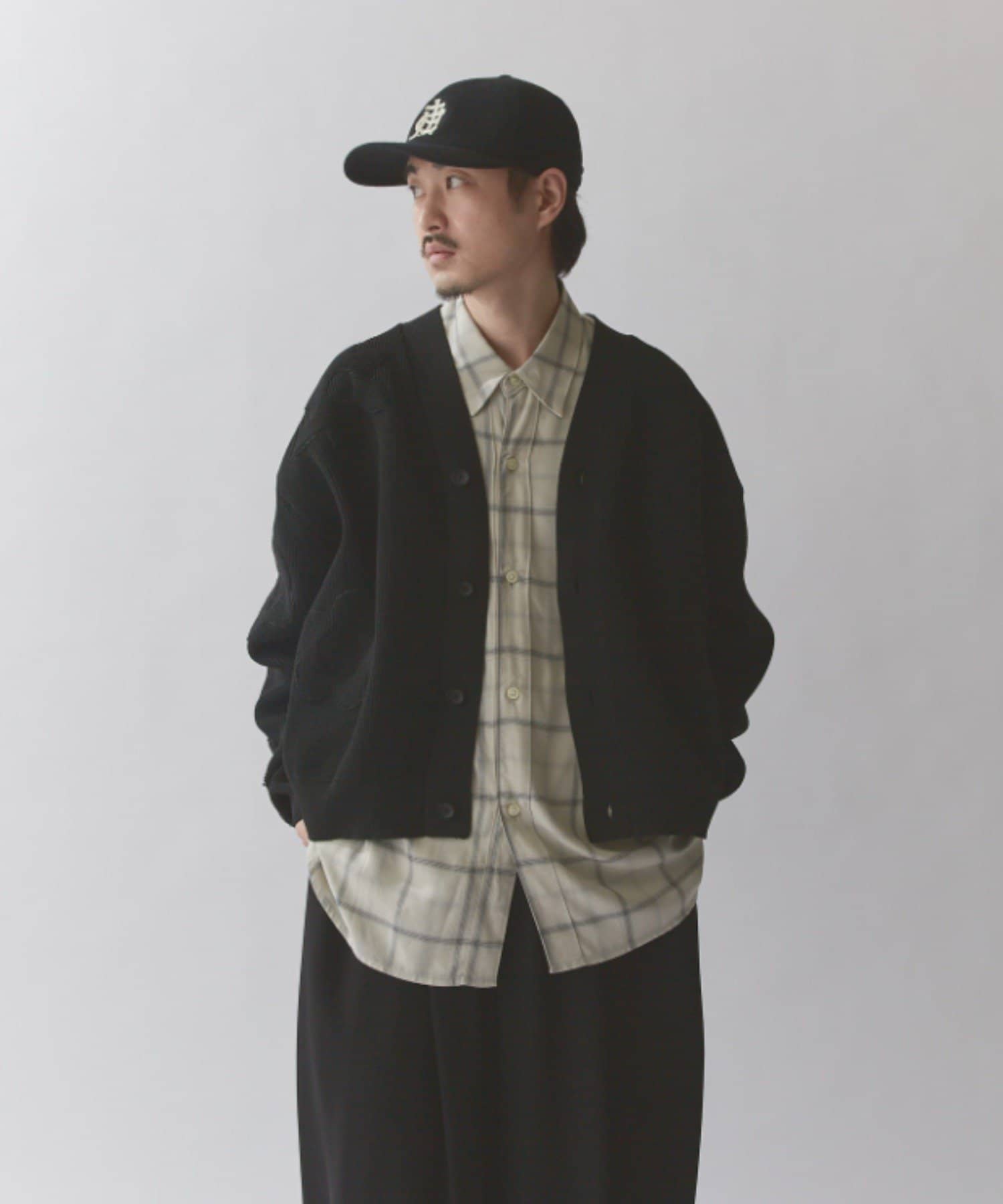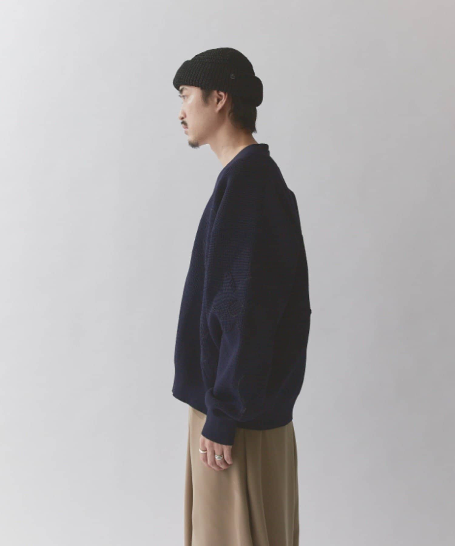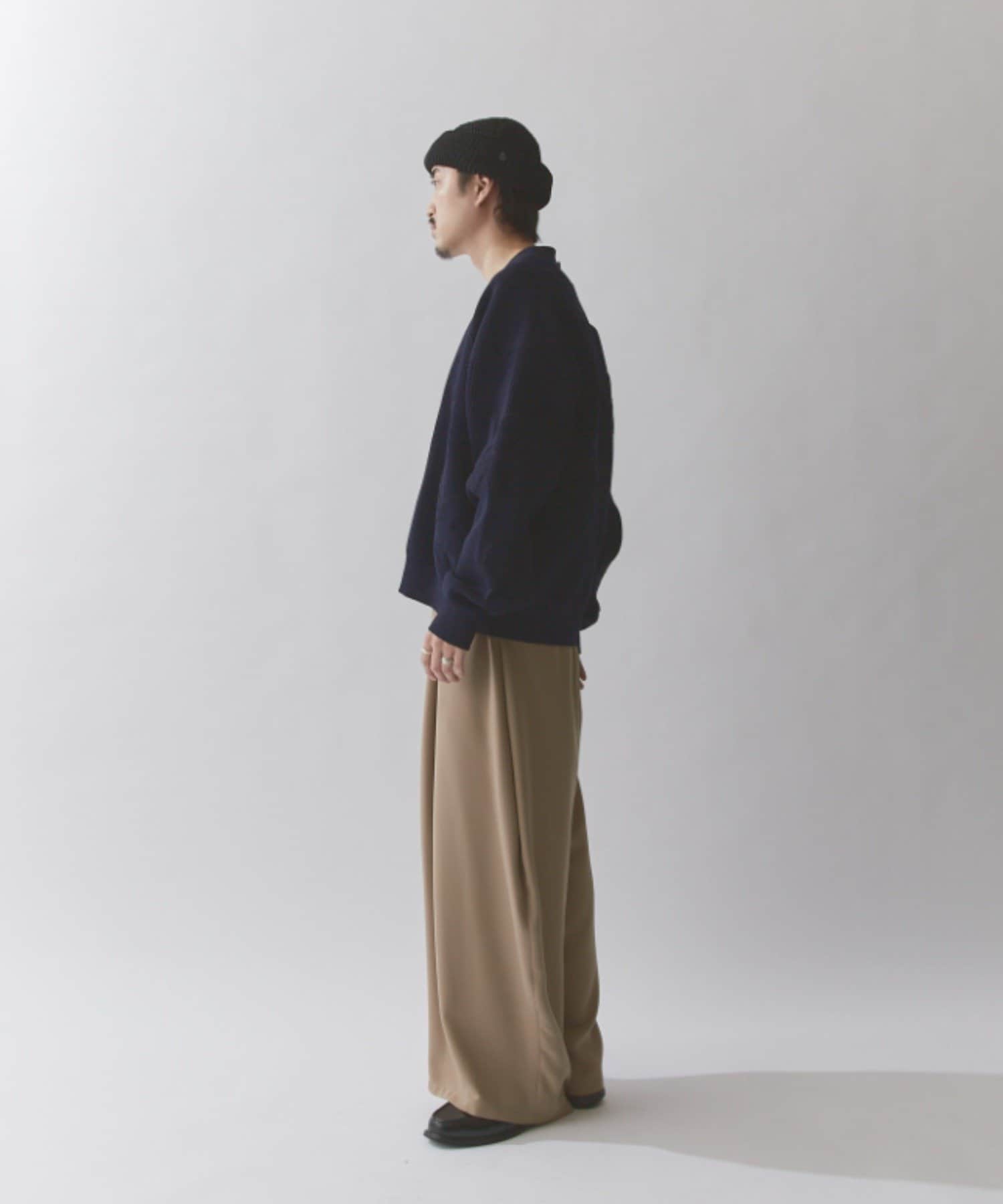 丈はすっきりとしておりますが、身幅と腕周りはボリュームがあるので様々なインナーと合わせていただけます。