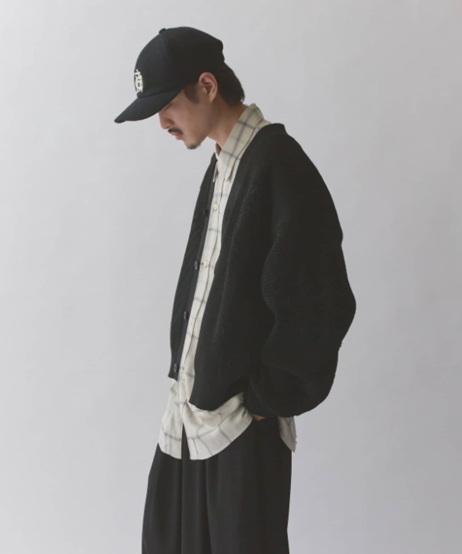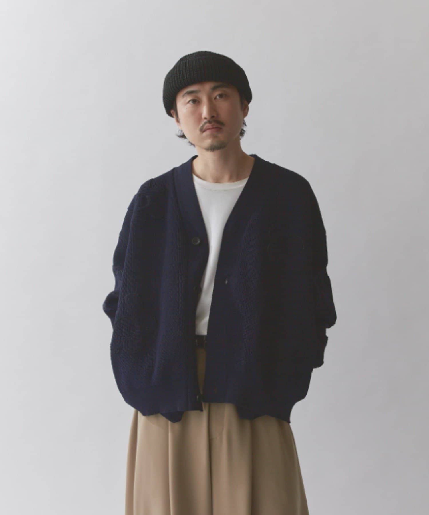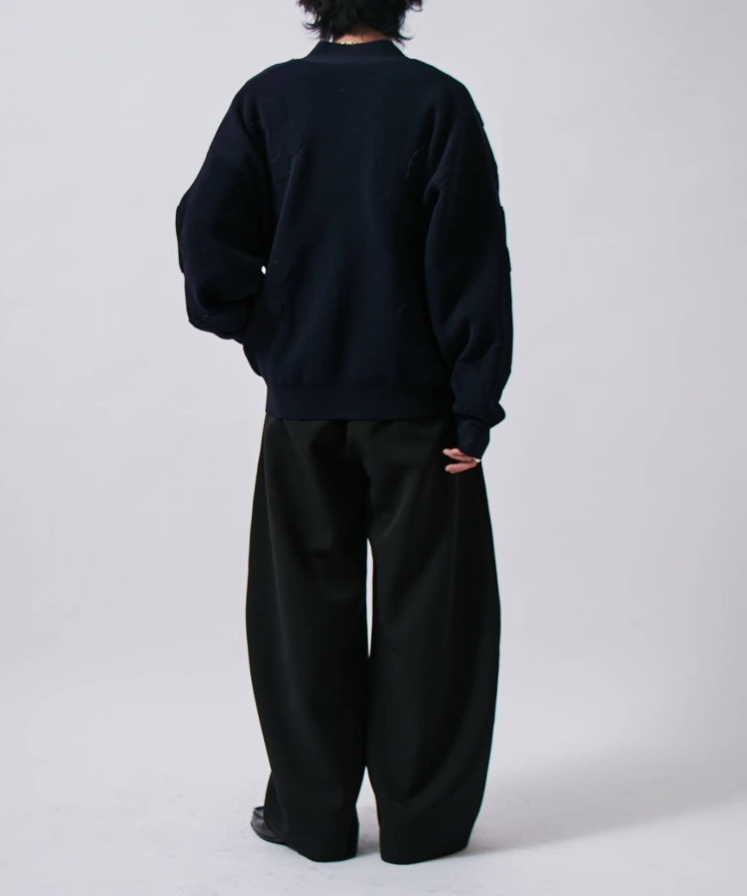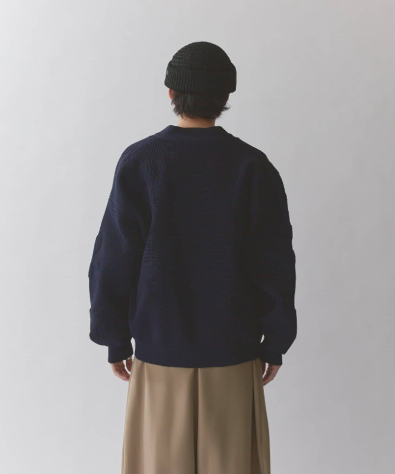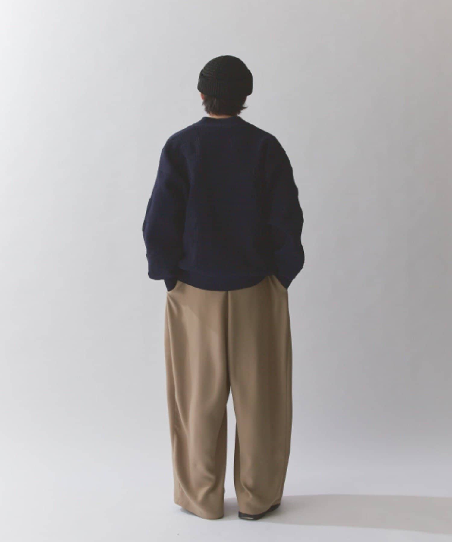 丈はすっきりとしておりますが、身幅と腕周りはボリュームがあるので様々なインナーと合わせていただけます。