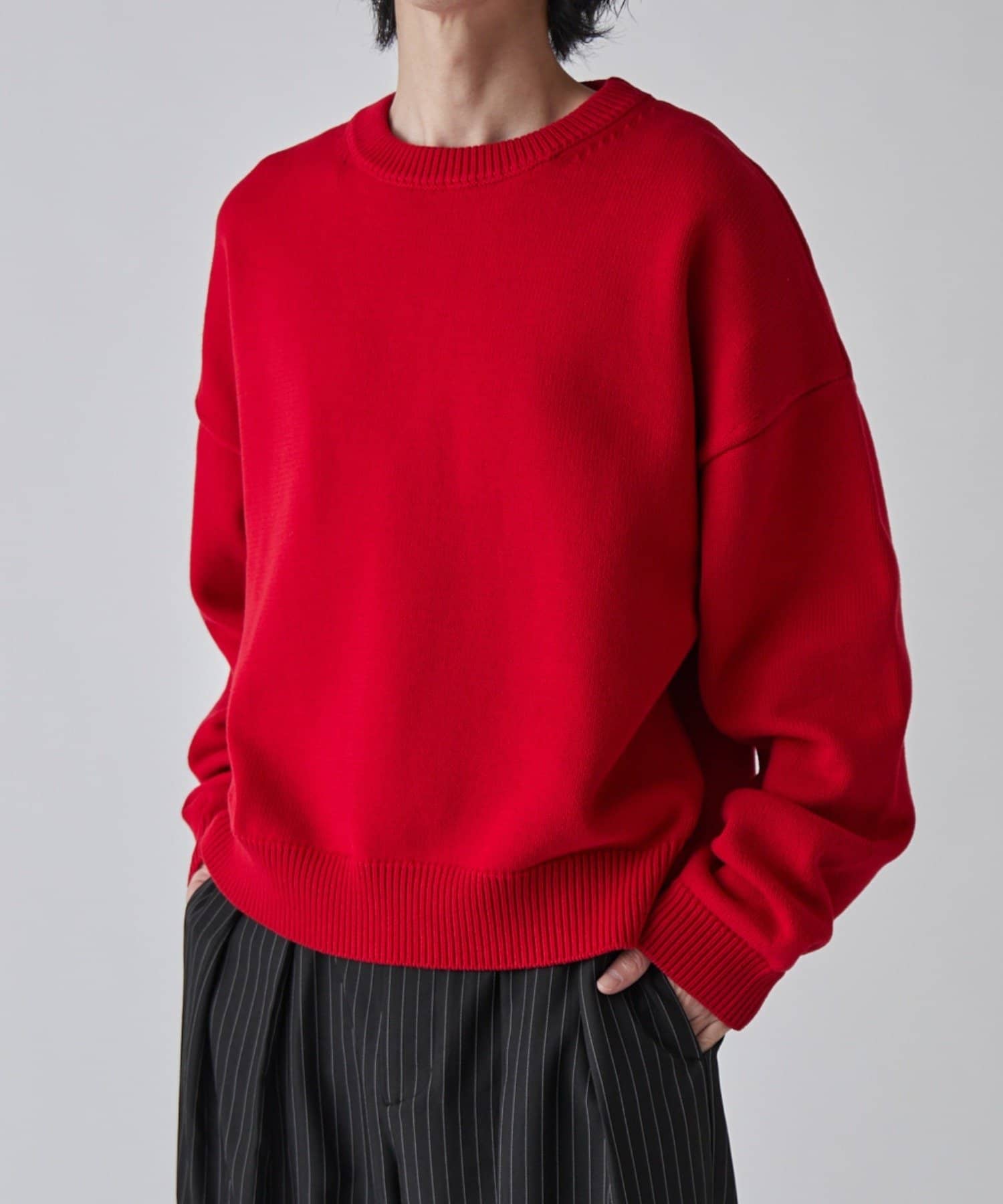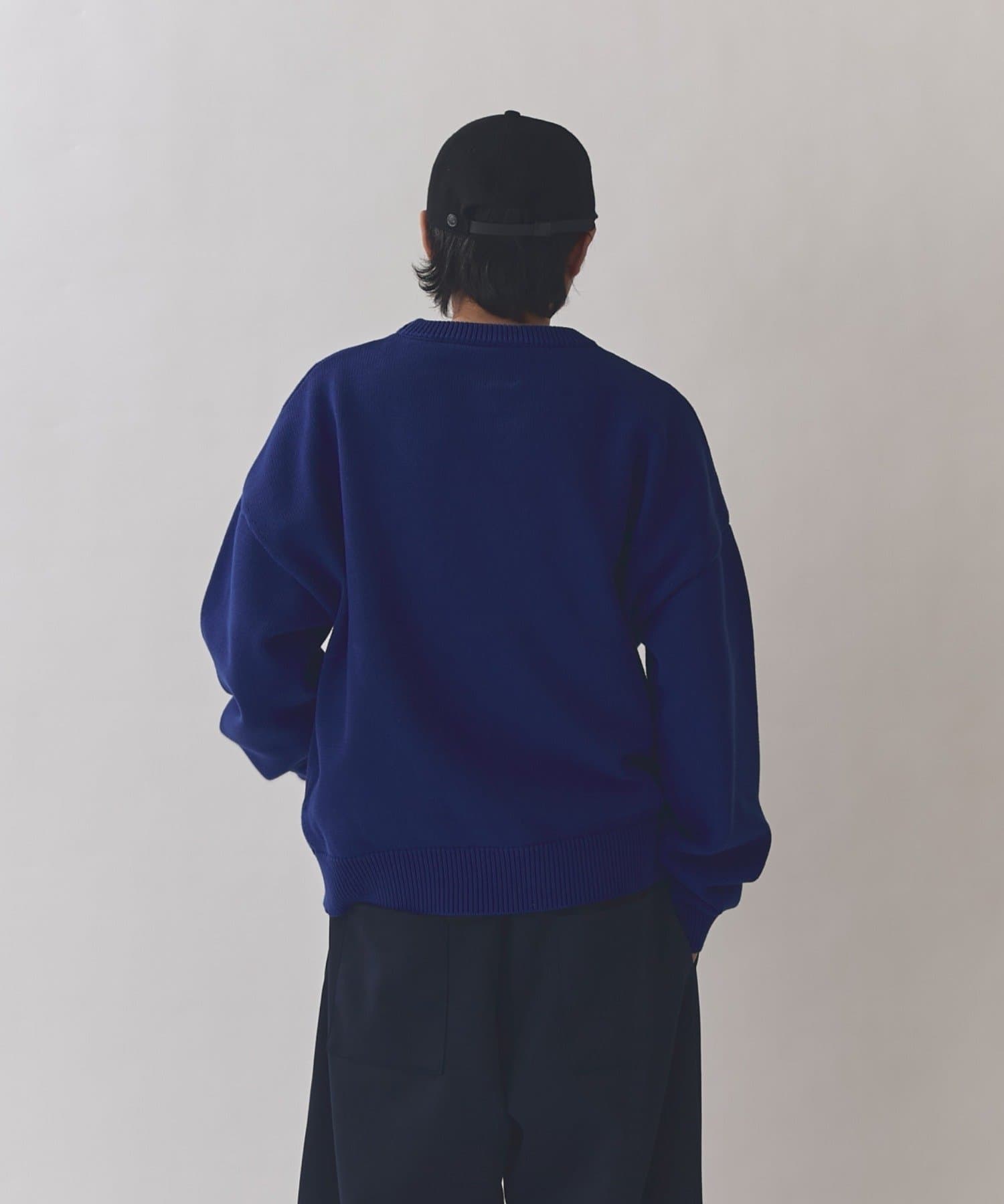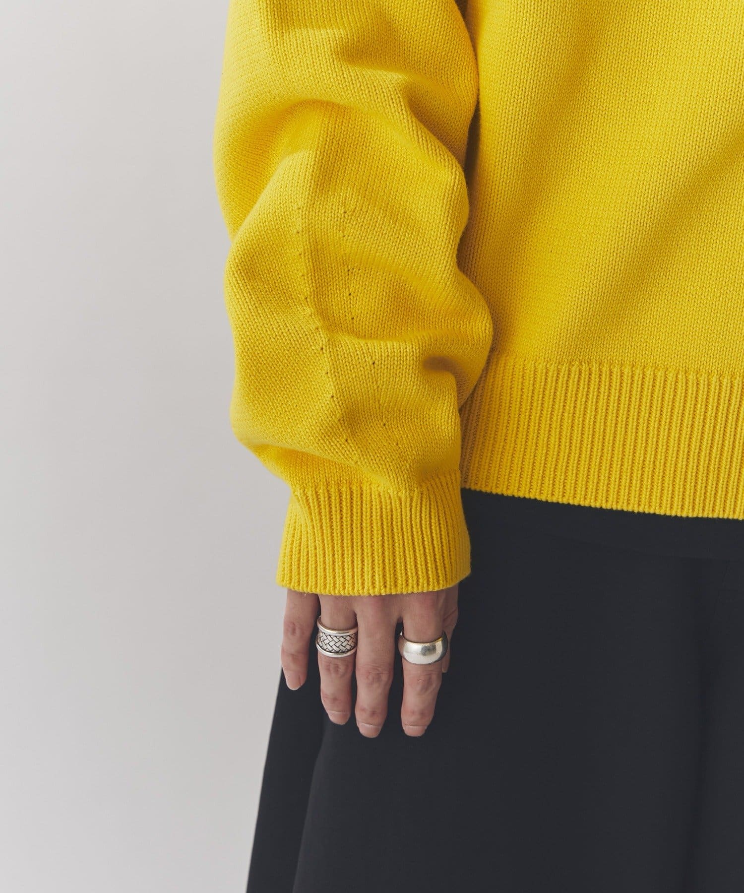 ドロップショルダー仕様のルーズなシルエットですが、ショート丈仕様の程よいサイズ感のコットンニット。