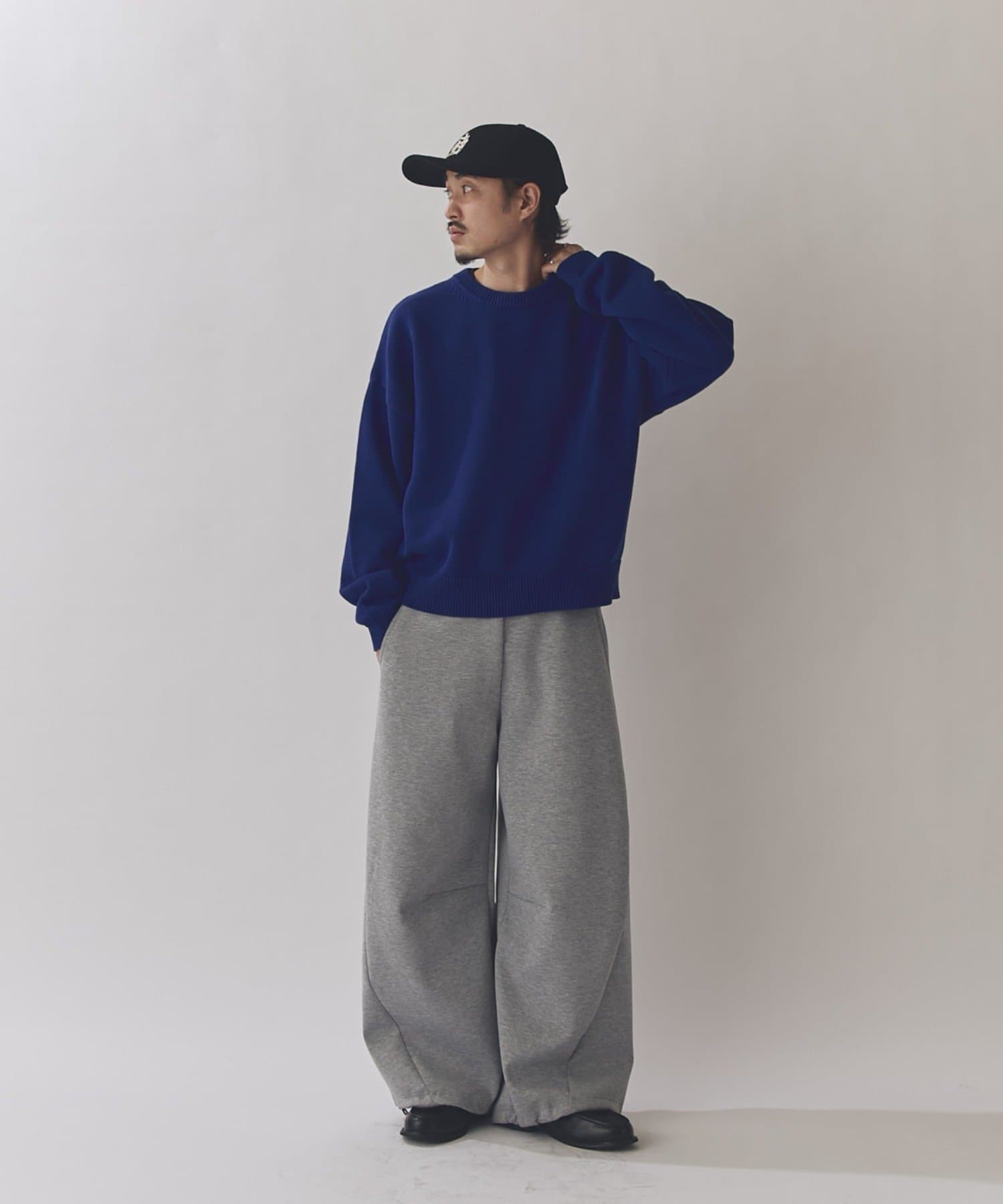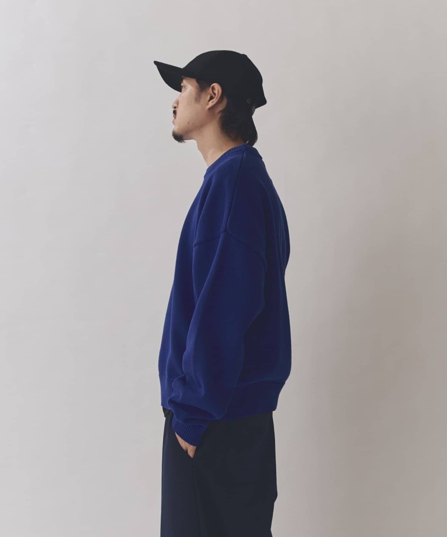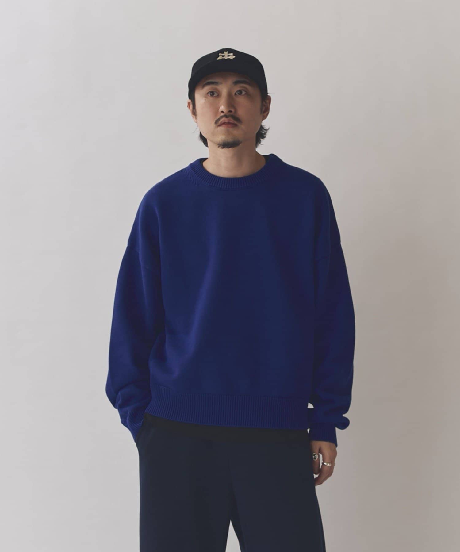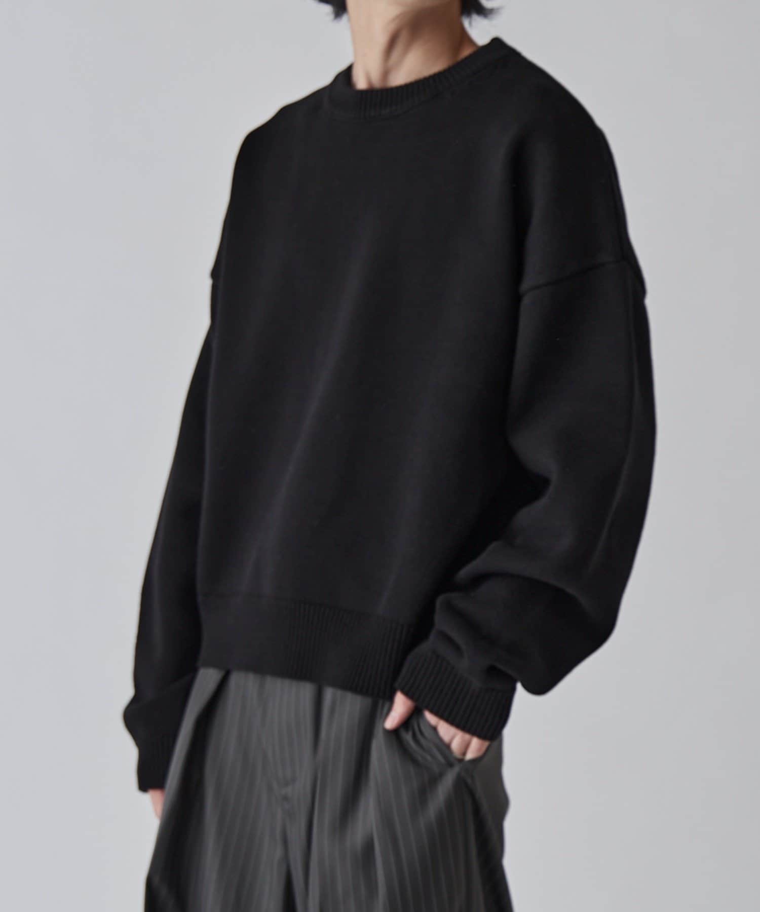 ドロップショルダー仕様のルーズなシルエットですが、ショート丈仕様の程よいサイズ感のコットンニット。