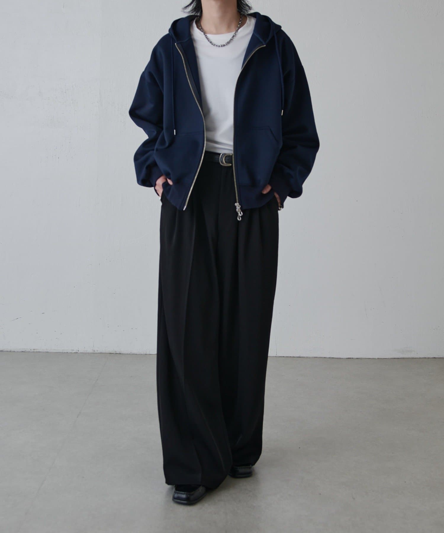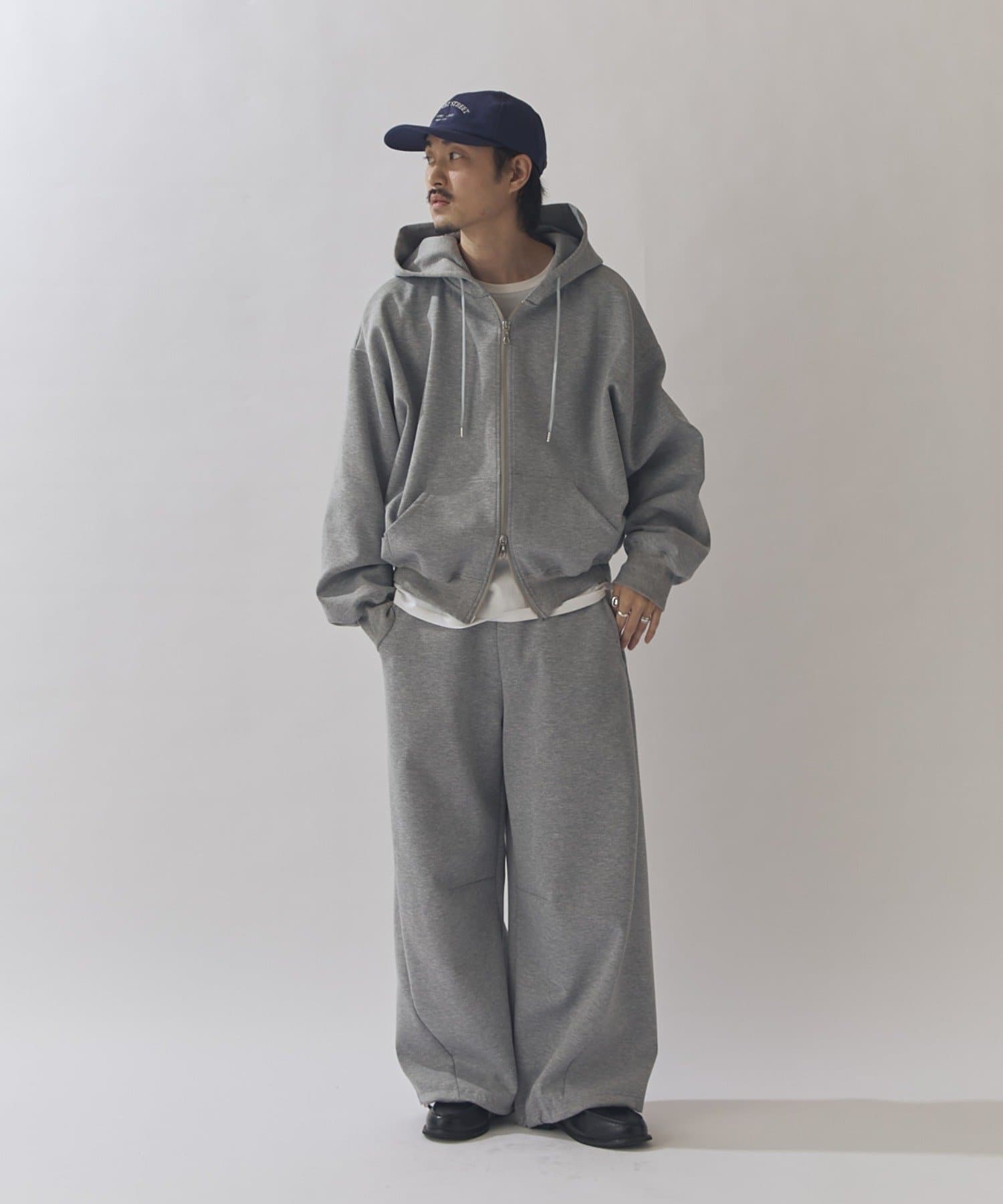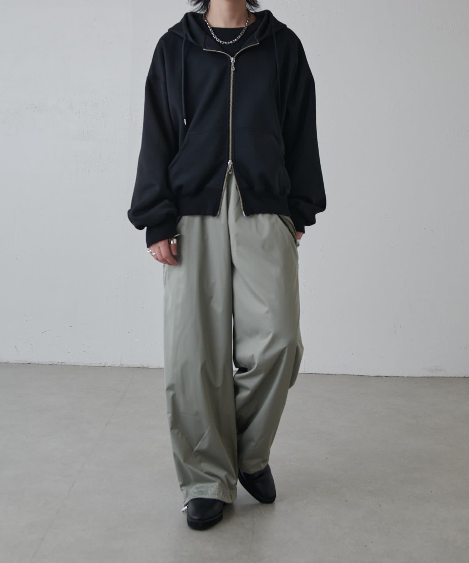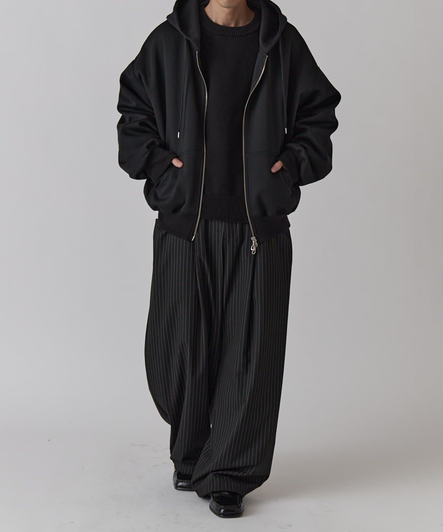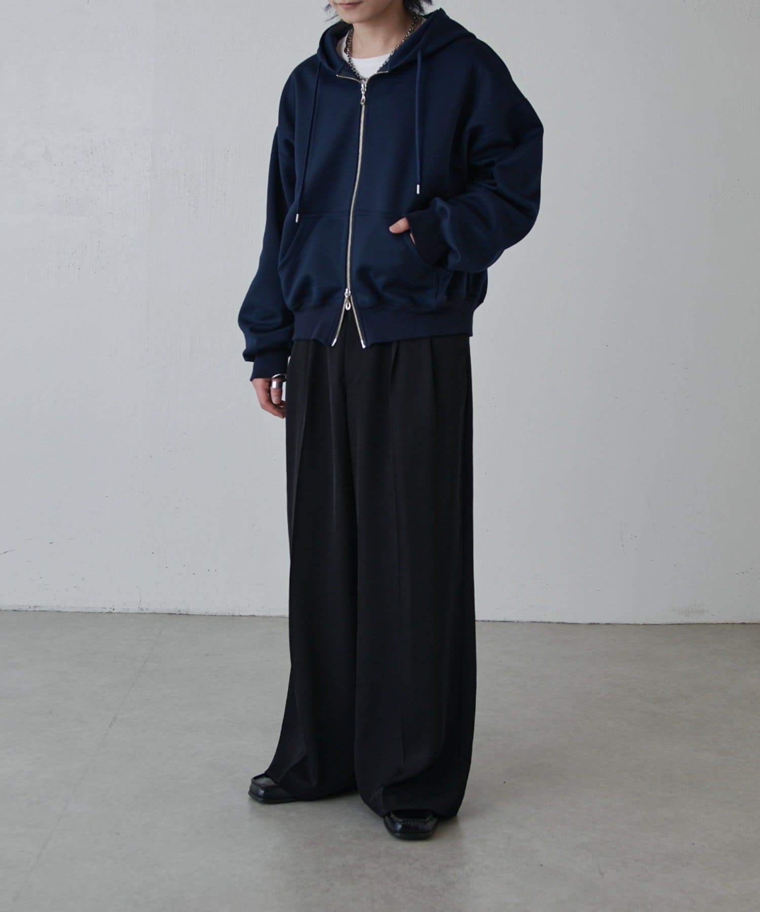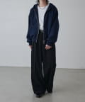 丈は短丈になっており、同素材のパンツがワイドなので、セットアップでの着用の相性が抜群です。