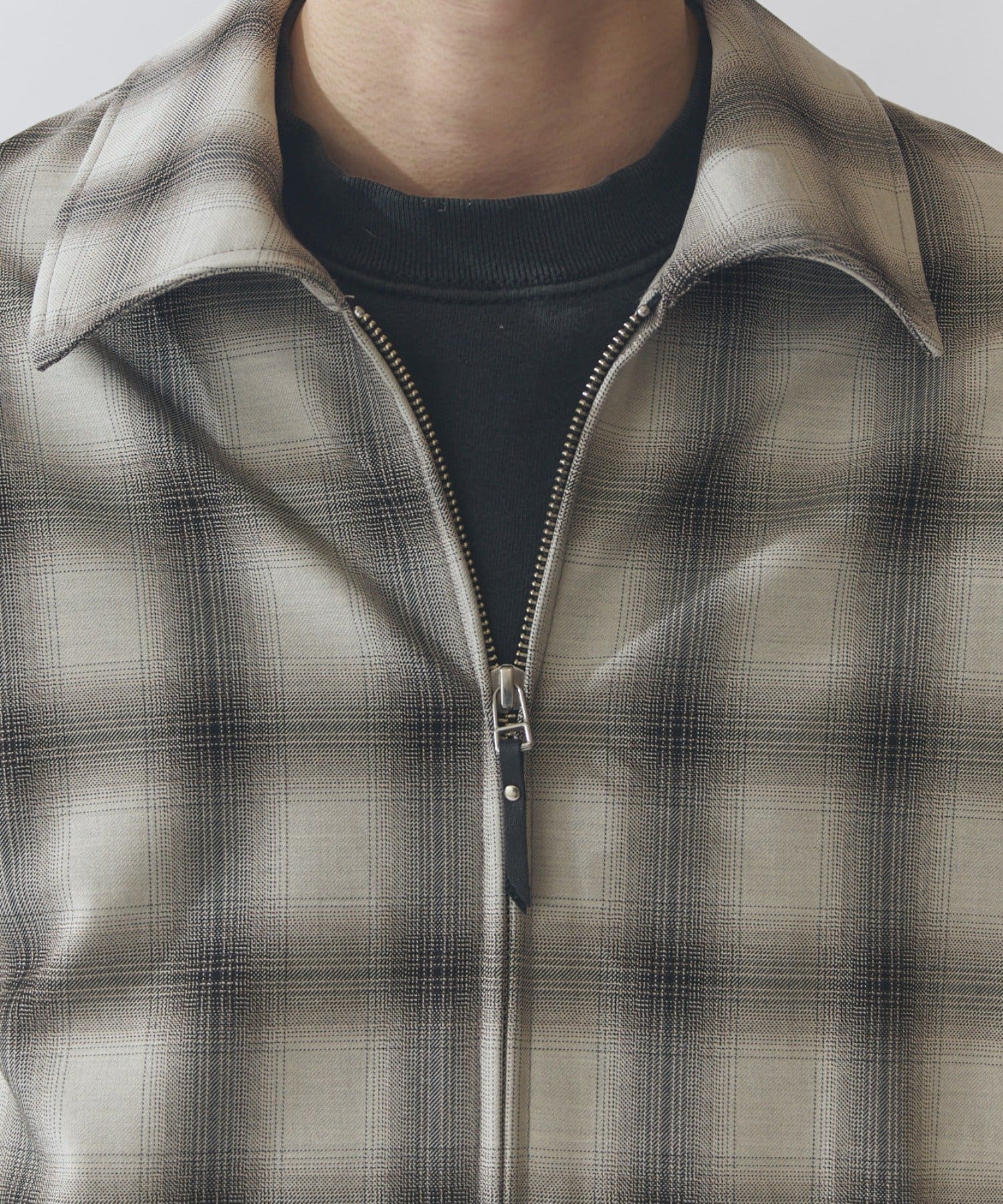 肌触りの良いさらっとした素材感が特徴のオンブレーチャックブルゾン。