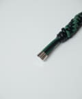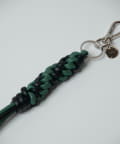 ロックミシンで緻密なステッチが施された、5mm径の丸レザーコード2色を編み込んだ、結び目の造形が美しいチャーム。
