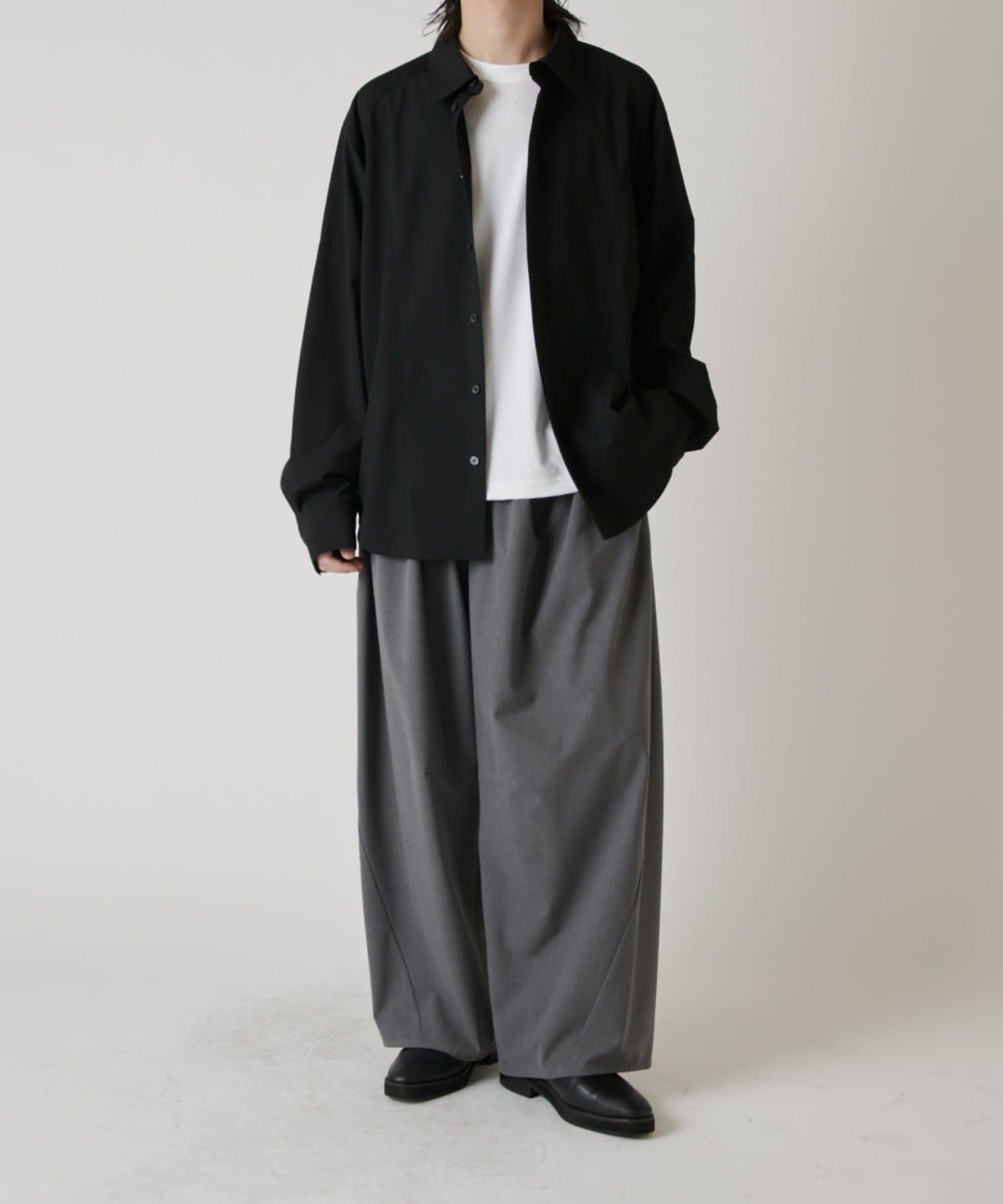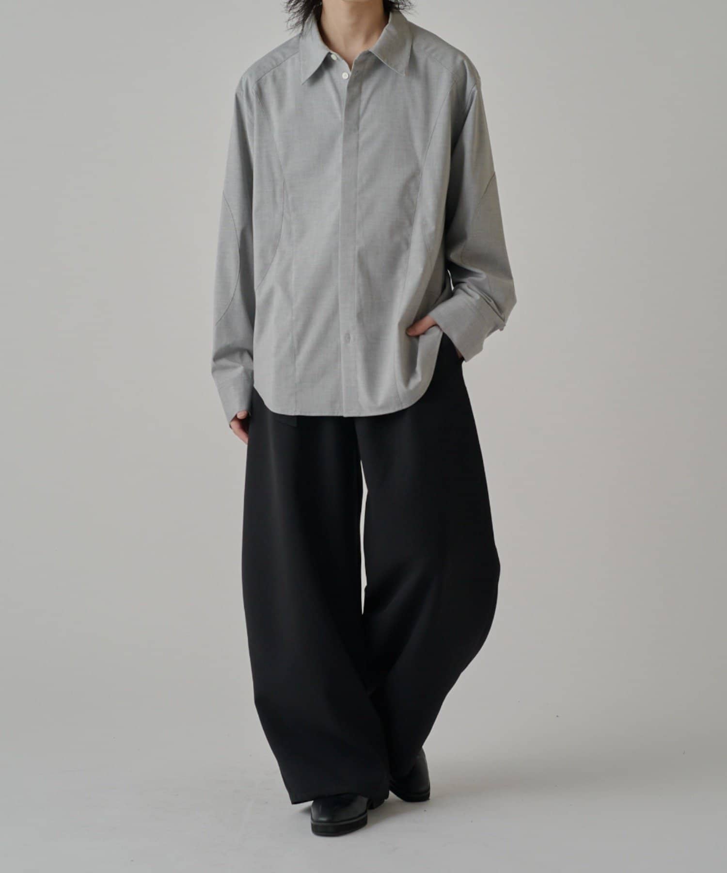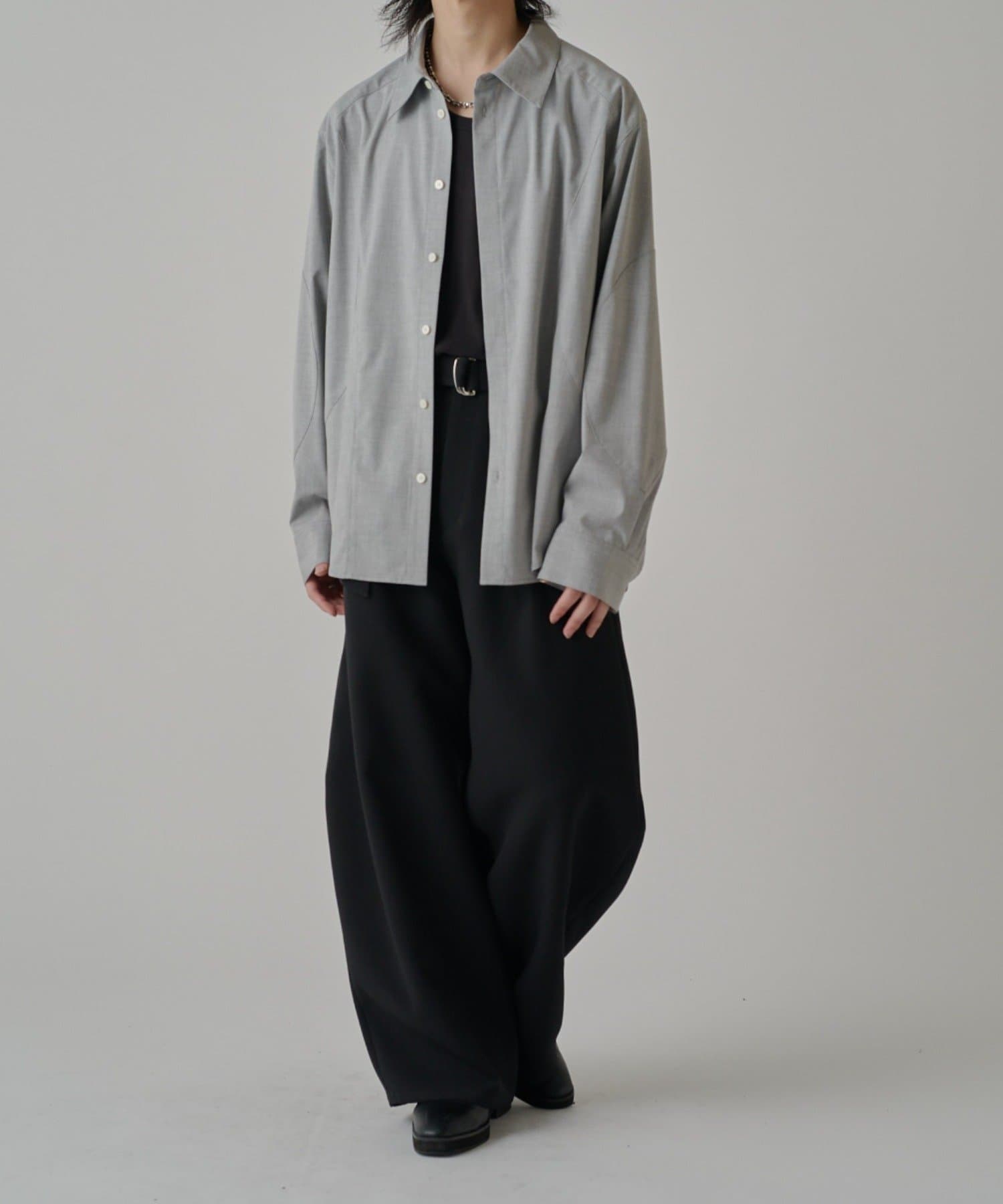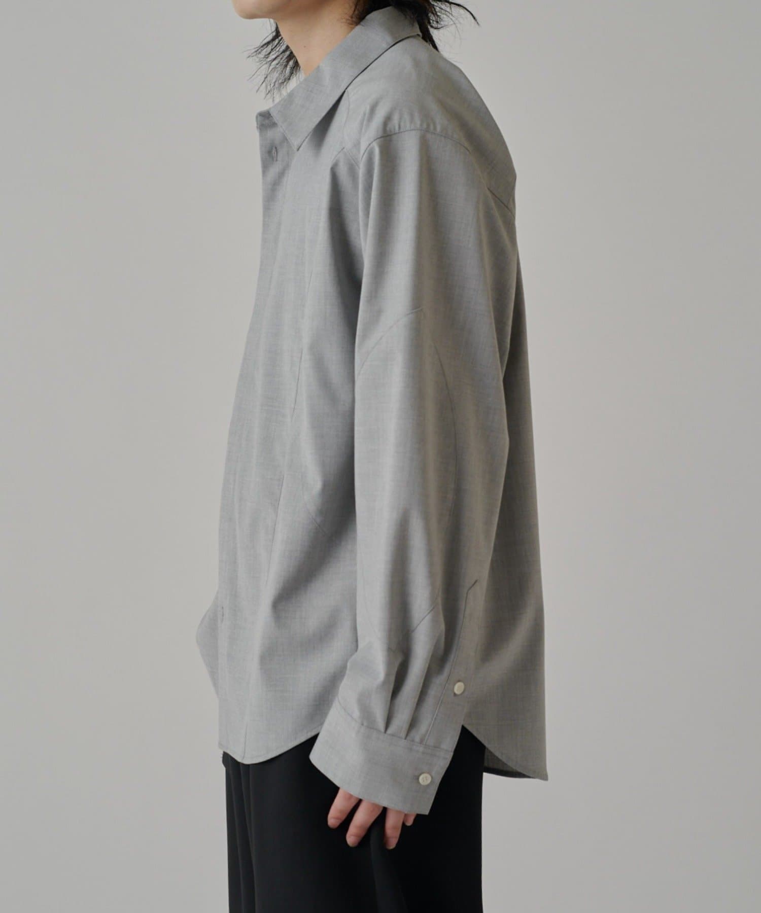 ・切替デザインが特徴的なシャツ。コンテンポラリーな曲線の切替がポイント。ルーズなサイジングで、一枚でサラッと着て頂けます。