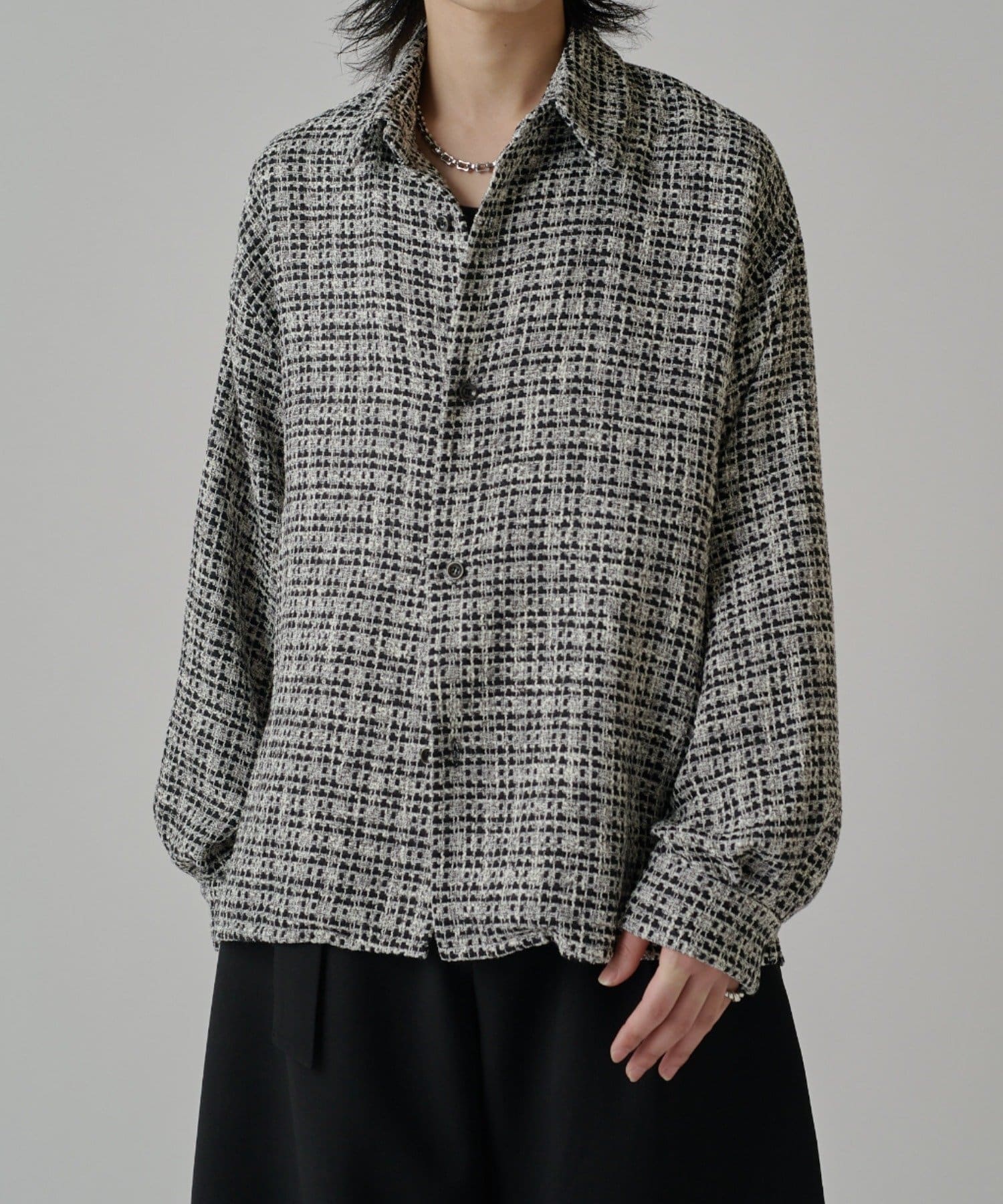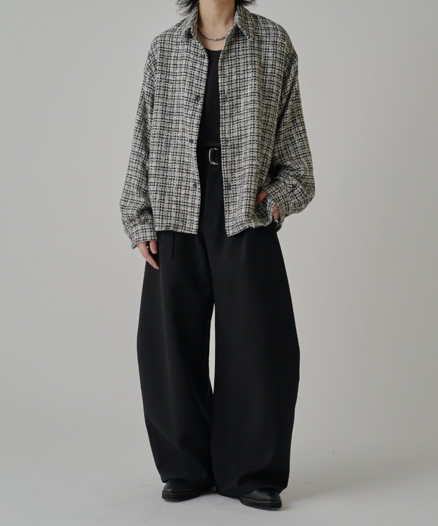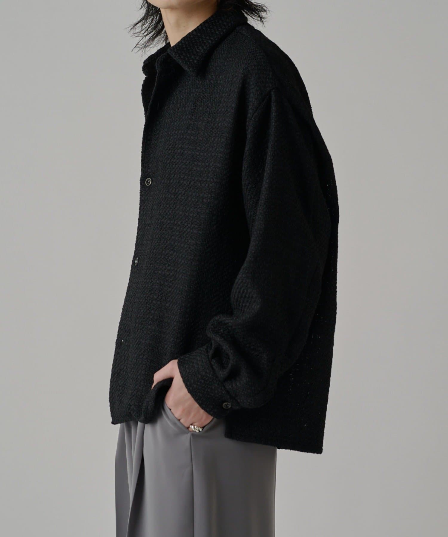 ・表情のあるファニーツイード素材が特徴的ウィ使用したシャツ。