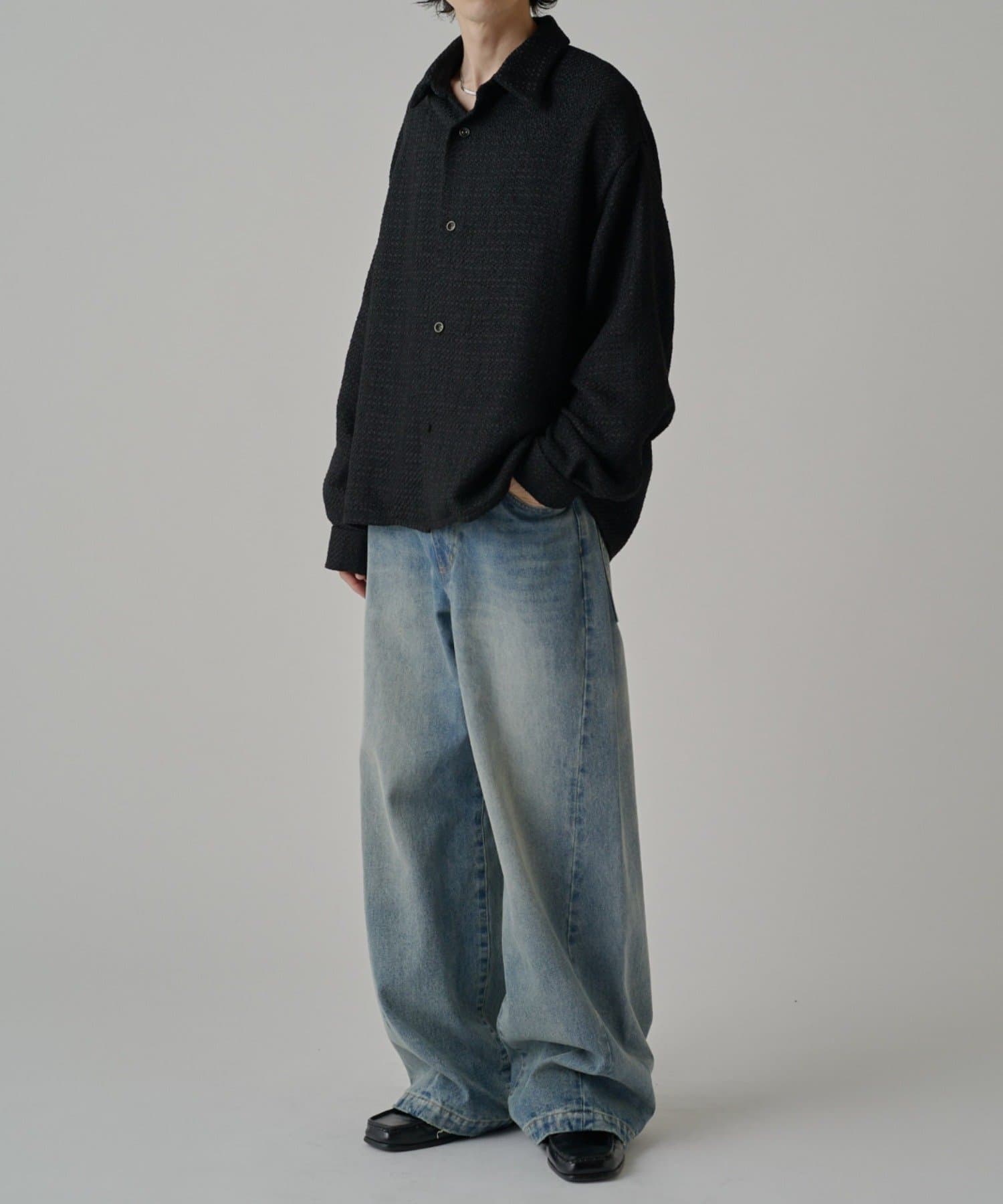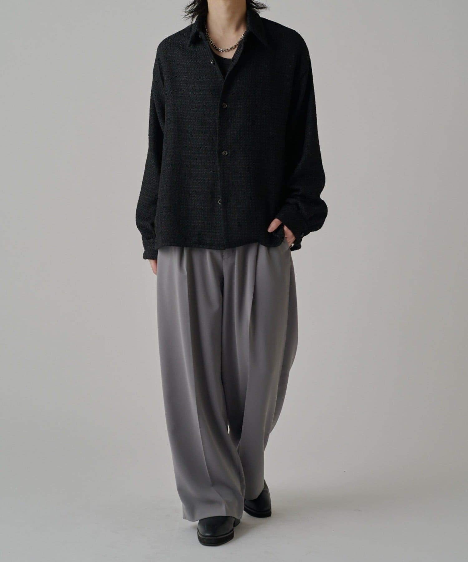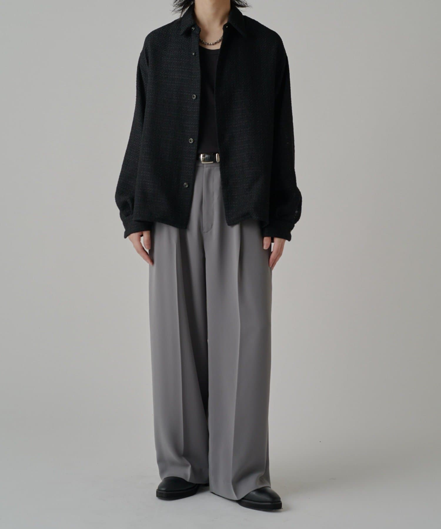 ・表情のあるファニーツイード素材が特徴的ウィ使用したシャツ。