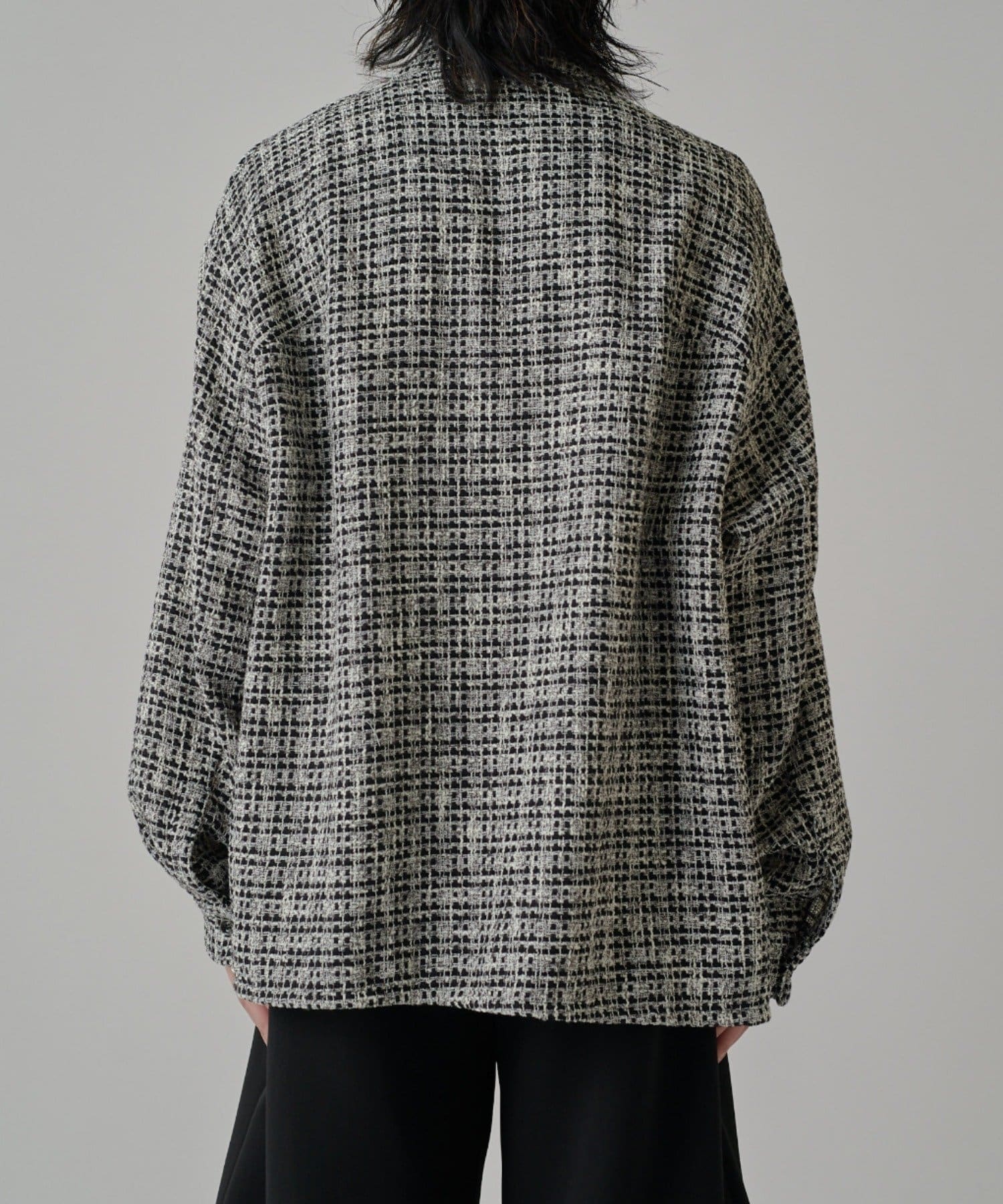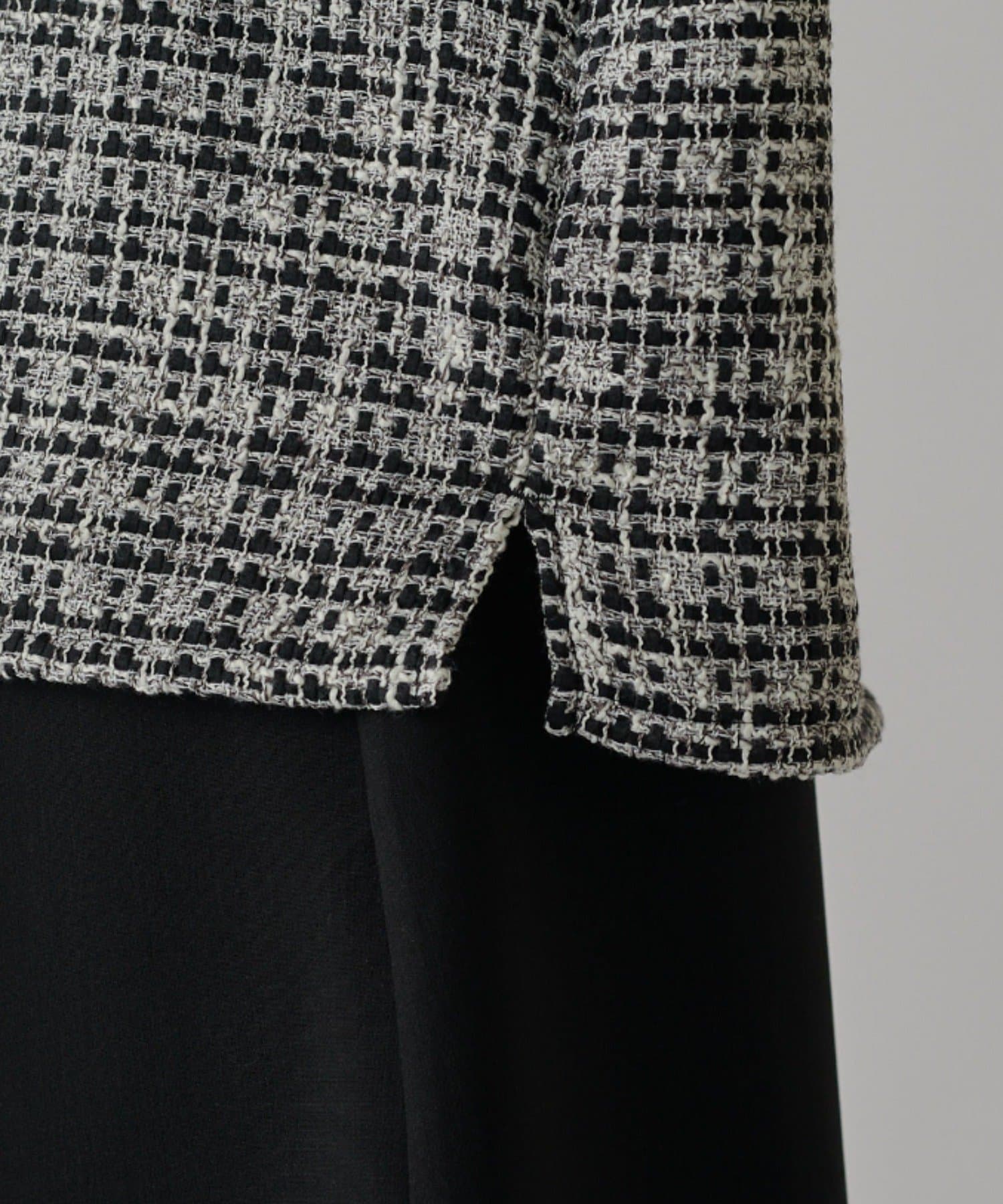 ・シンプルながら素材感が際立つ存在感のある一着で、ツイード特有の立体感がスタイリングのアクセントに。