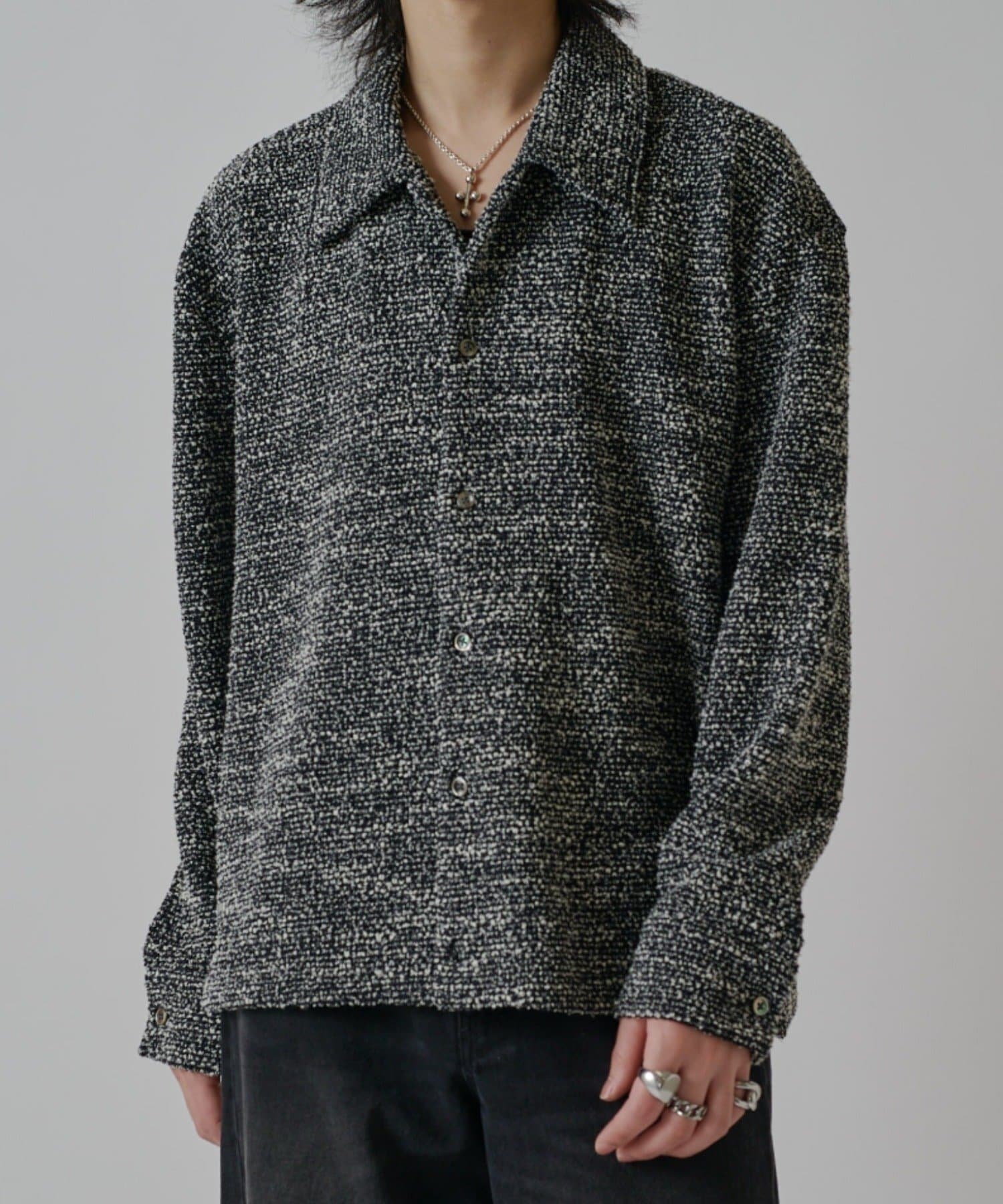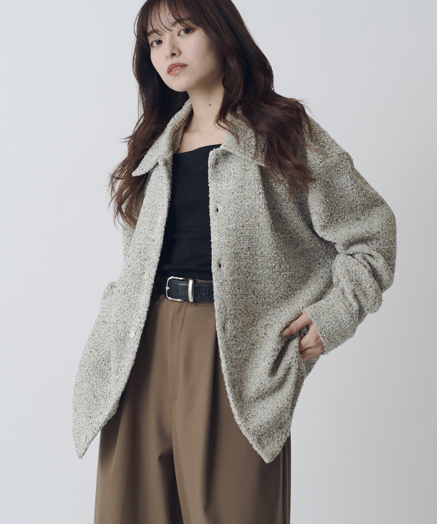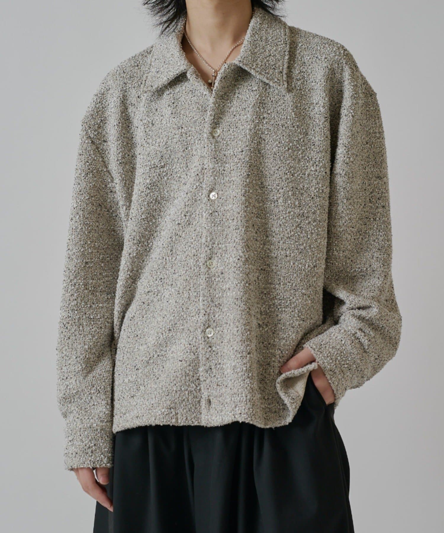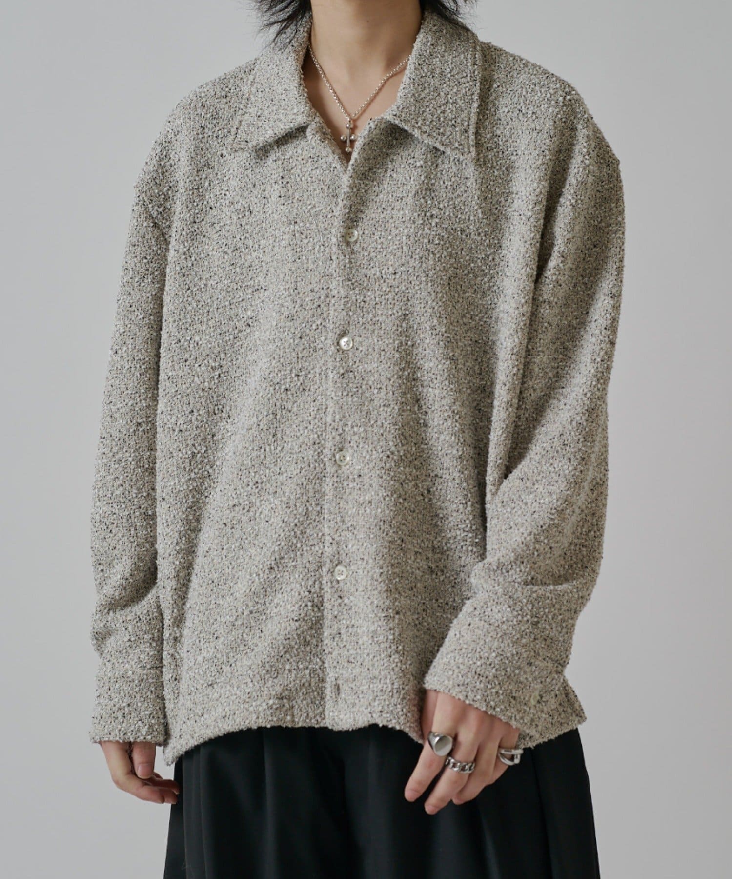 ・表情のあるブークレ生地を採用したワイドシルエットシャツ。