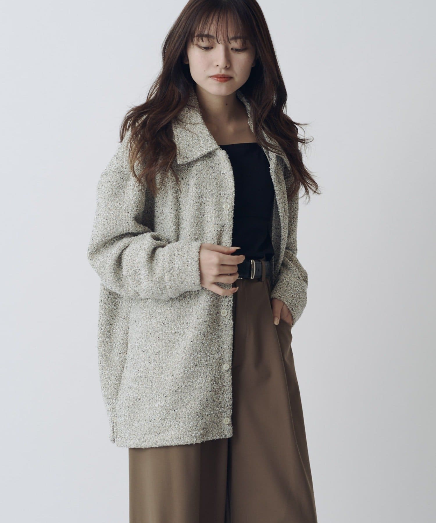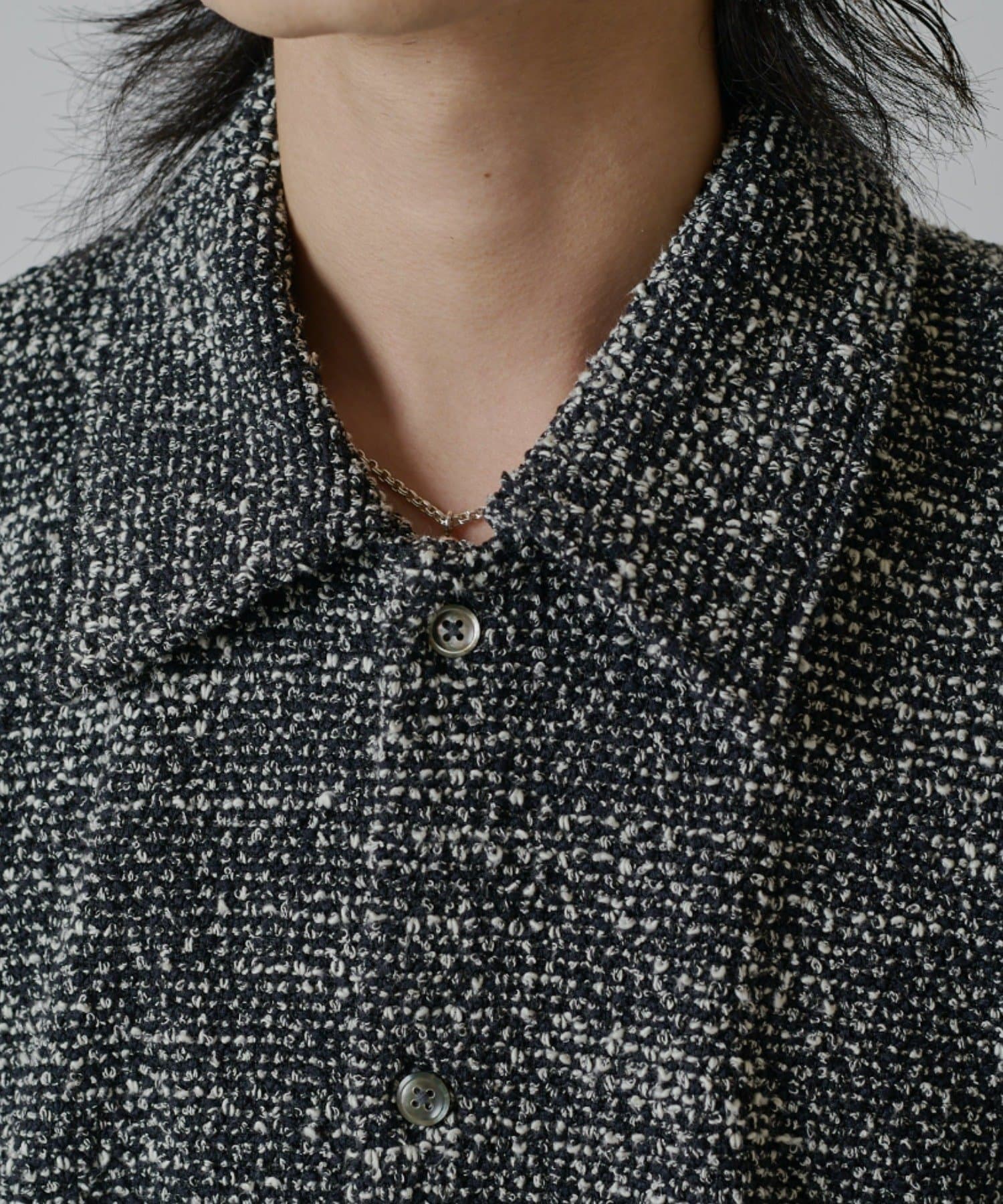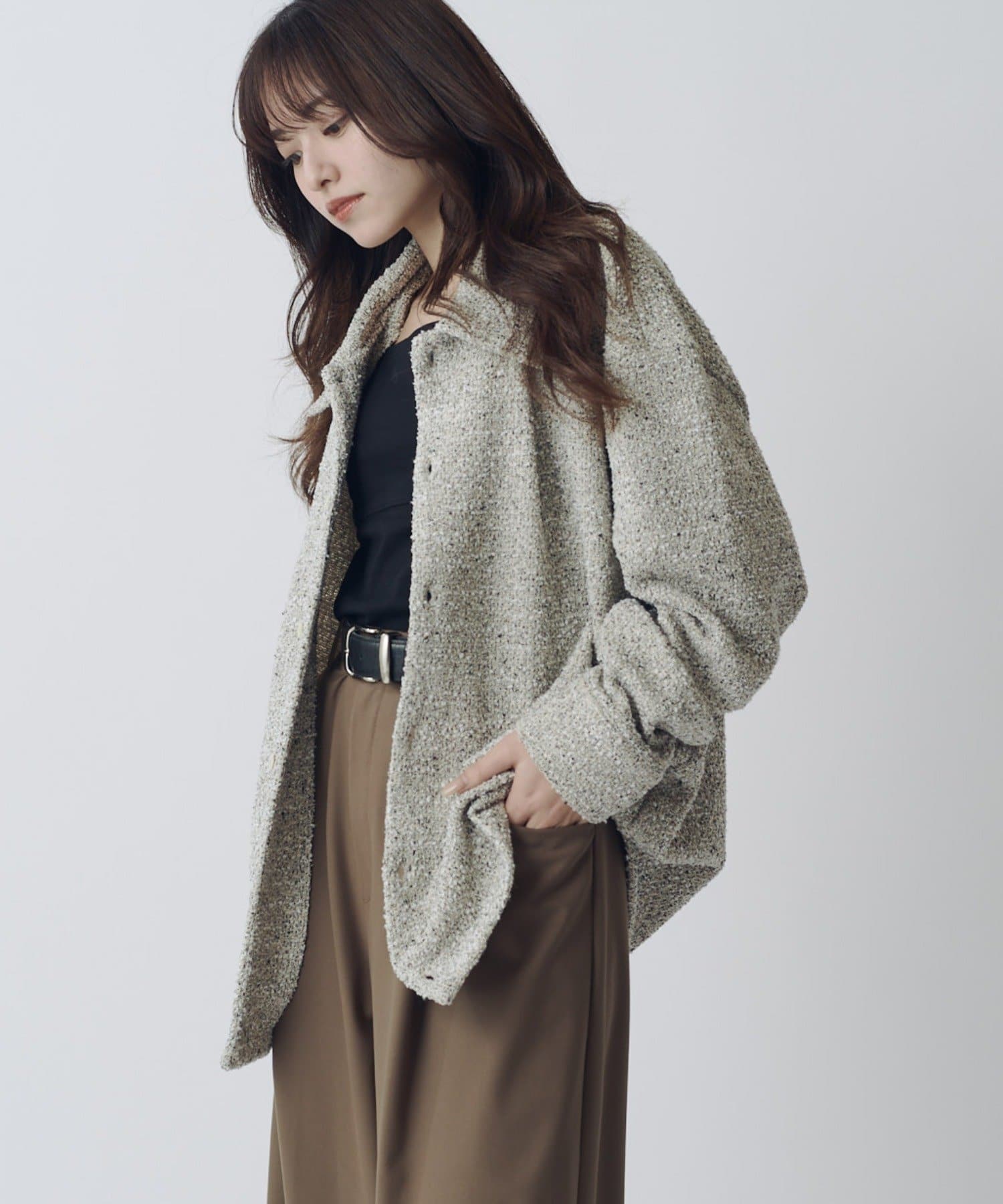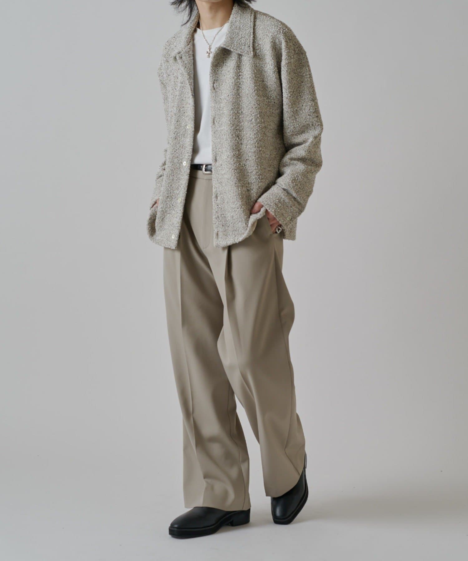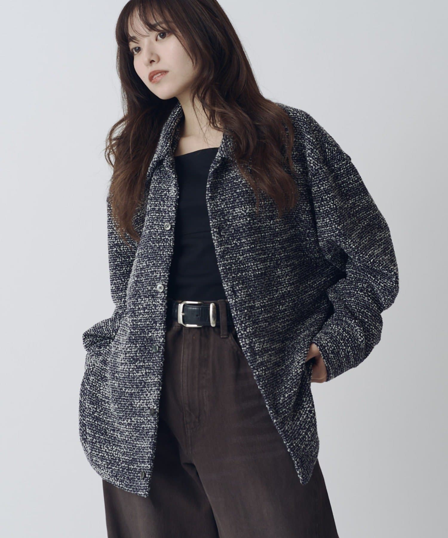 ・表情のあるブークレ生地を採用したワイドシルエットシャツ。