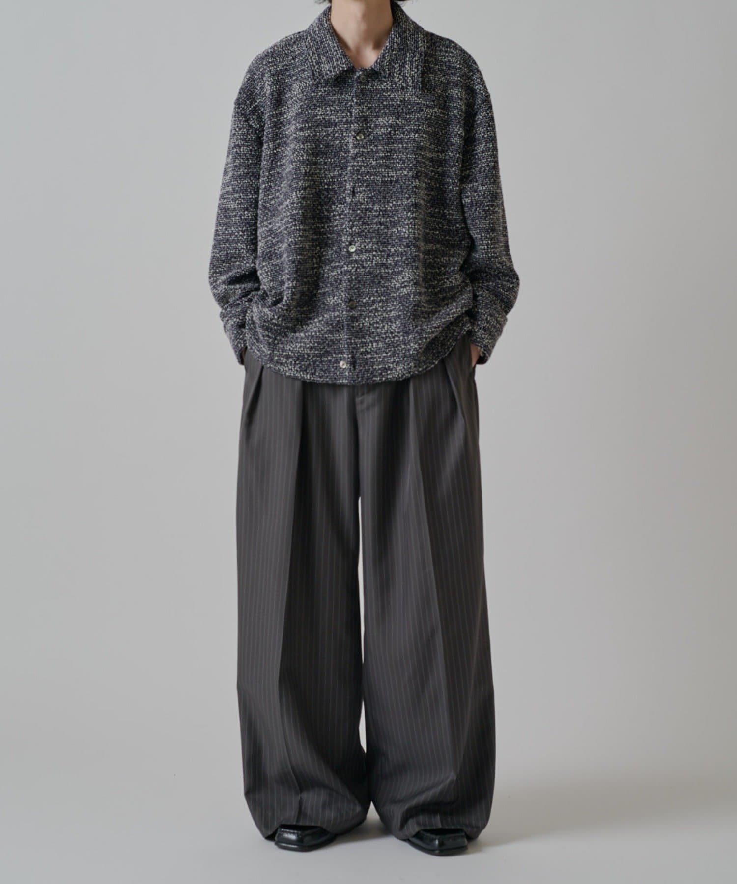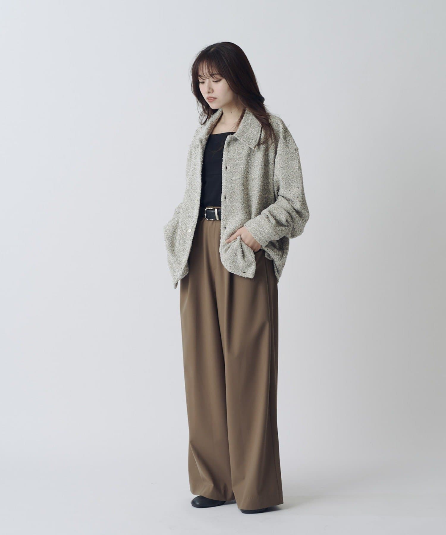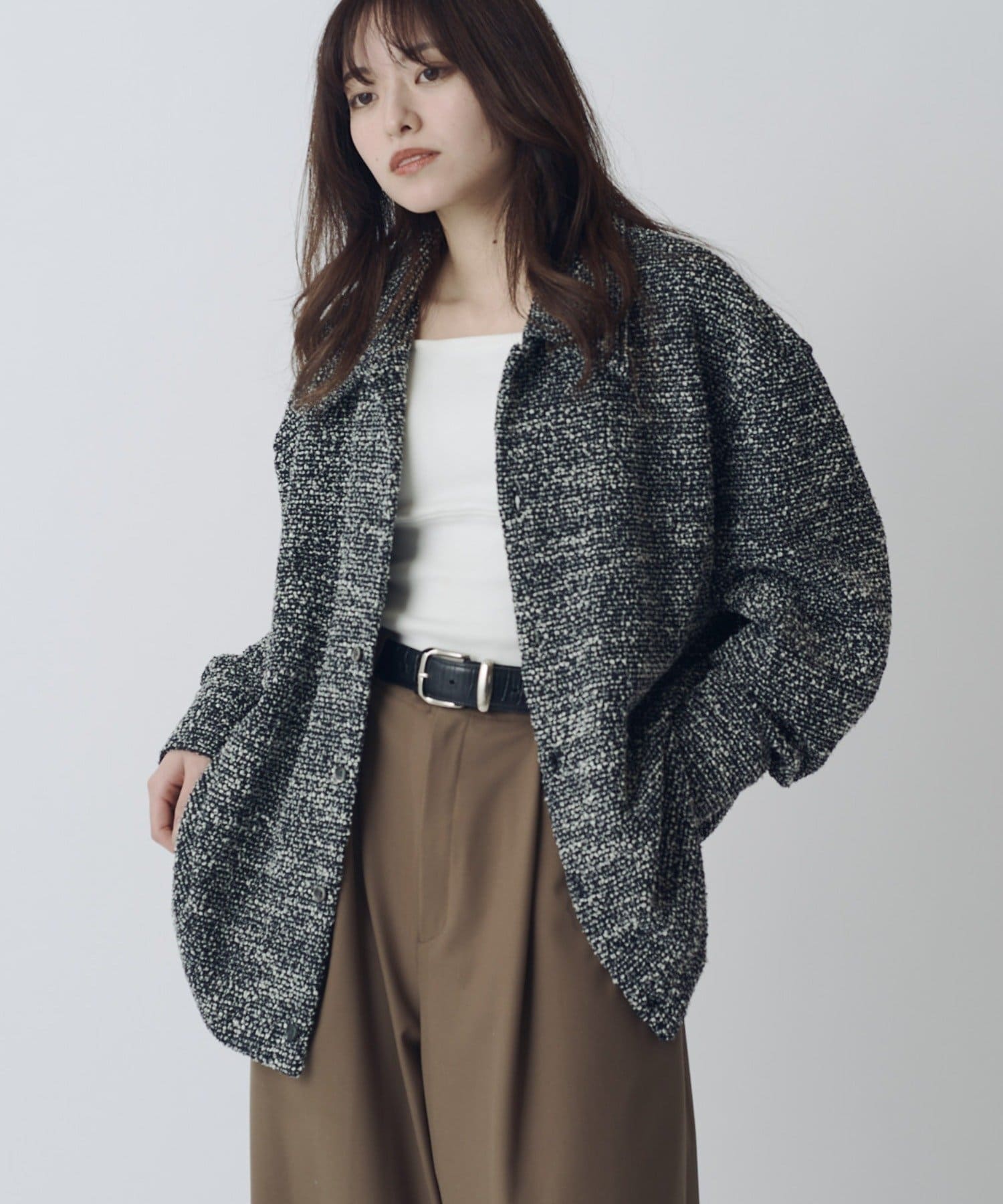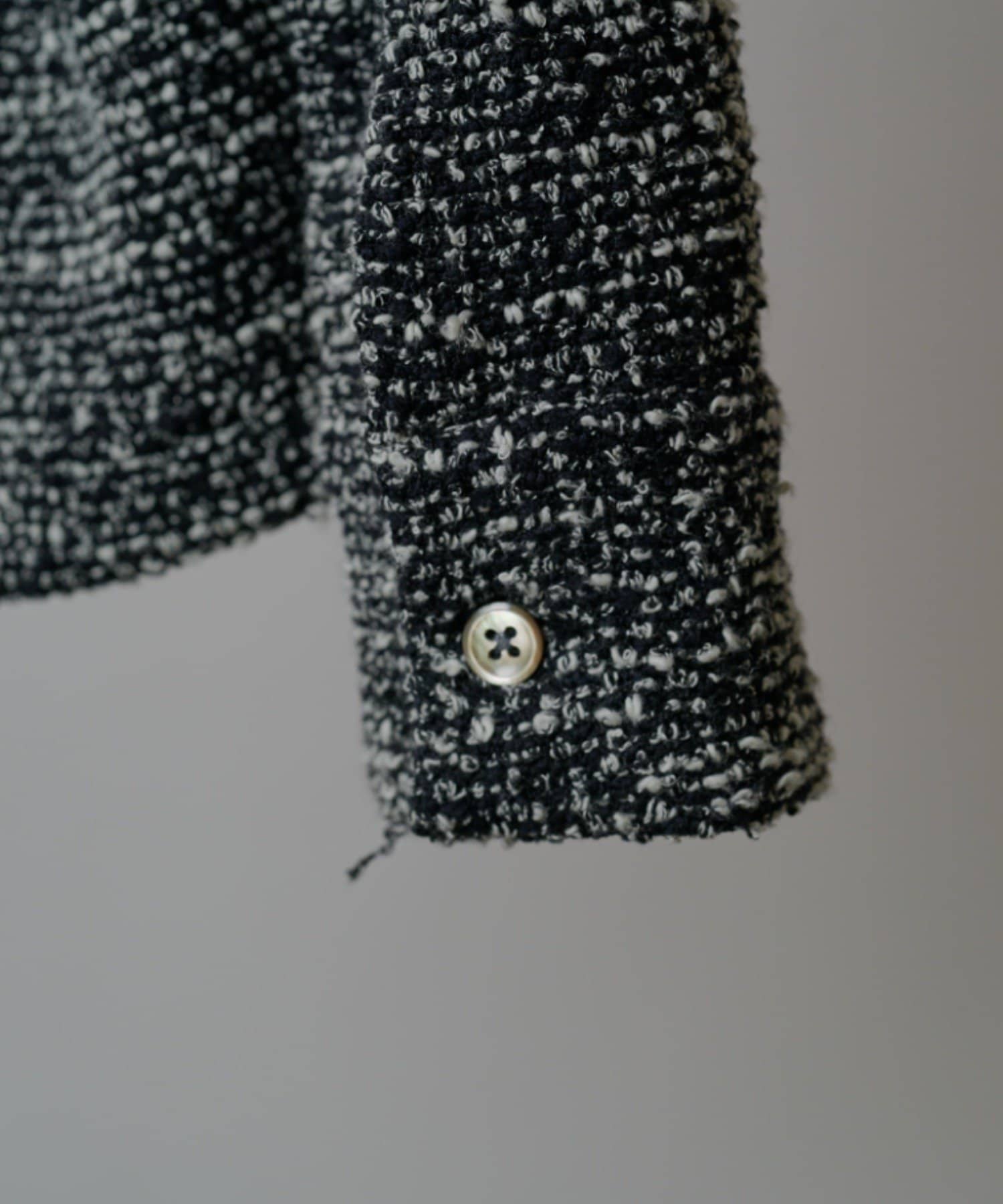 ・表情のあるブークレ生地を採用したワイドシルエットシャツ。
