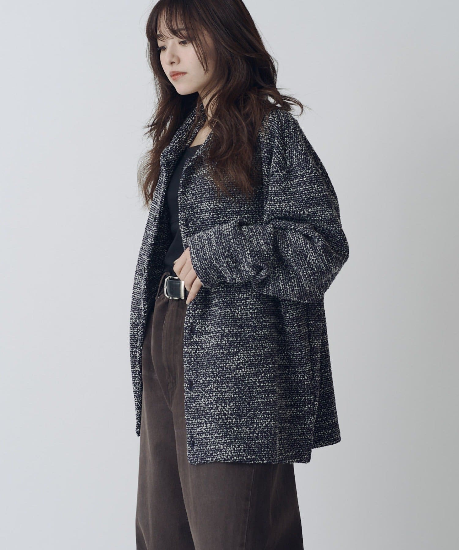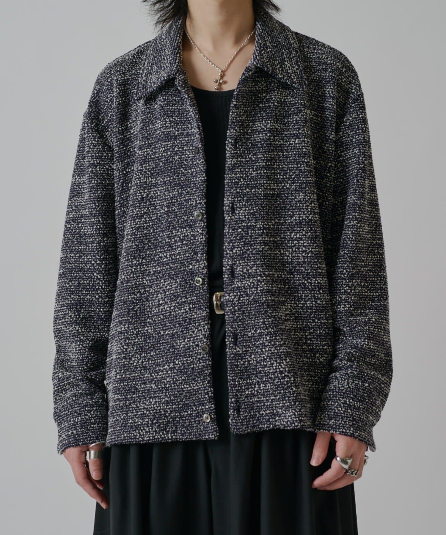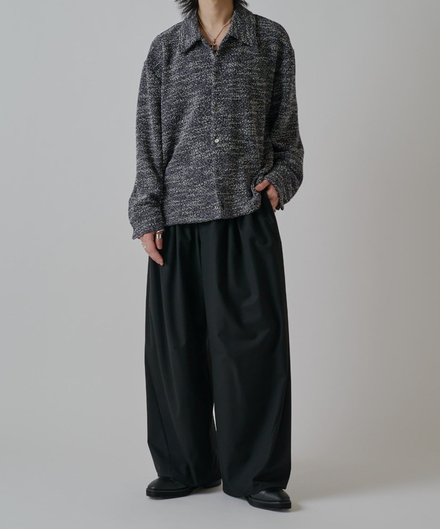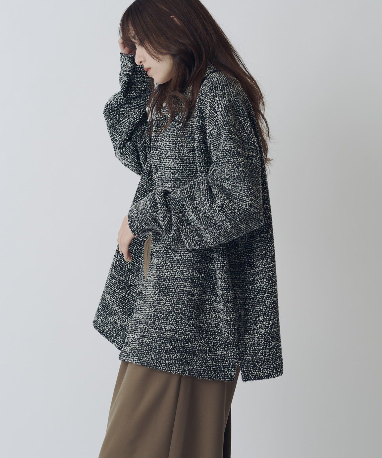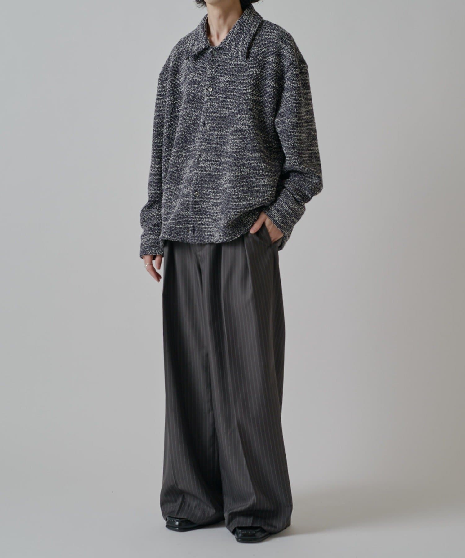 ・表情のあるブークレ生地を採用したワイドシルエットシャツ。