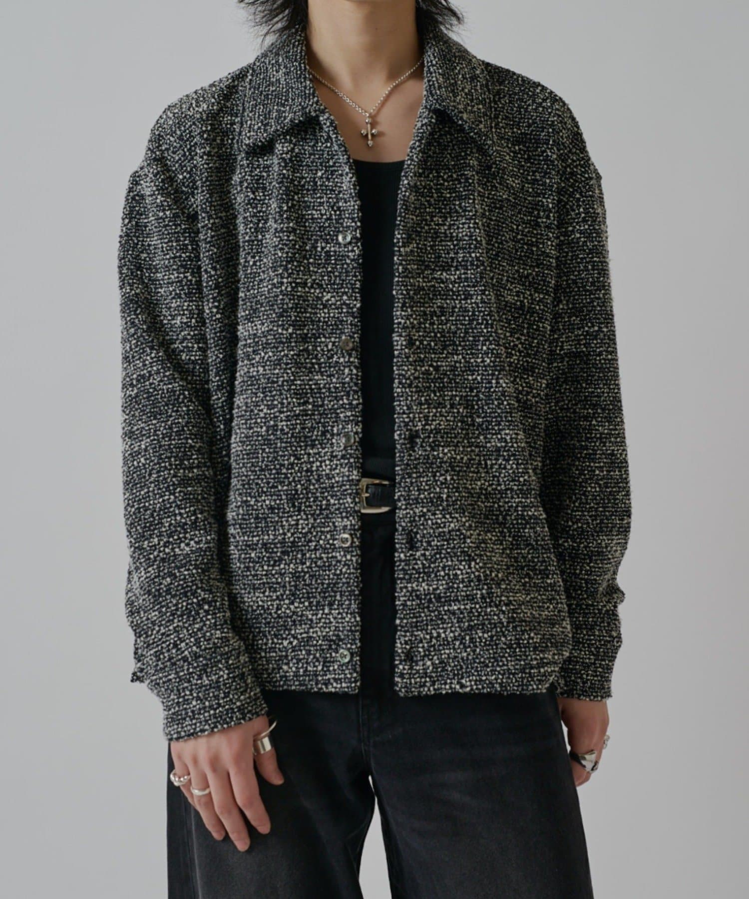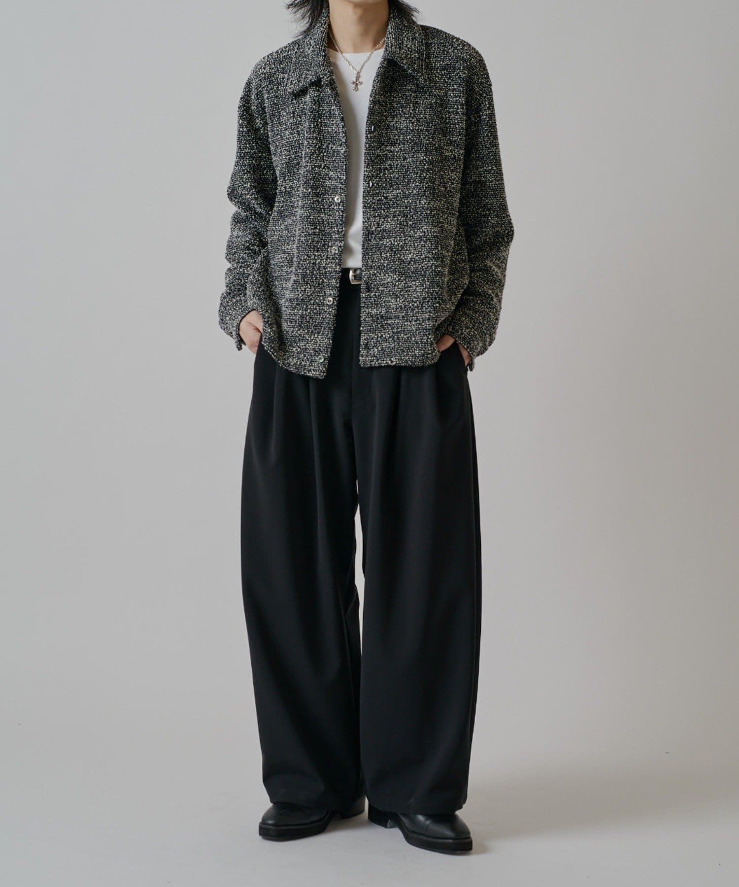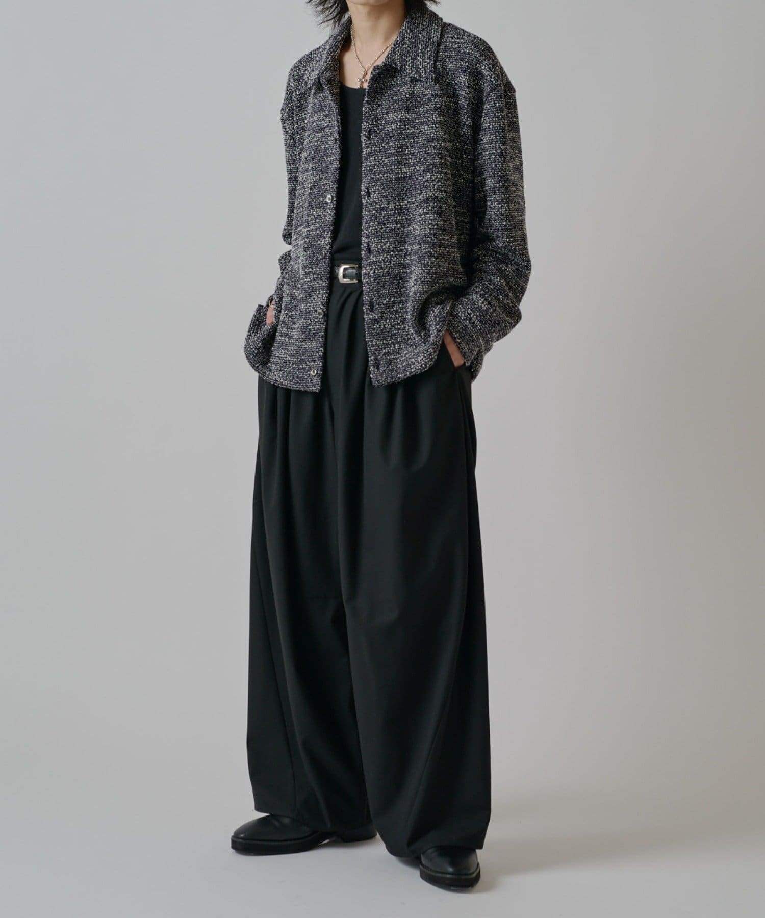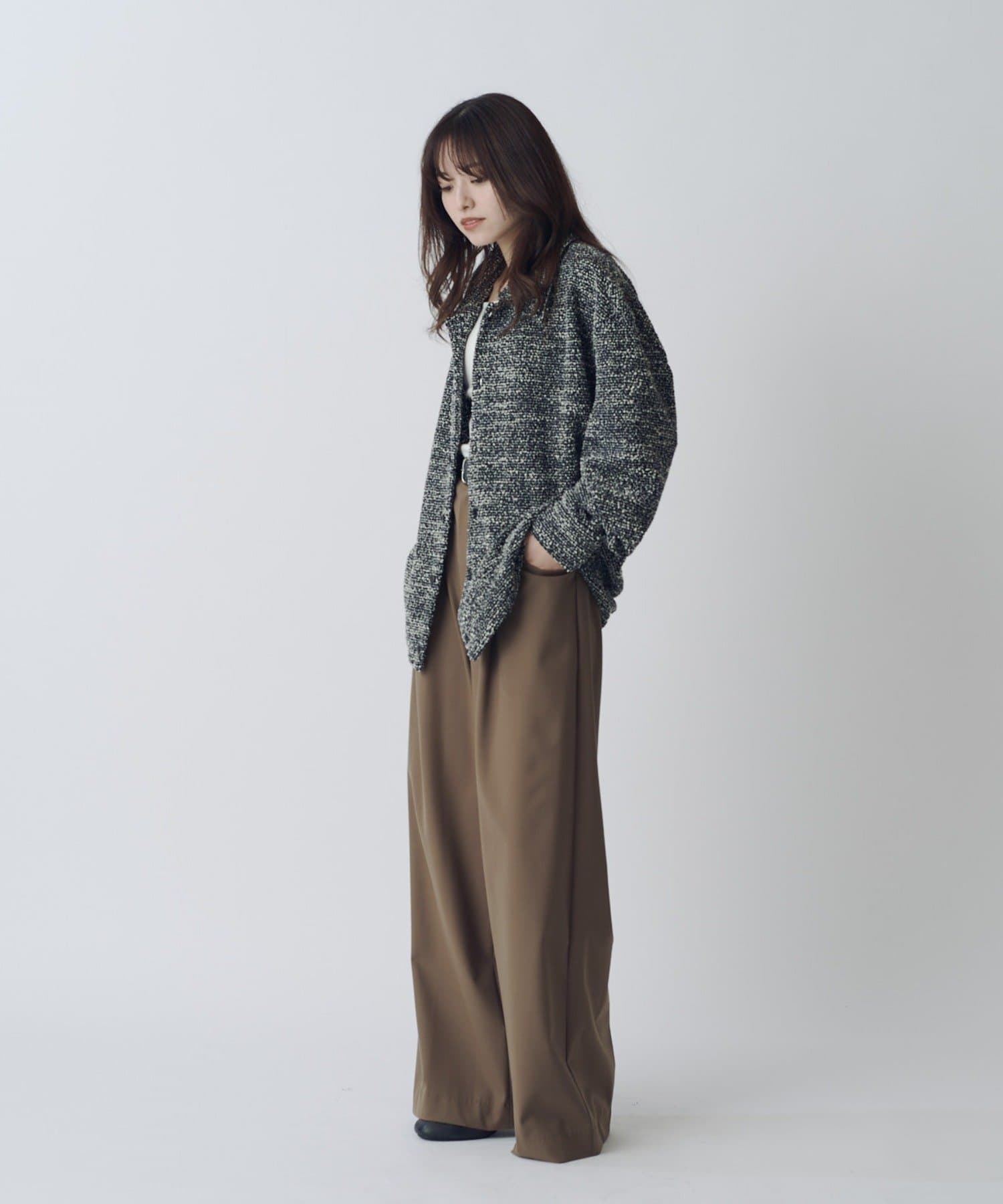 ・表情のあるブークレ生地を採用したワイドシルエットシャツ。
