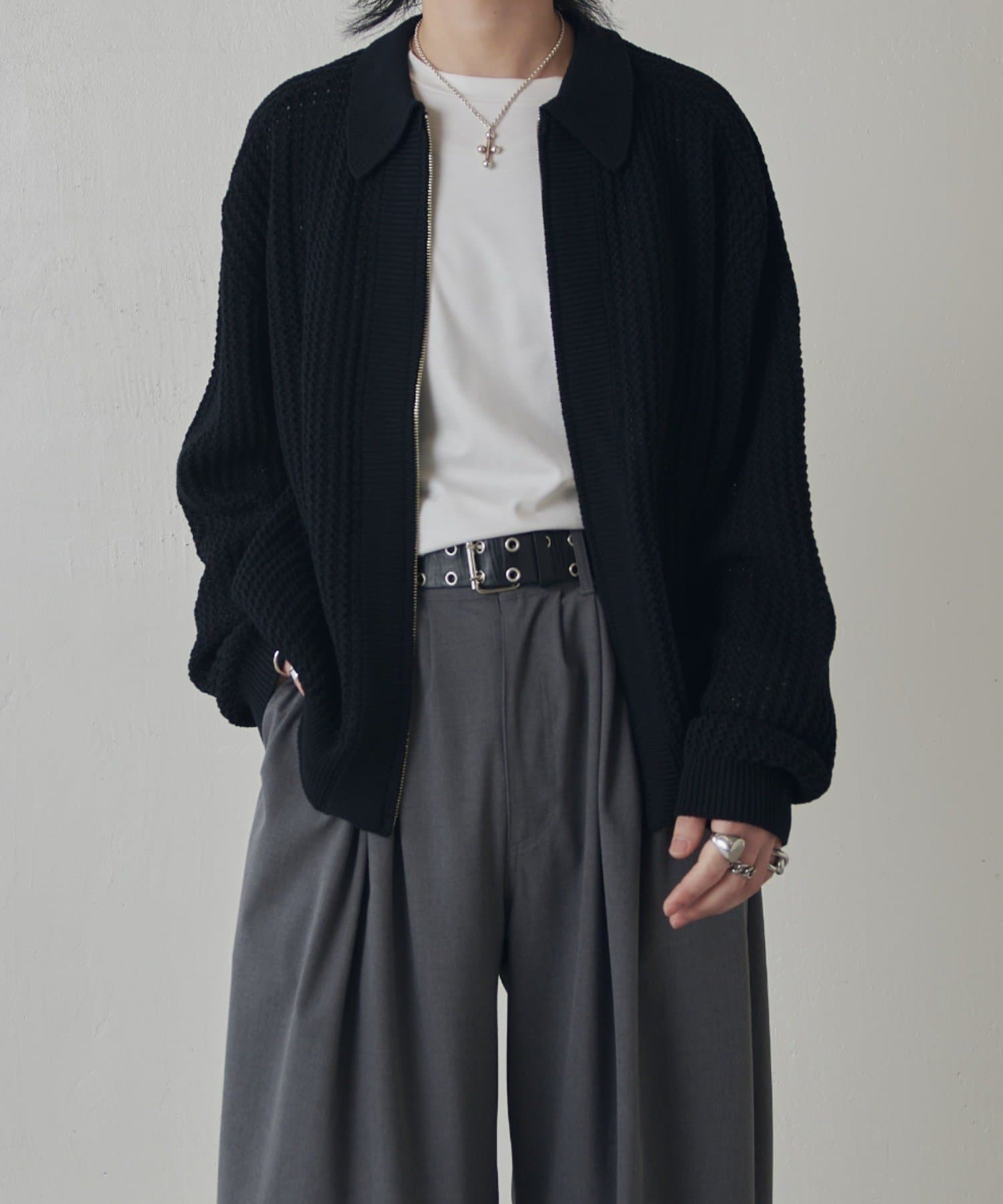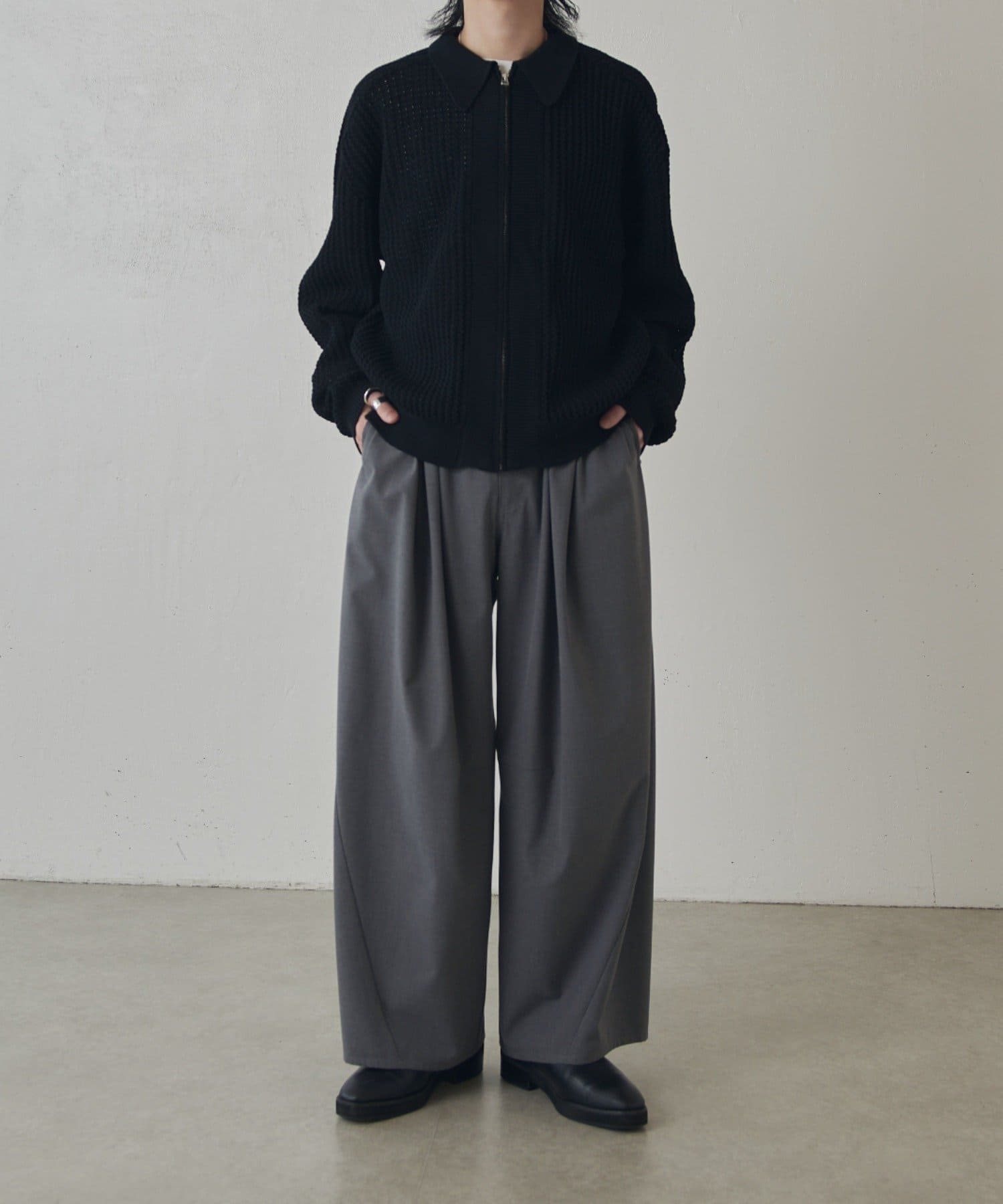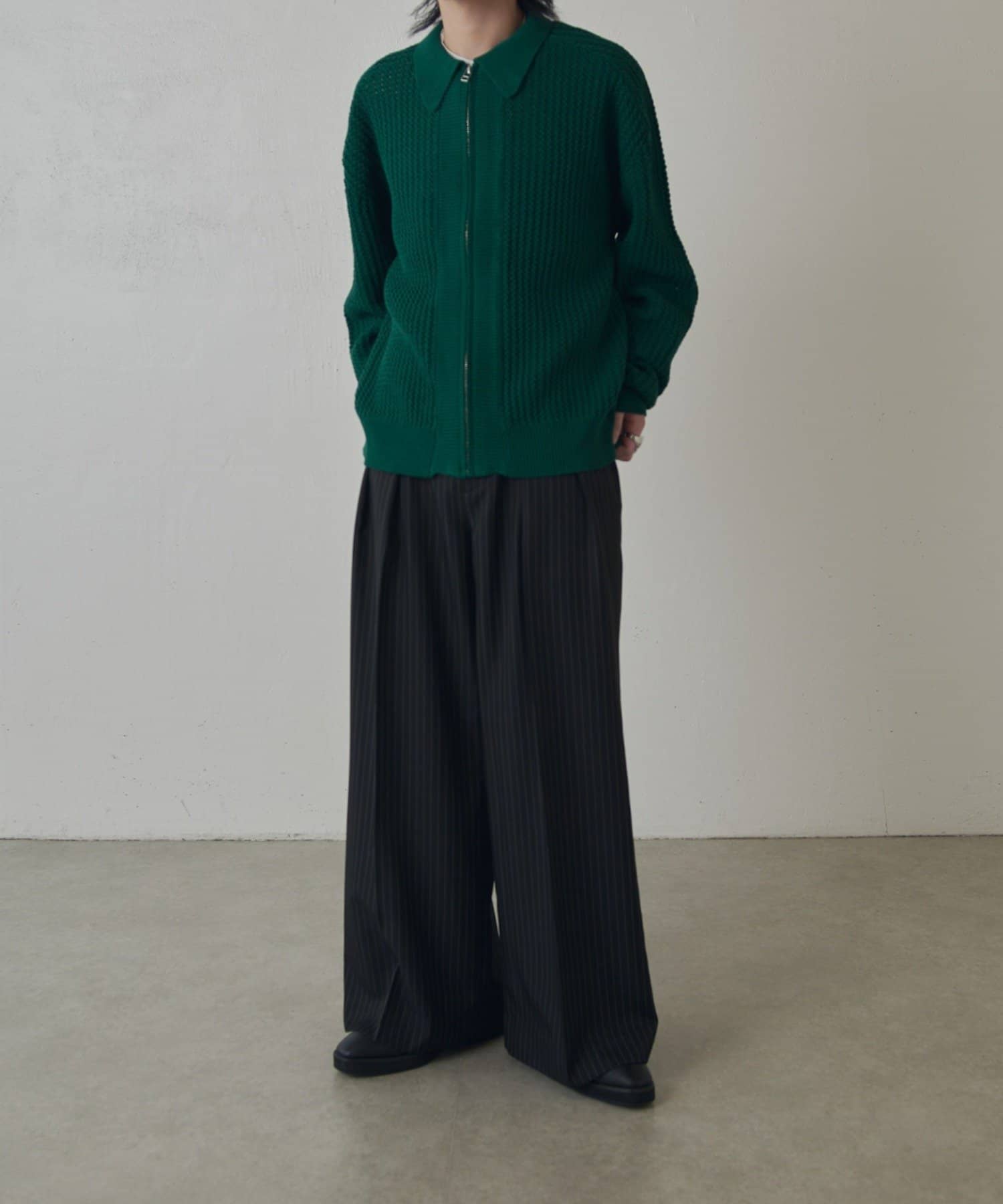 ・ゆとりのあるシルエットとフロントのジップデザインでカジュアルすぎず、綺麗で上品な1着です。