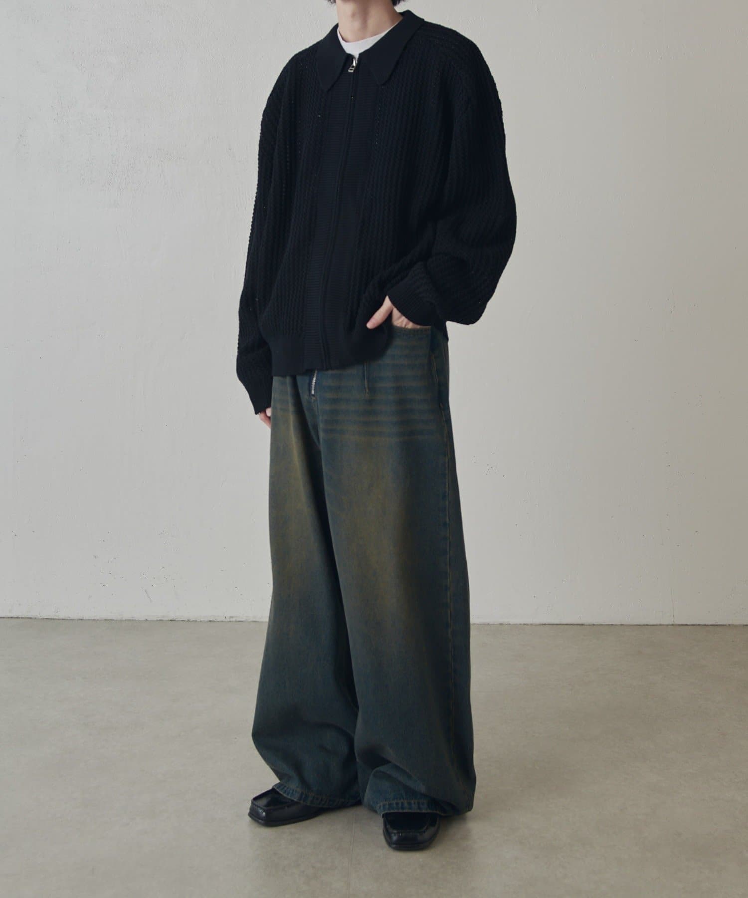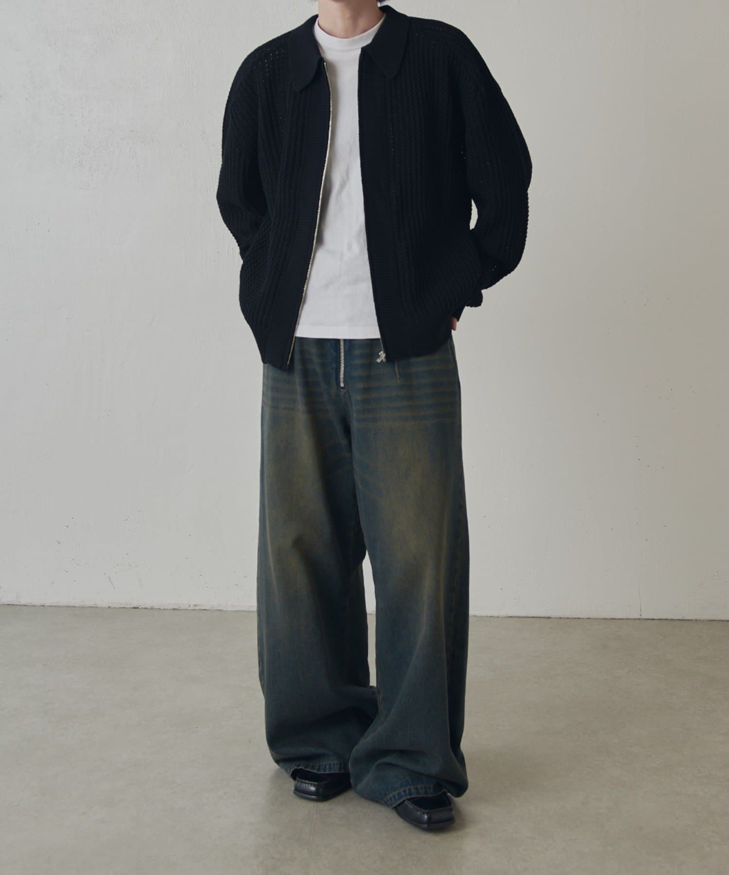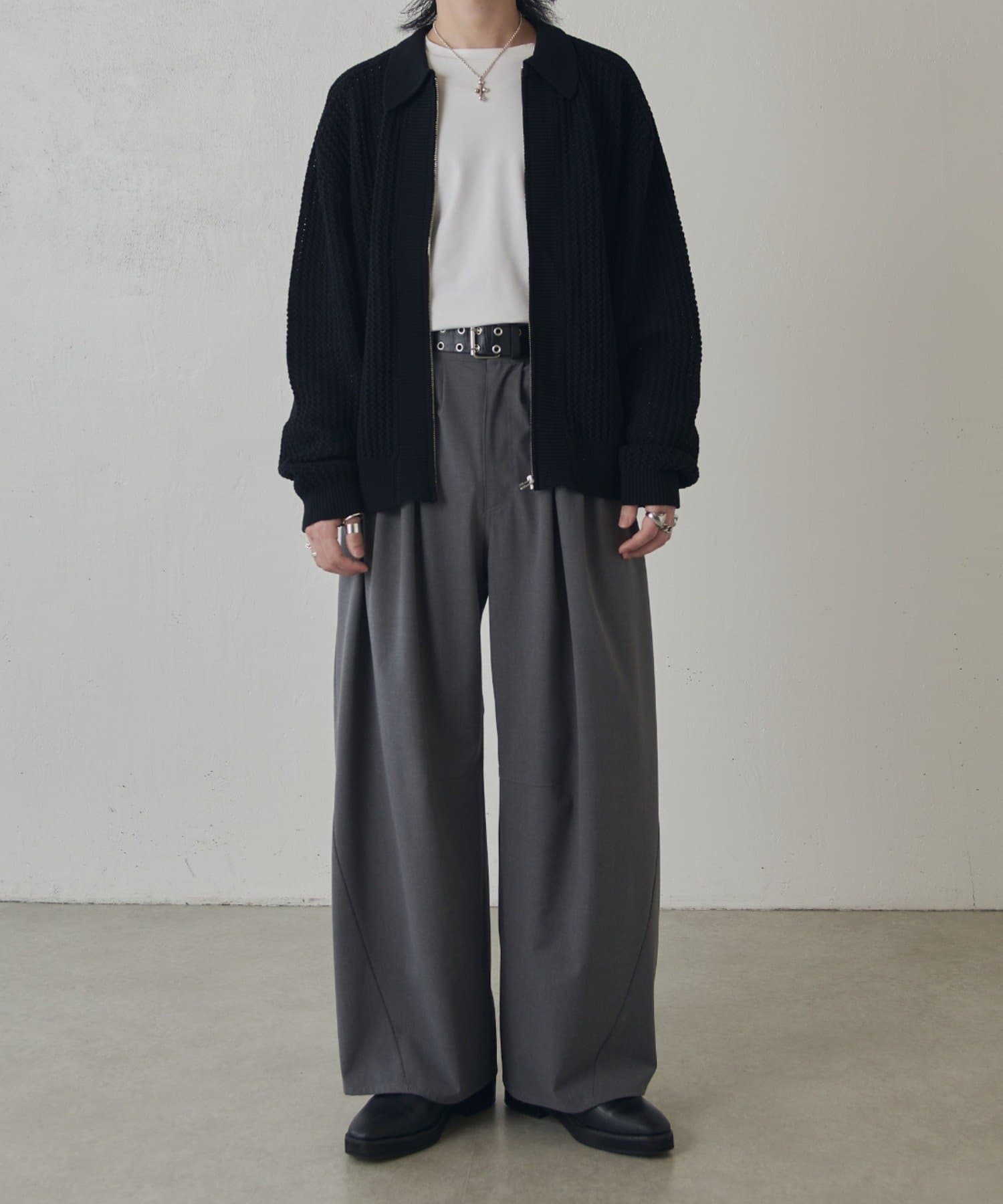 ・ゆとりのあるシルエットとフロントのジップデザインでカジュアルすぎず、綺麗で上品な1着です。