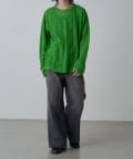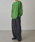 ・一般的にレイヤードで用いられるシアーのプルオーバーですが。切替のデザインを入れることで、モードでユニークな見た目に仕上がりました。ルーズなサイジングで、サラッと着て頂けます。袖の裾にはサムホールがついております。
